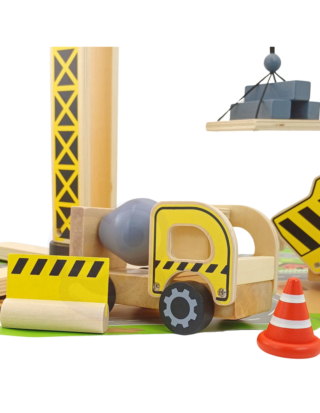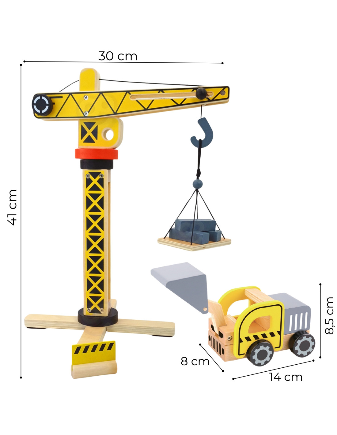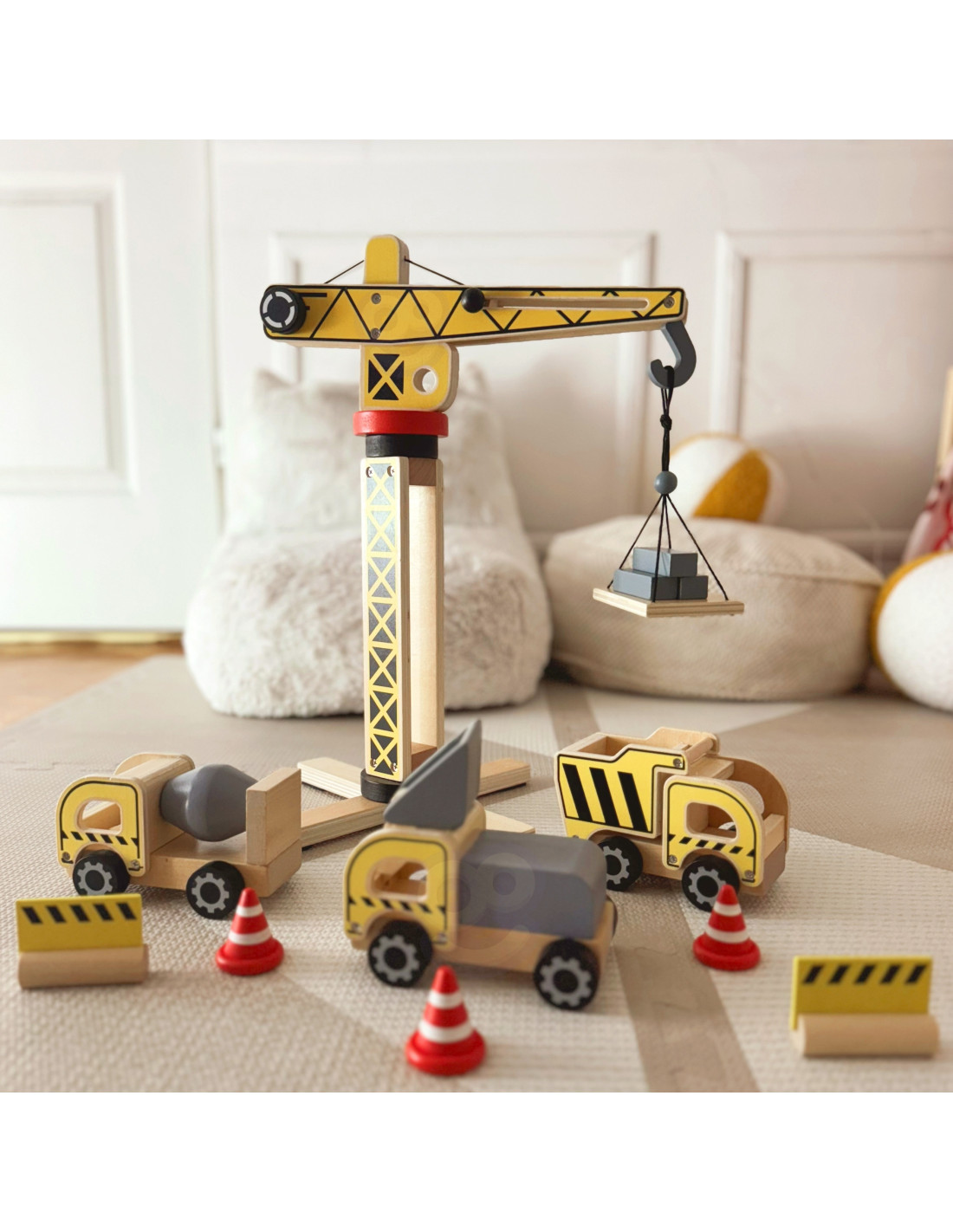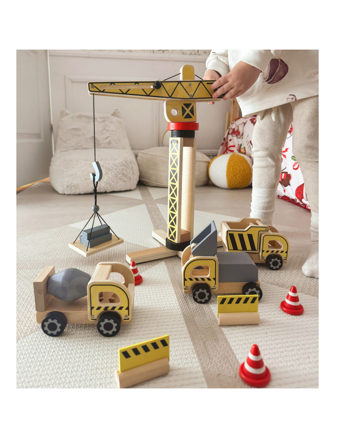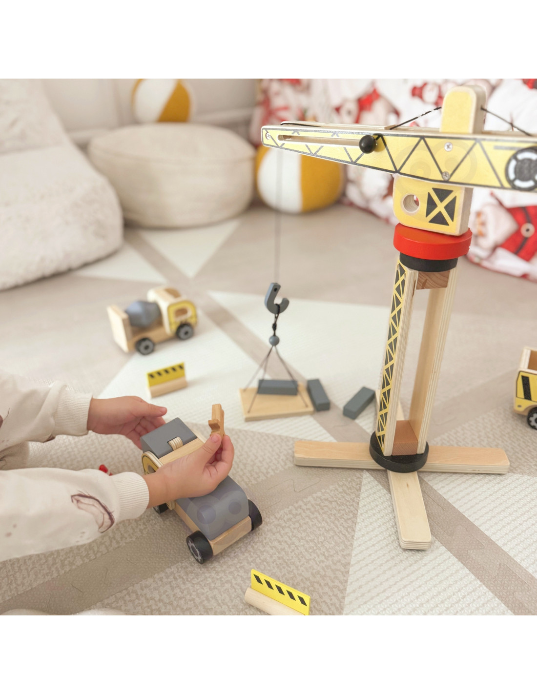 Ogromny Plac Budowy 5w1 od marki WOOPIE GREEN to marzenie każdego małego budowniczego! Ten rozbudowany zestaw pozwala dzieciom wcielić się w rolę inżyniera i przeprowadzić prawdziwą mini-budowę – od transportu materiałów po pracę dźwigiem i koparką. To nie tylko zabawa, ale również rozwój zdolności motorycznych, logicznego myślenia i wyobraźni. W zestawie znajdziesz gigantyczny dźwig o wysokości aż 42 cm, trzy pojazdy budowlane, matę z ilustracją placu budowy oraz inne realistyczne akcesoria. Wszystkie elementy zostały wykonane z solidnego drewna jałowca i pomalowane bezpiecznymi farbami.