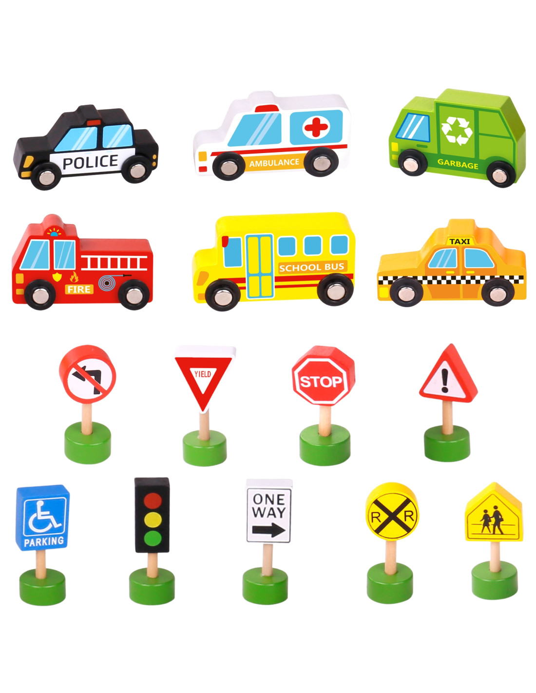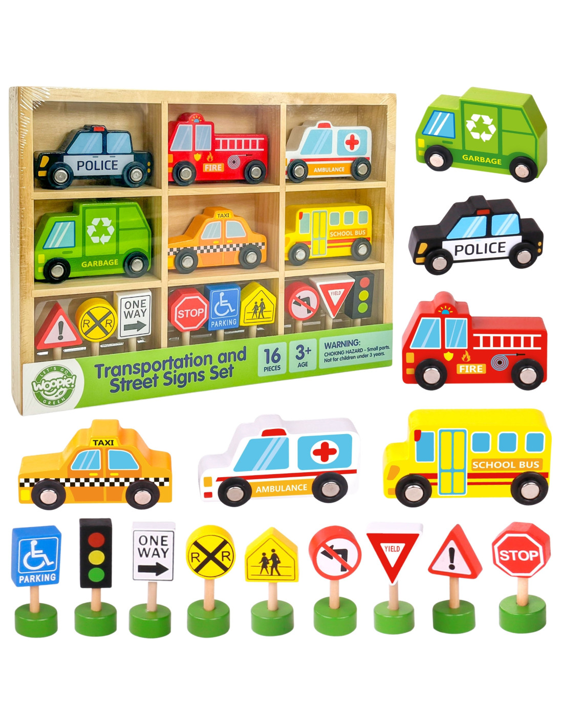 Drewniany zestaw od Woopie Green to doskonałe narzędzie edukacyjne, które poprzez zabawę wprowadza dziecko w świat zasad ruchu drogowego. W komplecie znajduje się 6 kolorowych pojazdów oraz 9 znaków drogowych, które pomagają maluchowi poznać podstawowe reguły bezpieczeństwa na drodze. Całość wykonana z trwałego drewna i bezpiecznych, nietoksycznych farb.