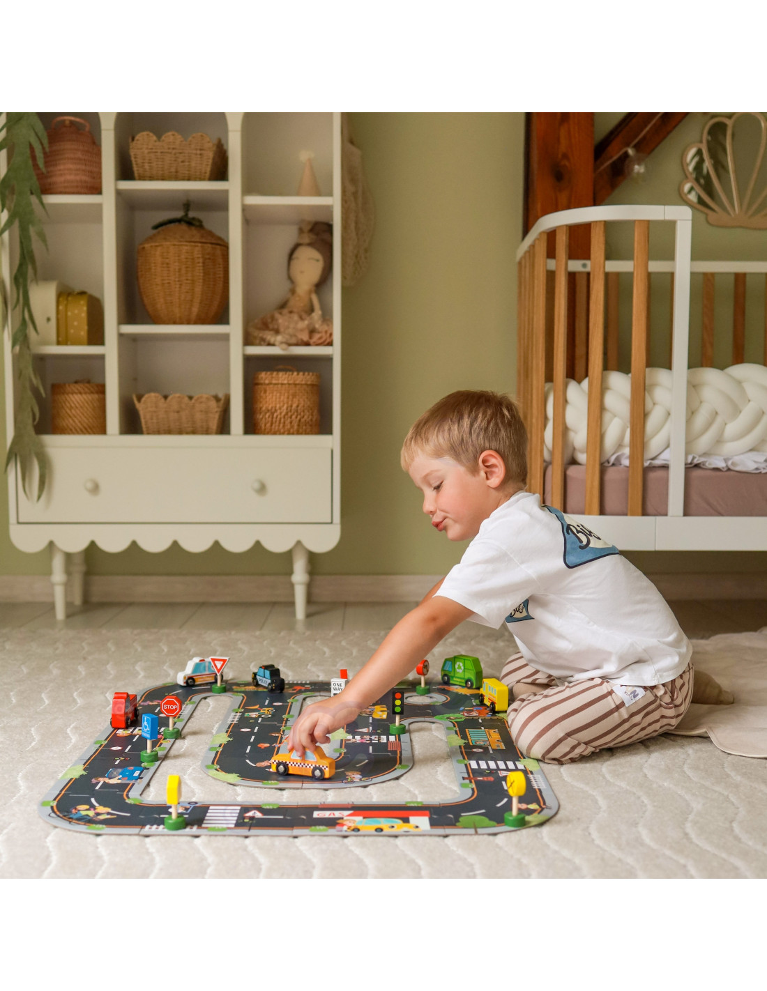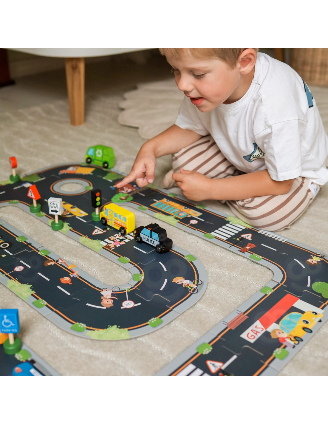- - Rozwija wyobraźnię i kreatywność – dziecko może tworzyć własne miasta, scenariusze i sytuacje drogowe