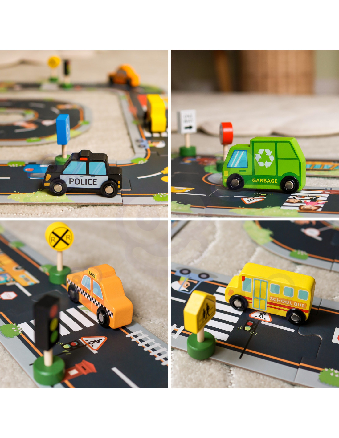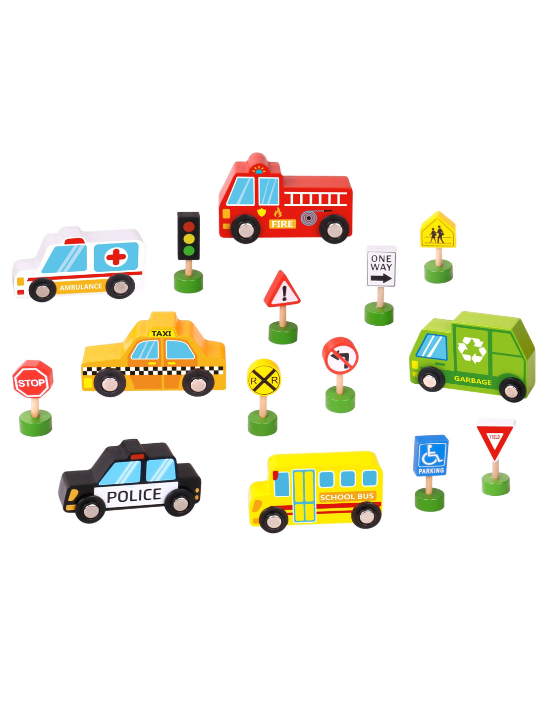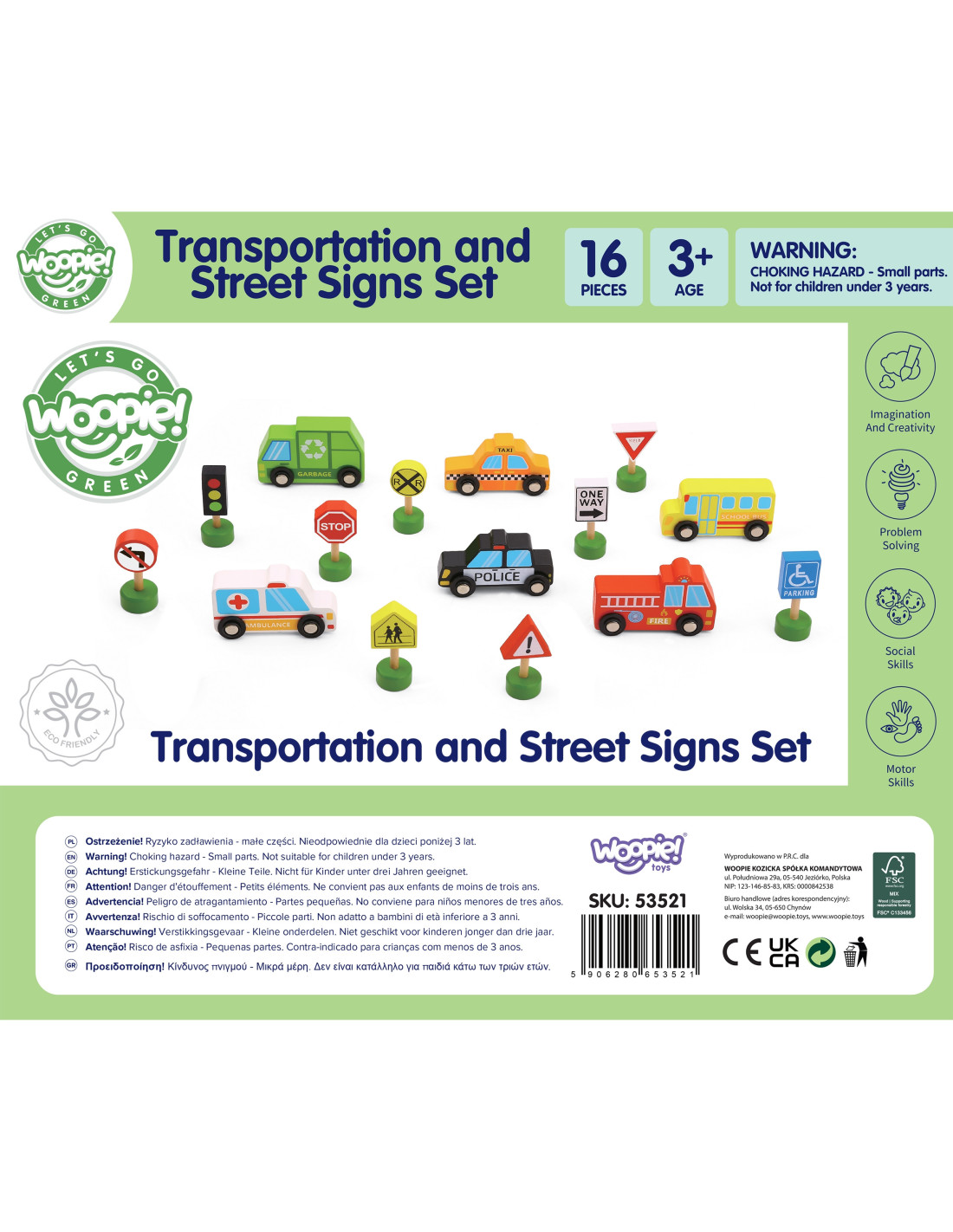 Drewniany Zestaw Pojazdów i Znaków Drogowych Woopie Green