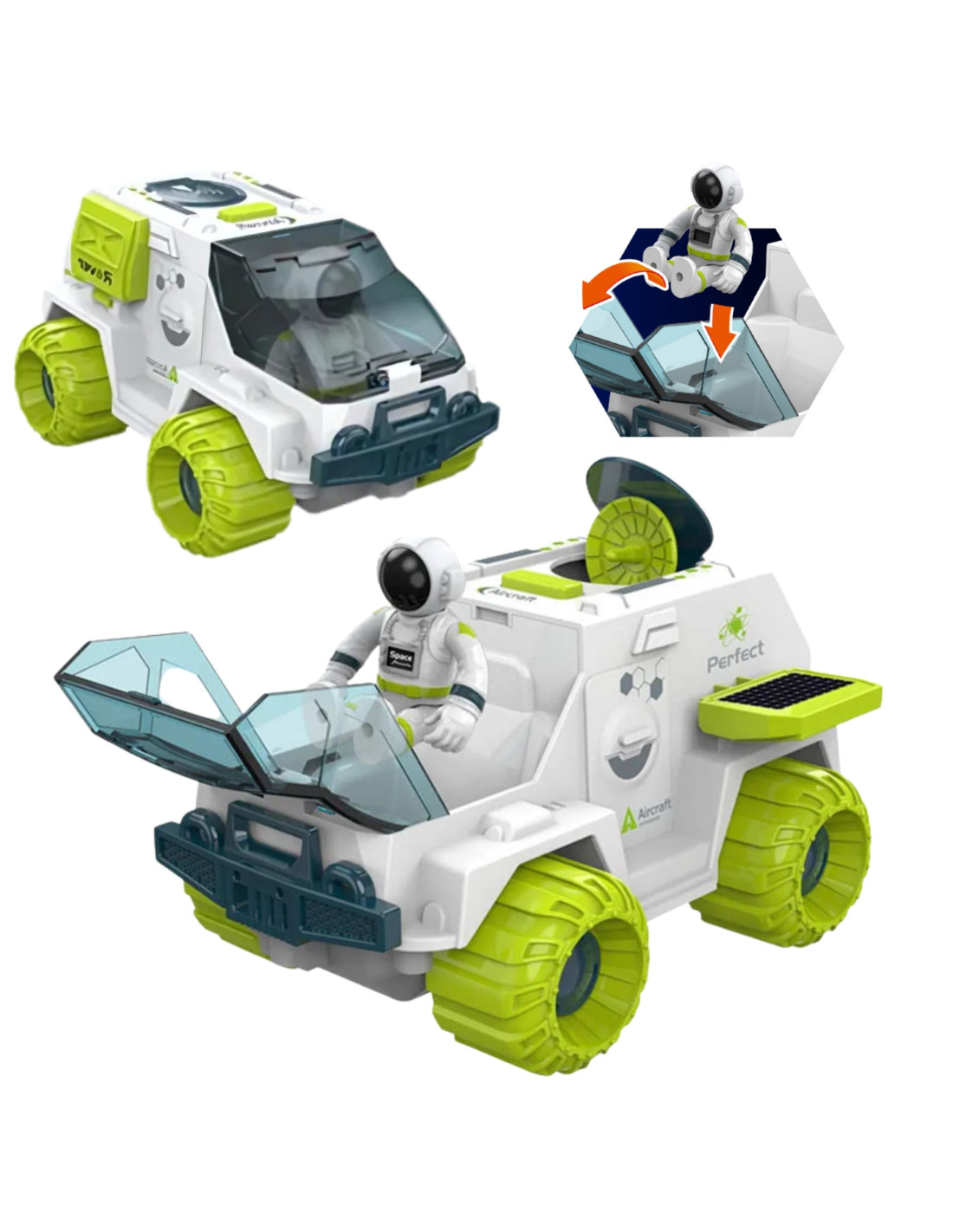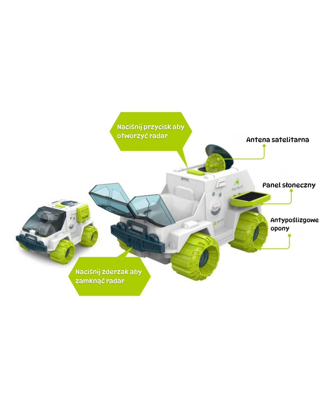 Wejdź do świata fascynującej eksploracji kosmosu z wyjątkowym Łazikiem kosmicznym od Woopie! Ten innowacyjny pojazd z figurką astronauty to idealna propozycja dla małych odkrywców, którzy marzą o podboju obcych planet . Dzięki przemyślanej konstrukcji i interaktywnym funkcjom, dziecko nie tylko świetnie się bawi, ale również rozwija swoje zdolności poznawcze, motoryczne i wyobraźnię. Kosmiczny pojazd zachwyca futurystycznym designem – białe nadwozie w połączeniu z jaskrawymi, zielonymi kołami i detalami sprawiają, że wygląda jak prawdziwa maszyna badawcza z NASA . Dzięki otwieranej kabinie maluch może bez problemu umieścić w środku astronautę, który zasiada za sterami, gotowy do nowych wyzwań. Na dachu pojazdu znajduje się interaktywny radar – po naciśnięciu przycisku, antena automatycznie się podnosi, co daje dodatkowy element zabawy i zaskoczenia. To nie wszystko! Po zakończeniu misji wystarczy nacisnąć przedni zderzak, a radar samoczynnie się chowa – to jak prawdziwa technologia kosmiczna w miniaturowym wydaniu! Antypoślizgowe, gumowe opony zapewniają stabilność jazdy na różnych powierzchniach, a napęd frykcyjny pozwala na dynamiczne poruszanie się pojazdu bez użycia baterii – wystarczy popchnąć, by autko ruszyło przed siebie z impetem! To znakomity sposób na pobudzenie aktywności fizycznej i koordynacji dziecka. Zestaw idealnie sprawdzi się jako prezent dla każdego dziecka zainteresowanego nauką, kosmosem, techniką i przygodą. Doskonale wpisuje się w potrzeby zarówno chłopców, jak i dziewczynek, rozwijając szereg ważnych umiejętności. To nie tylko zabawka – to początek prawdziwej przygody międzygwiezdnej, która rozpoczyna się w Twoim domu!