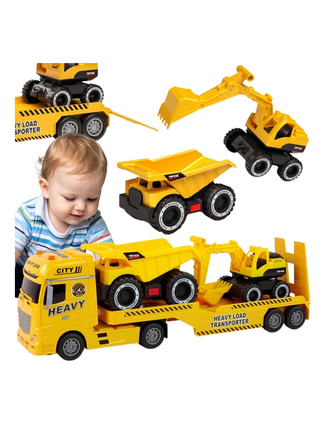 - - 3 pojazdy budowlane w zestawie – laweta, koparka i wywrotka dają wiele możliwości zabawy