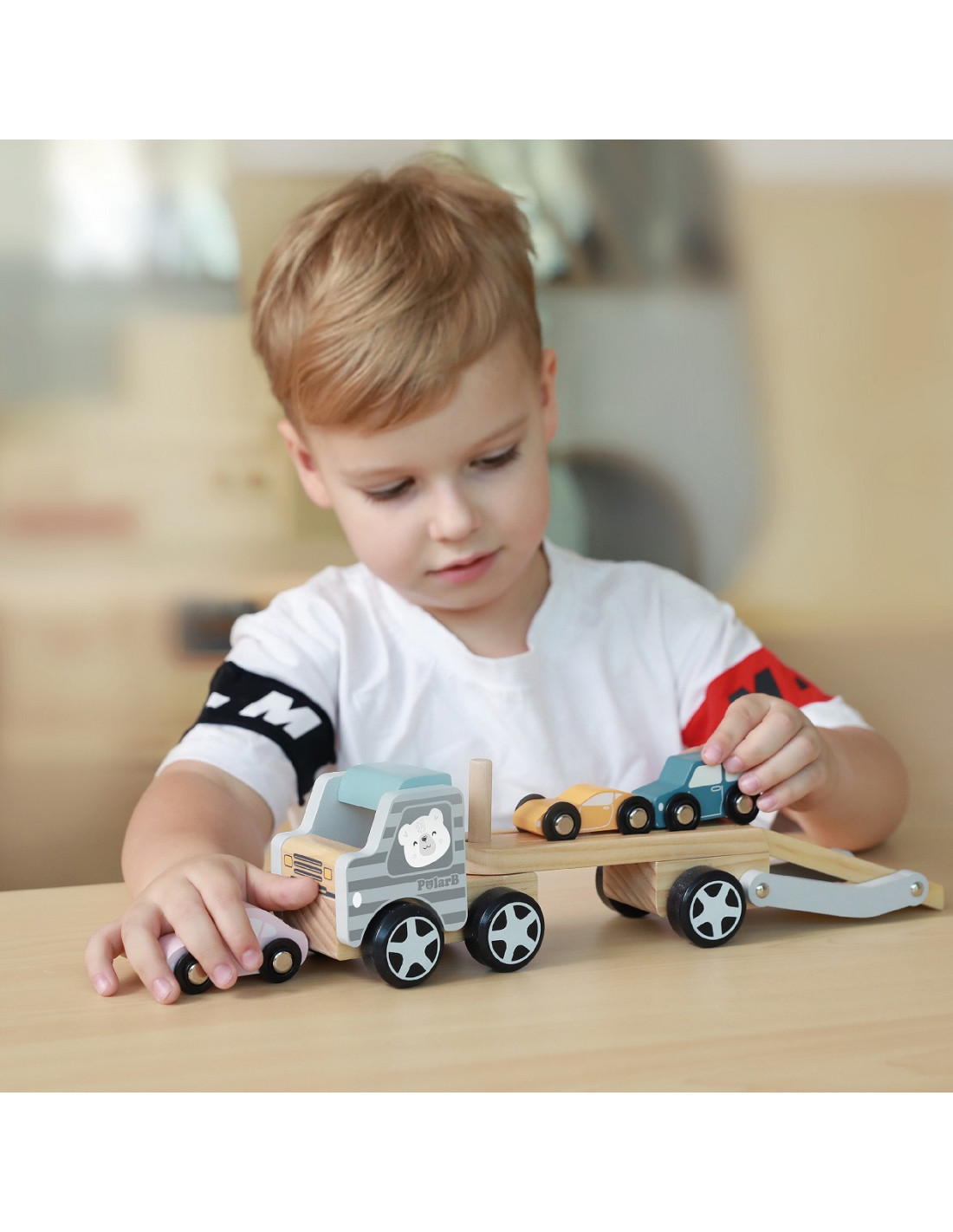 Nasza zabawka wykonana jest z wysokiej jakości drewna, co gwarantuje odporność na uszkodzenia. Zarówno samochody, jak i ciężarówka i laweta są pokryte pięknymi, nietoksycznymi farbami, co sprawia, że jest całkowicie bezpieczna dla dziecka.