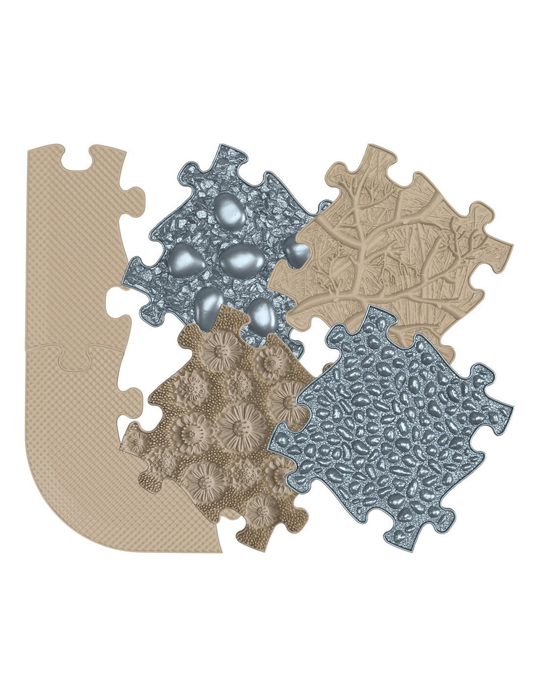 - 4x maty: łąka beżowa miękka, korzenie beżowe twarde, duże kamienie szare twarde, małe kamyki szare twarde
