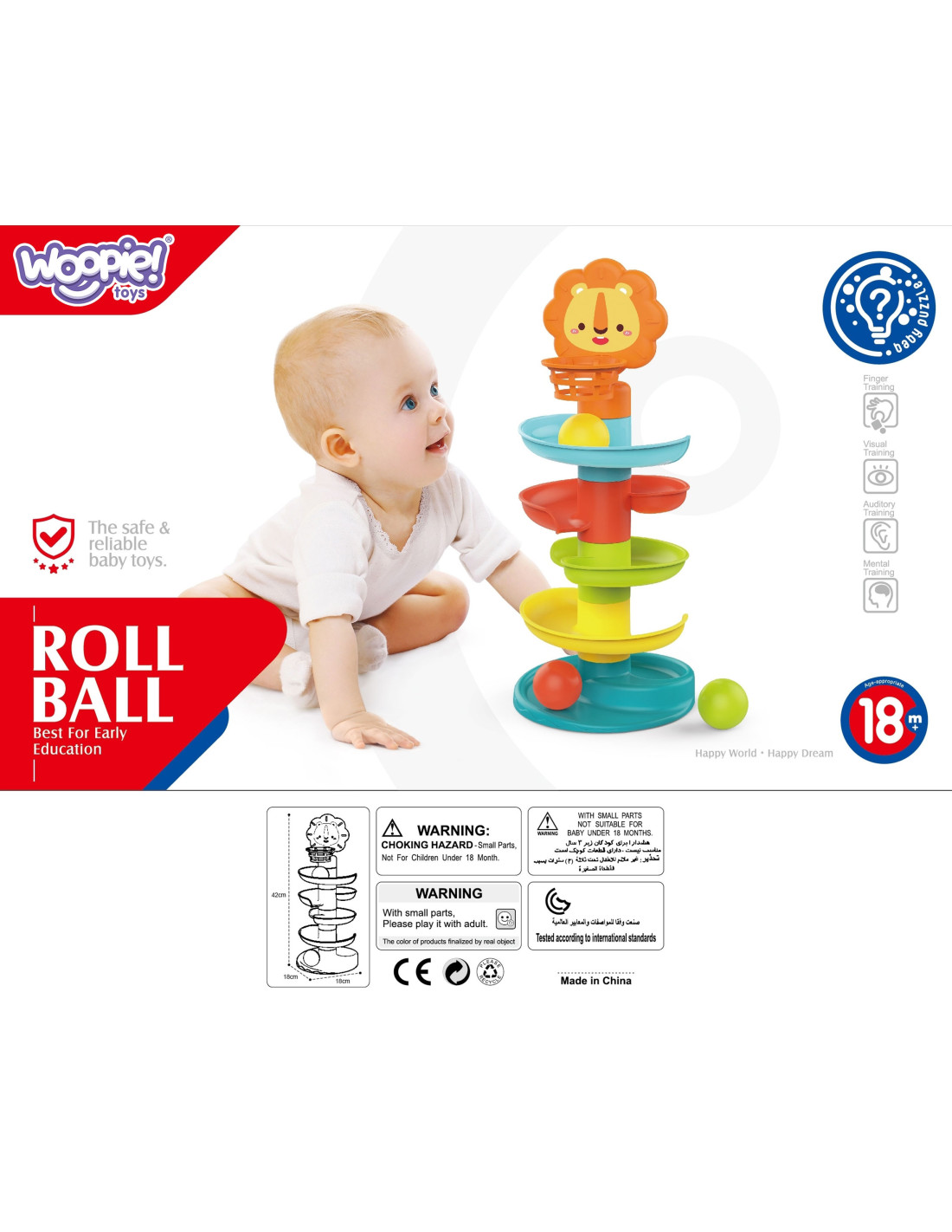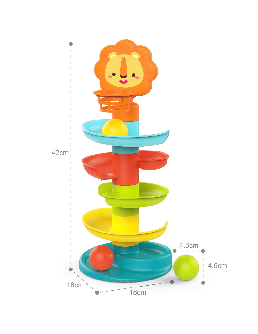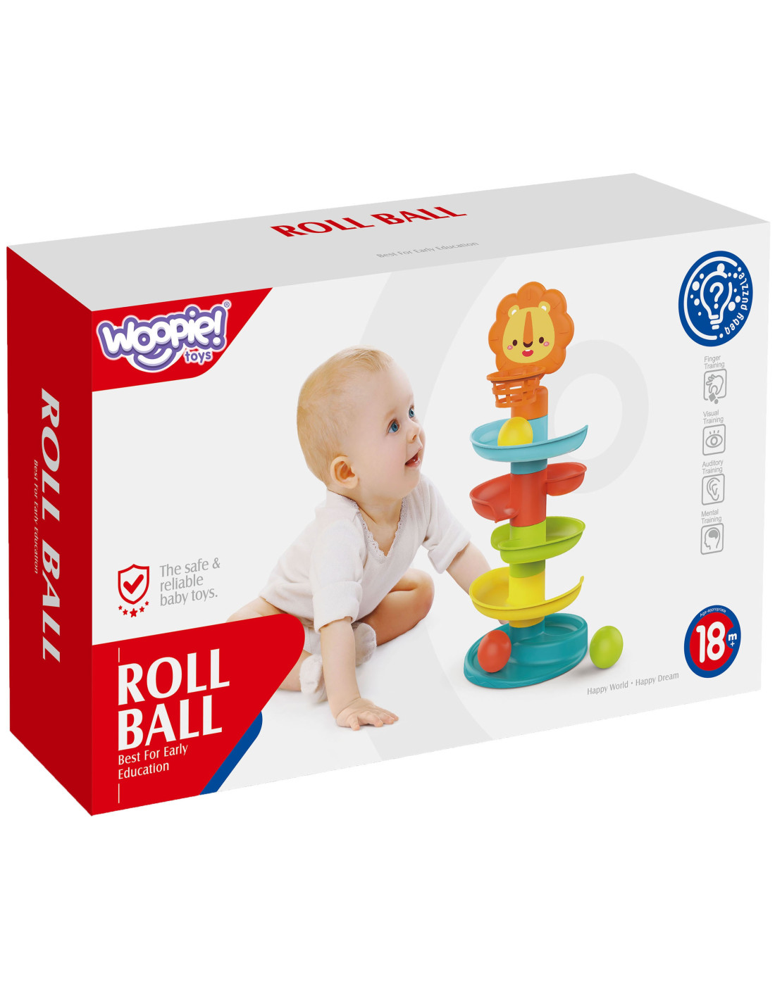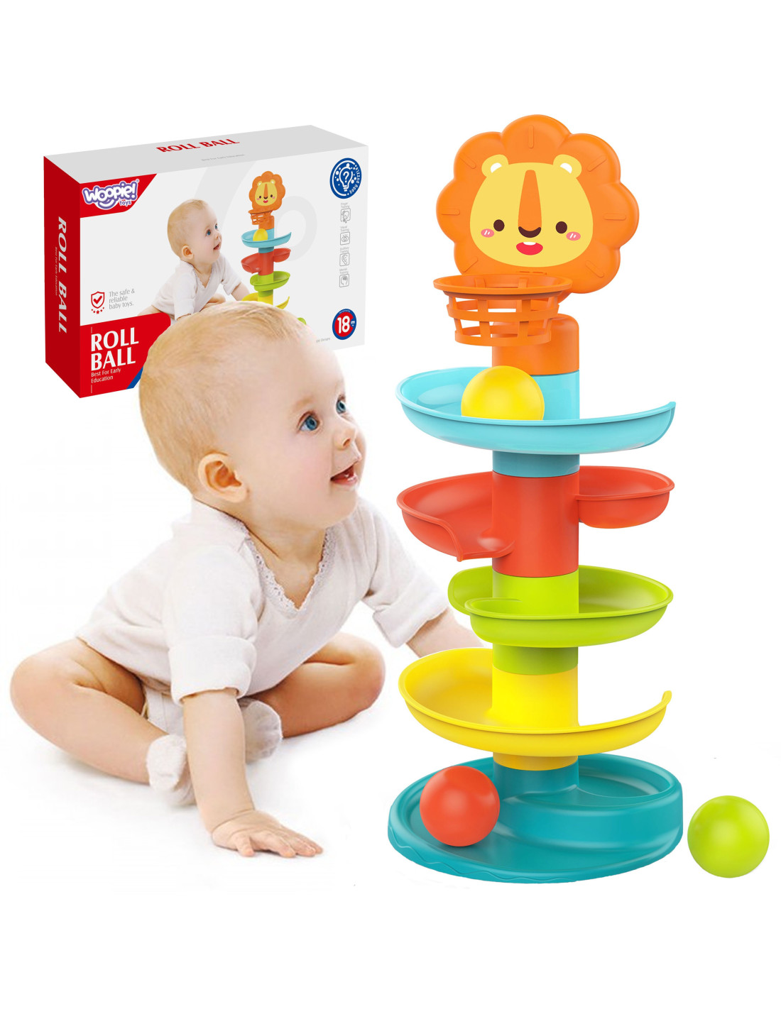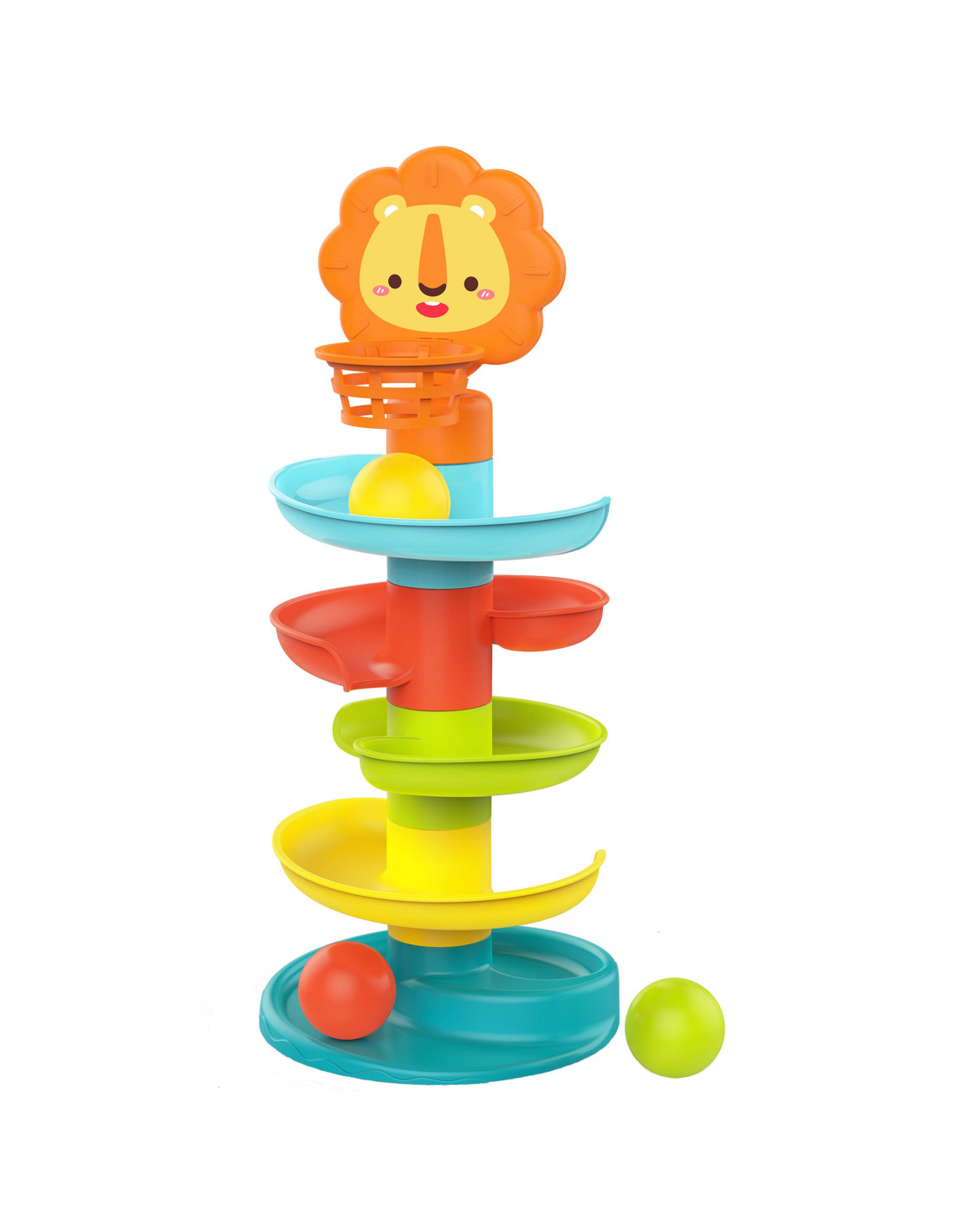 Zjeżdżalnia-Tor Piłeczek o pięciu poziomach z lewem-koszem od marki WOOPIE to idealny prezent dla Twojego dziecka! W trakcie zabawy maluch poznaje zasady działania kształtów kulistych na pochyłych powierzchniach. Wewnątrz kulek znajdują się drobne elementy, które wydają dźwięki podczas turlania się, dostarczając dodatkowych wrażeń sensorycznych. Zjeżdżalnia posiada pięć kolorowych poziomów, które musi pokonać położona przez dziecko piłeczka. Na górze znajduje się sympatyczny lew z koszem, do którego dziecko będzie próbować trafić, rozwijając tym samym swoje zdolności manualne, koordynację oraz celność. Zabawka jest wykonana z bezpiecznego i atestowanego plastiku. To wspaniały sposób na naukę poprzez zabawę!