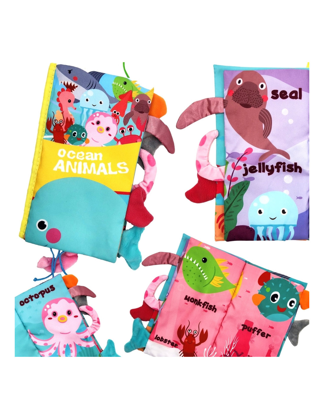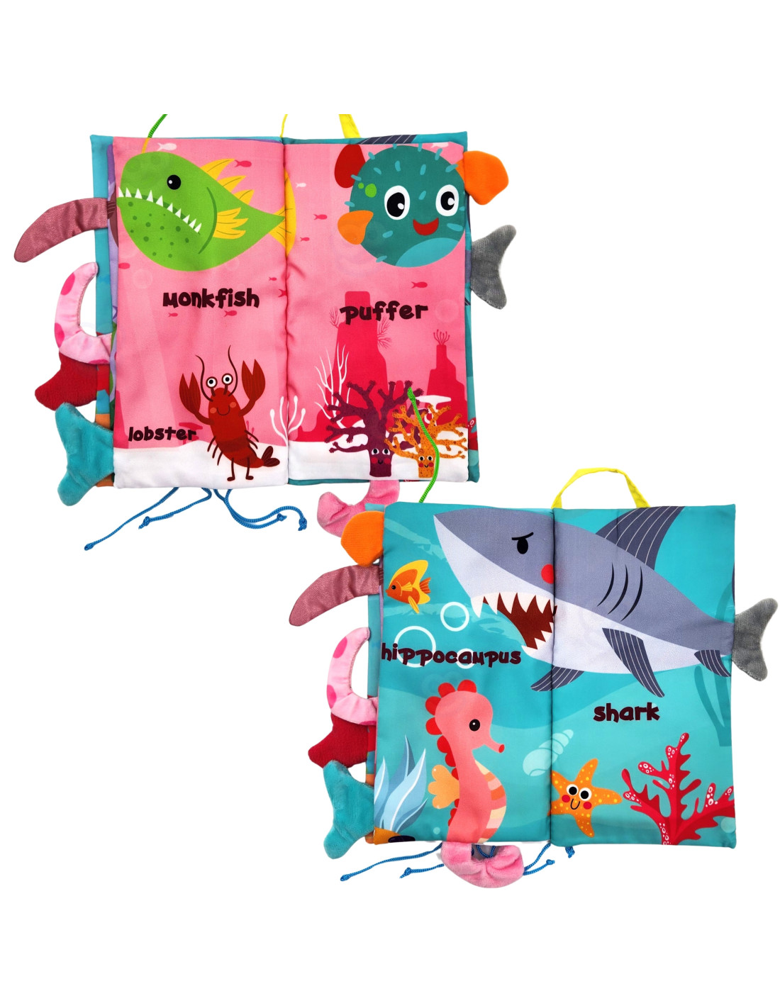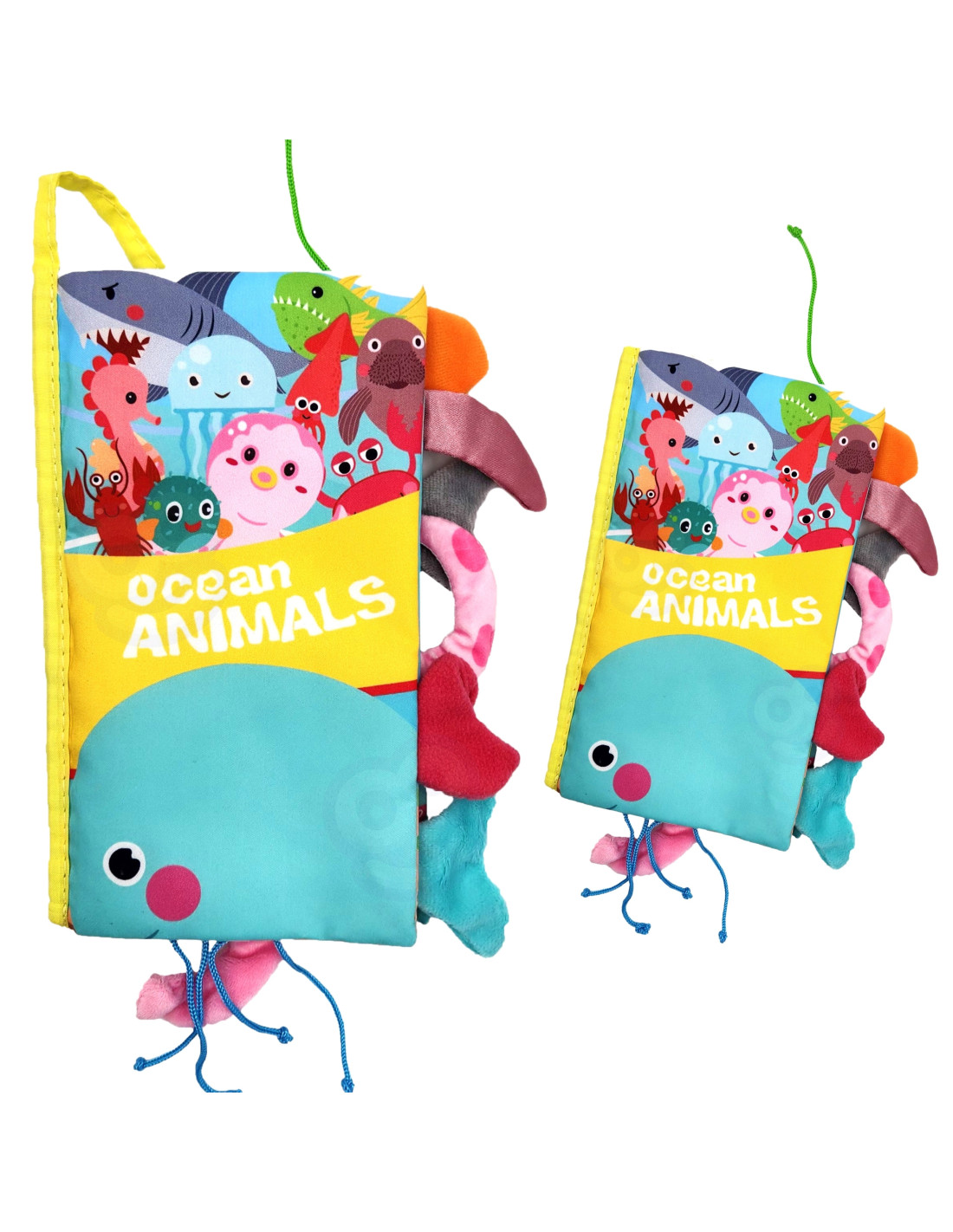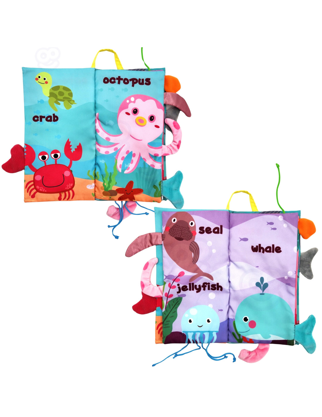 Książeczka z ogonkami zwierząt morskich od marki Woopie idealna dla najmłodszych dzieci. Szeleszczące i bardzo miękkie w dotyku strony rozwijają zmysły maluszka pełniąc funkcję sensoryczną. Kolorowe ilustracje trenują wzrok i spostrzegawczość. W każdej ze stron wystają ogonki różnych zwierzątek, łapiąc za nię maluszek ćwiczy koordynację wzrokowo-ruchową. Książeczka może służyć jako zawieszka do wózka lub łóżeczka, mocowana na rzep.