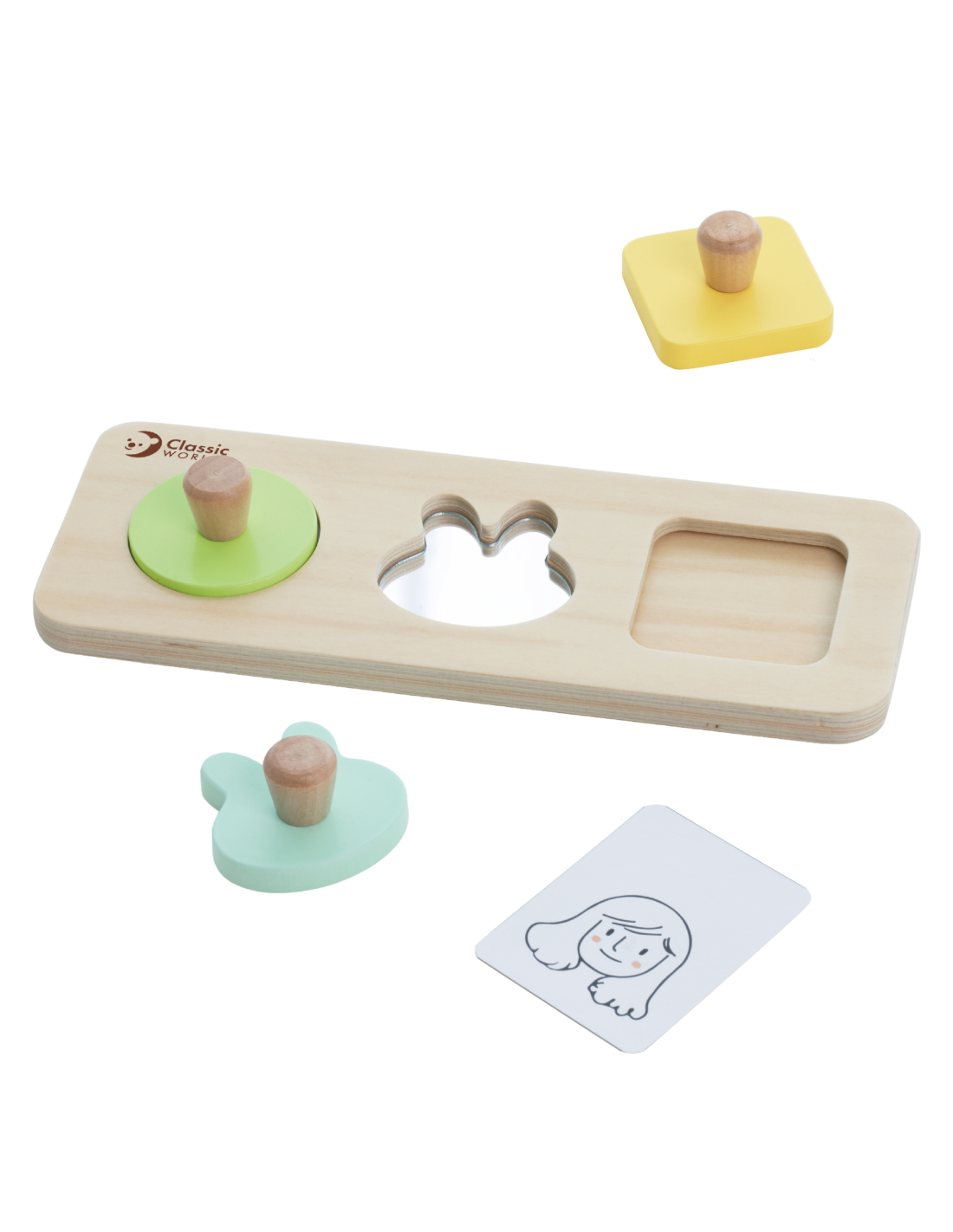 - Dzięki ukrytym elementom takich jak lusterko czy obrazek, zabawka rozwija wyobraźnię malucha
