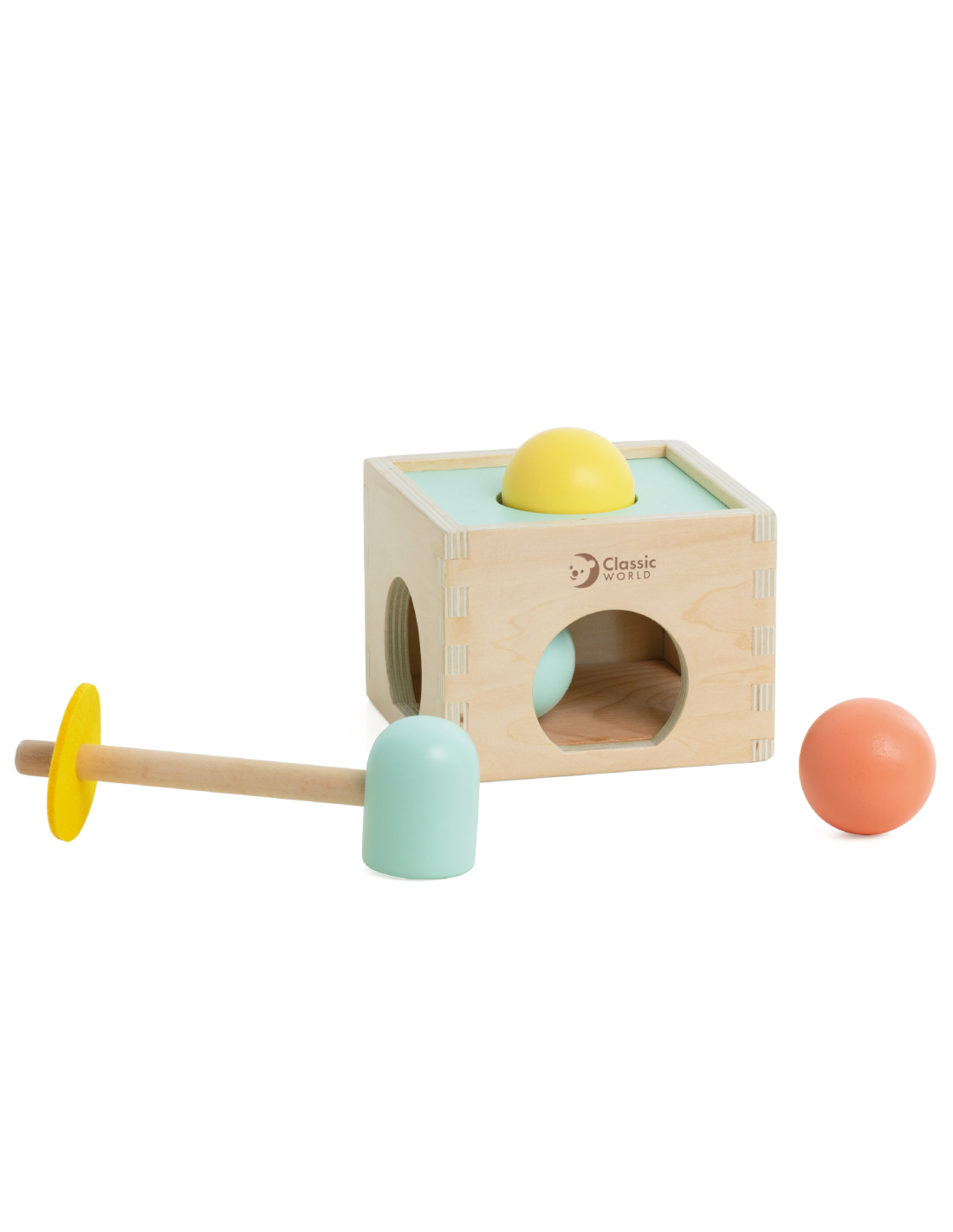 Nauka kontroli ruchu dłoni i ramion u dzieci jest bardzo ważna - to nieodłączny element pomagający w nauce stawania. Dzięki zabawce wbijak, poprzez uderzanie bezpiecznym młoteczkiem piłek, dziecko ćwiczy koordynację oraz motorykę. Dodatkowo to świetne ćwiczenie uczące koncentracji i skupienia.