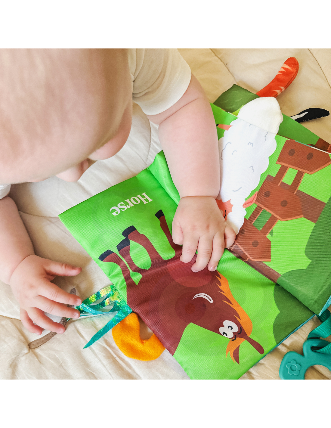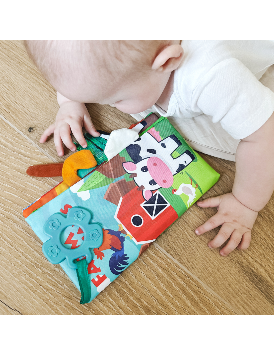 Książeczka z ogonkami zwierząt od marki WOOPIE idealna dla najmłodszych dzieci. Szeleszczące i bardzo miękkie w dotyku strony rozwijają zmysły maluszka pełniąc funkcję sensoryczną. Kolorowe ilustracje trenują wzrok i spostrzegawczość. W każdej ze stron wystają ogonki różnych zwierzątek, łapiąc za nię maluszek ćwiczy koordynację wzrokowo-ruchową. Książeczka może służyć jako zawieszka do wózka lub łóżeczka, mocowana na rzep.