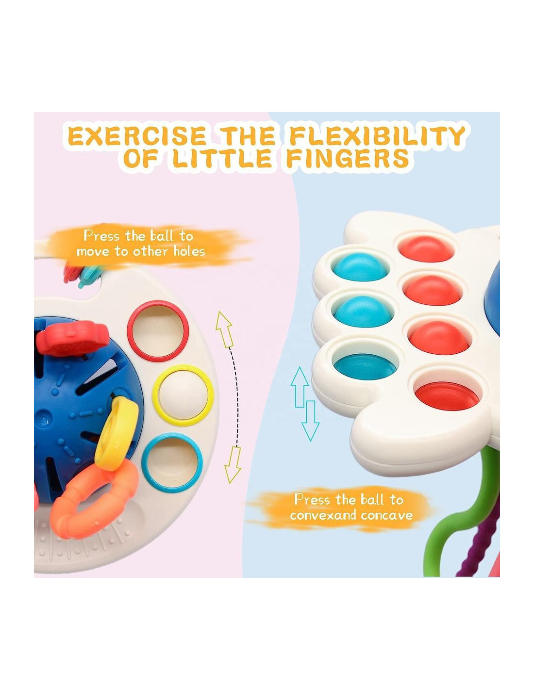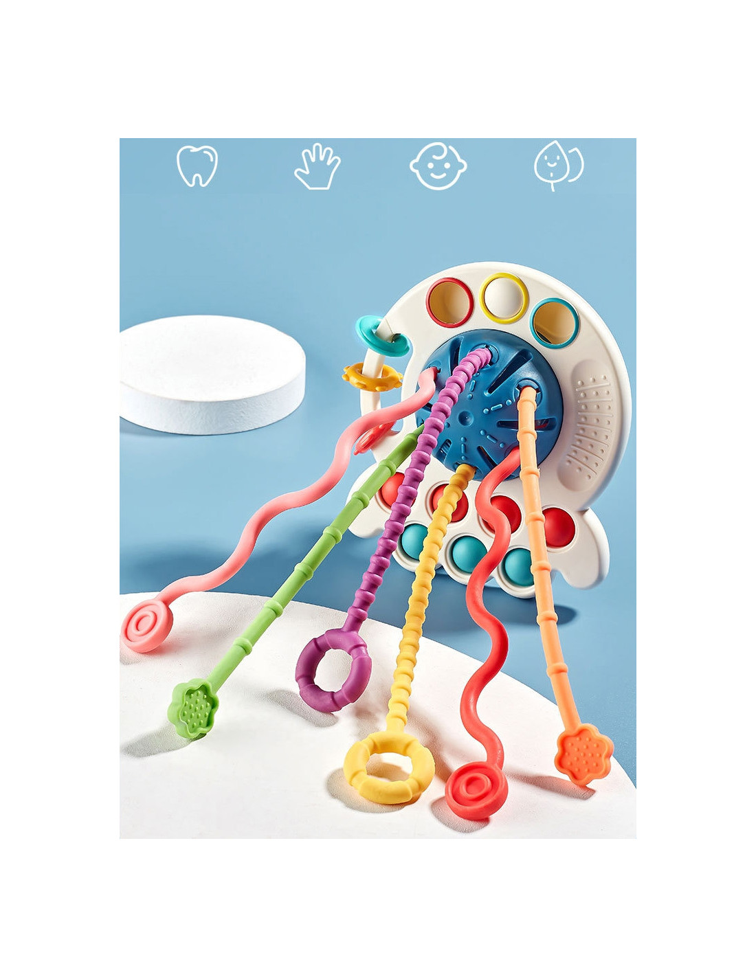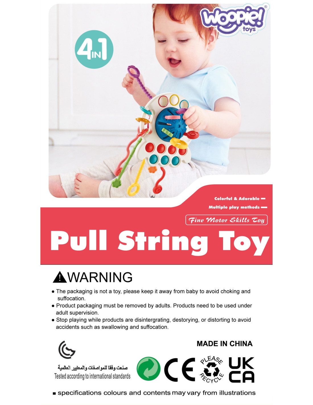 - - Rozwój Motoryczny: Sznurki o różnych fakturach i kształtach zapraszają małe ręce do chwytania, pociągania i eksploracji.