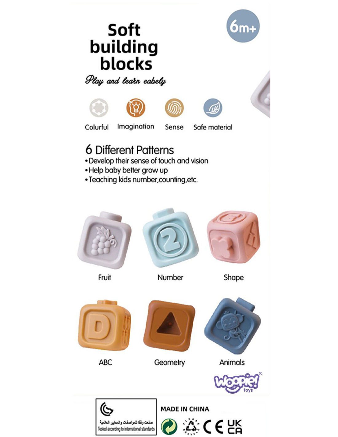 Ten kreatywny zestaw pastelowych klocków z cyferkami od marki WOOPIE jest idealnym wyborem dla najmłodszych dzieci, oferując wiele możliwości edukacyjnych i sensorycznych. Każdy z sześciu klocków wprowadza malucha w świat liczb, jednocześnie rozwijając różne zmysły i umiejętności. Klocki sensoryczne wykonane są z miękkiego, przyjaznego dla dziecka materiału, dzięki czemu mogą pełnić funkcję gryzaka, co przynosi ulgę podczas ząbkowania. Dodatkowo, te wszechstronne klocki mogą towarzyszyć dziecku również podczas kąpieli, dostarczając wiele radości w wodzie. Dzięki wypukłym, dużym liczbą zabawka ułatwia dzieciom pierwsze poznawanie liczb. Zabawka jest wszechstronna, można układać z niej wysoką wieżę, uczyć się liczb a także użyć jako bezpieczny dla dzieci gryzak.