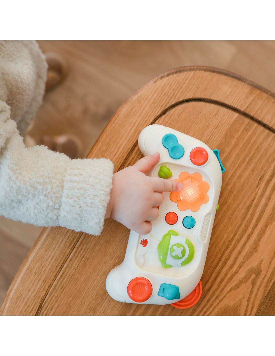 Interaktywny Joystic Pad od marki WOOPIE to wyjątkowa zabawka, która zainteresuje każde dziecko i pomoże w rozwijaniu zdolności motorycznych oraz zmysłowych. Zabawka wyposażona jest w ruchomą rakietę, dzięki której każdy maluch jest w stanie poszybować w krainę zabawy. Joystic wyposażony jest w 10 różnych ruchomych elementów posiadających funkcje światło i dźwięk. Dziecko podczas zabawy rozwija małą motorykę, poznaje kształty i dźwięki.