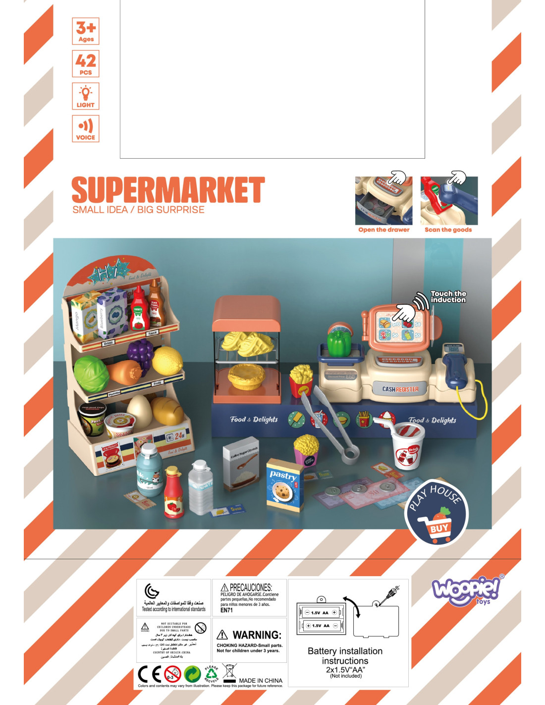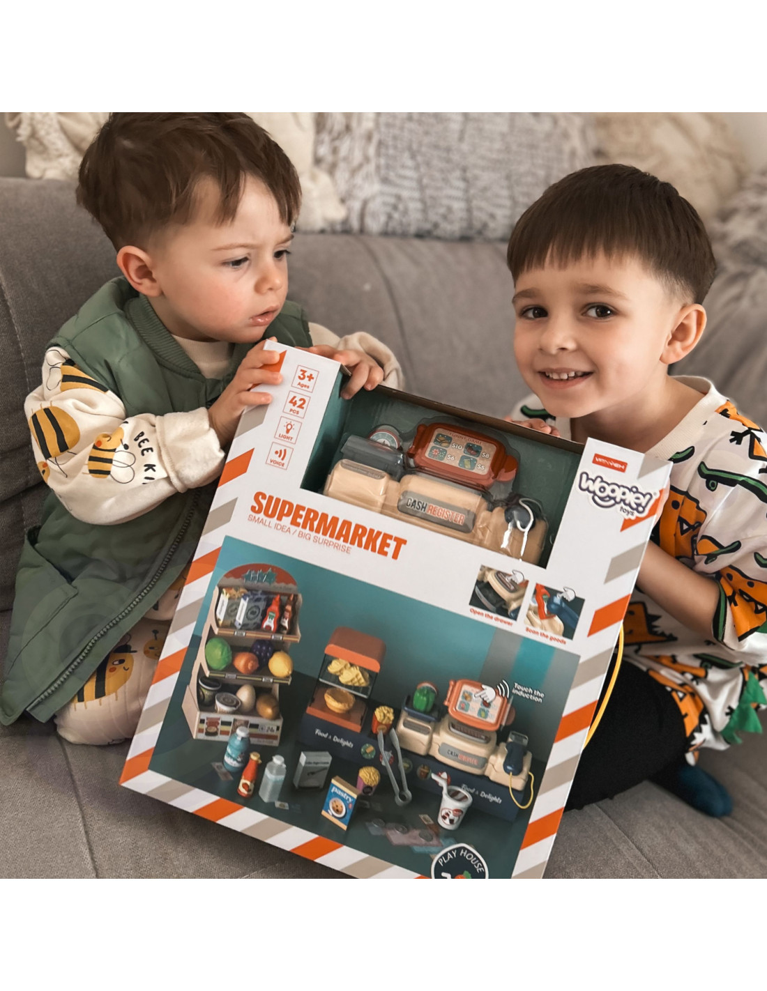 Sklep Supermarket od marki WOOPIE to świetna zabawa dla małych sprzedawców! Dzieci mogą obsługiwać klientów, ważyć produkty i korzystać ze skanera. Zabawa w sklep pomaga rozwijać kreatywność, wyobraźnię oraz zdolności manualne i samodzielne myślenie. Idealny pomysł na wspólne zakupy i mnóstwo frajdy!