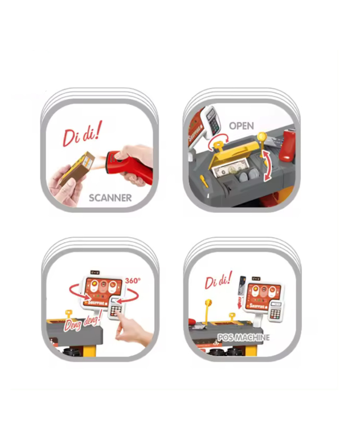 Nowoczesny Supermarket od marki WOOPIE sprawi, że twoje dziecko poczuje się jak za kasą prawdziwego sklepu! Dbałość o każdy szczegół zapewni BEZPIECZNĄ i wciągającą zabawę dla dzieci. Rozpocznij swoją ekscytującą podróż w świat handlu, używając skanera, który ożywia każdy zakup. Ta interaktywna zabawka nie tylko uczy, ale również dostarcza niezapomnianych chwil rozrywki. Dzięki kasie fiskalnej dziecko może odgrywać rolę kasjera, nabywając umiejętności matematyczne i rozwijając kreatywność.