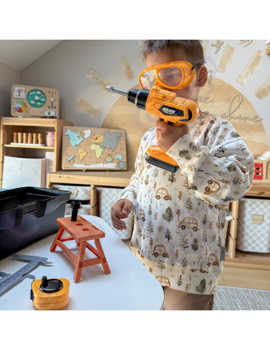 Zestaw Narzędzi Małego Majsterkowicza z Wkrętarką w Walizce od marki Woopie to idealna zabawka dla małego majsterkowicza. Ten kompleksowy komplet, zawierający aż 39 elementów, to prawdziwy warsztat w skrzynce! Z działającą wkrętarką elektryczną z funkcją wyrzynarki oraz licznymi narzędziami, Twoje dziecko będzie mogło naśladować dorosłych i rozwijać swoje umiejętności. Zabawka jest bezpieczna i trwała, a dołączona skrzynka narzędziowa ułatwia przechowywanie i transport.