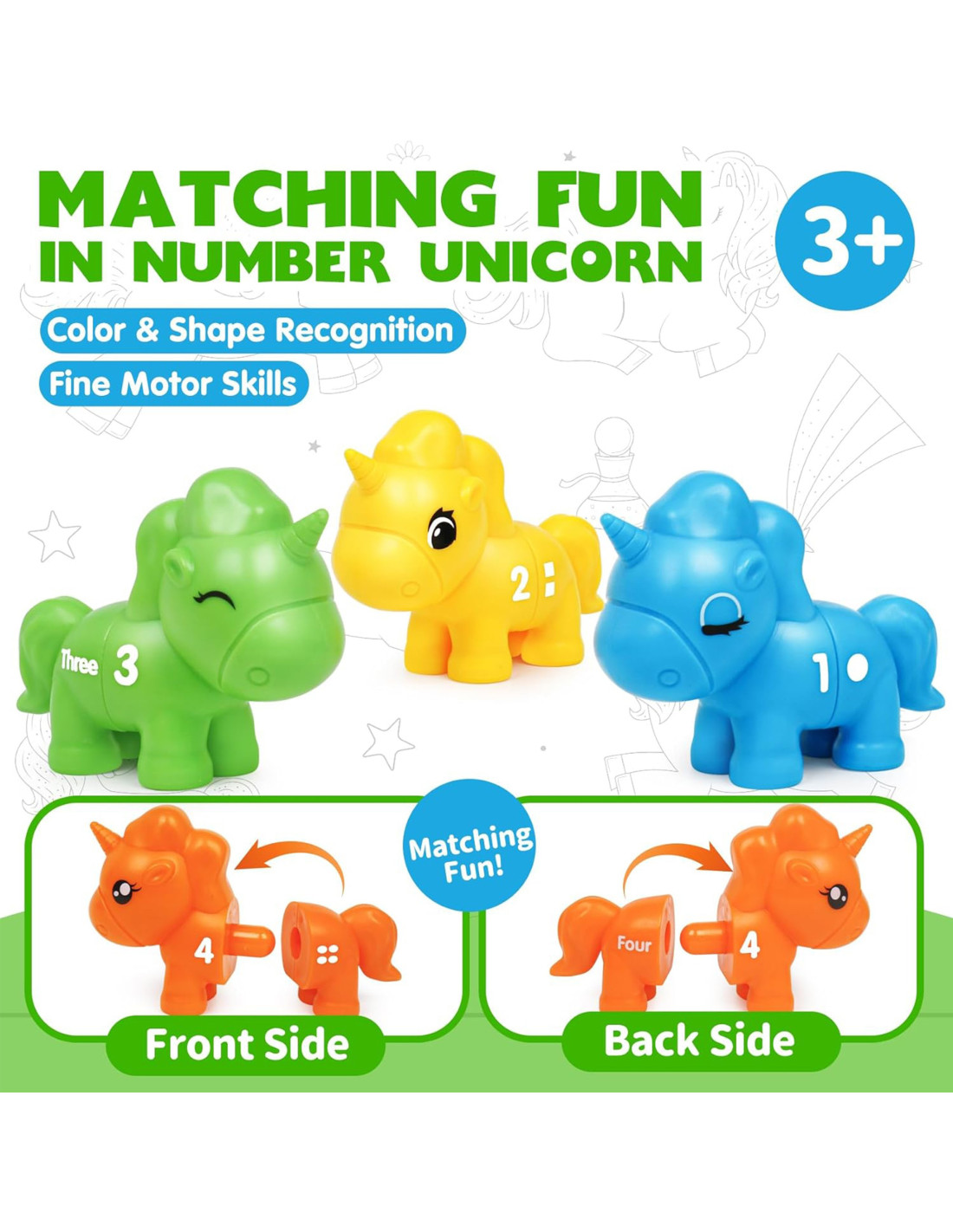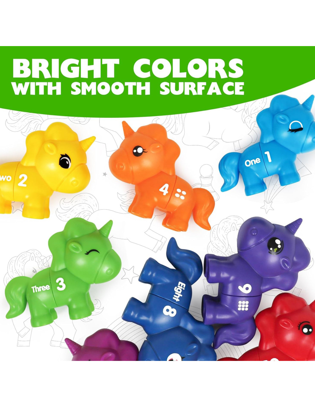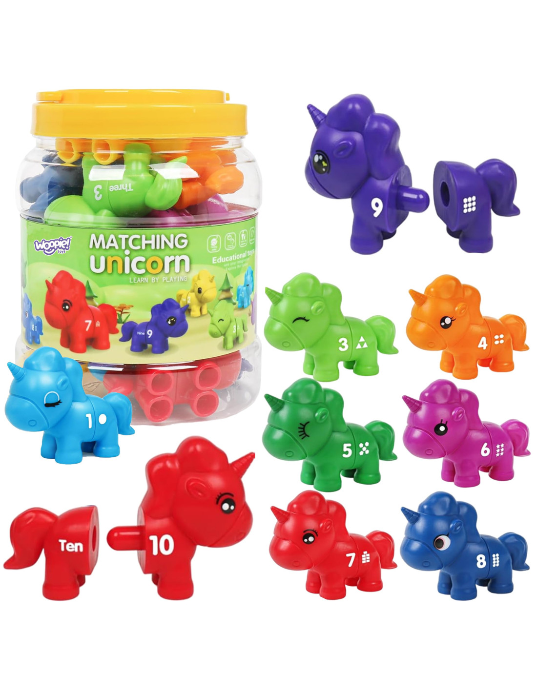 WOOPIE Zestaw Nauka Liczb Kolorów Montessori Figurki Jednorożce do Składania "Dopasuj Cyferki" 13 el.