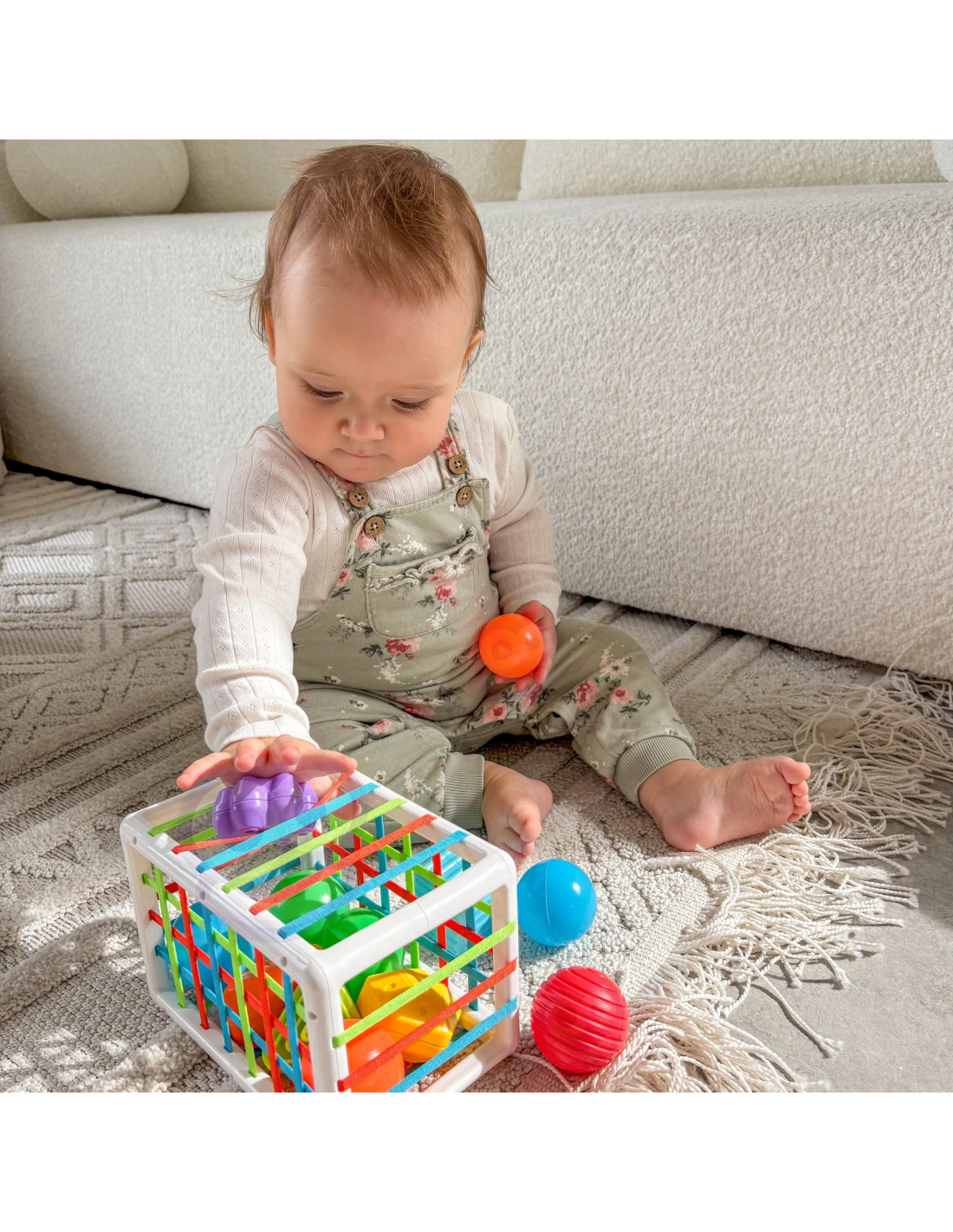 Elastyczna Kostka Sensoryczna od marki WOOPIE pobudzi rozwój Twojego dziecka! Zabawa dziecka polega na wkładaniu i wyjmowaniu elementów z edukacyjnej kostki. Dziecko podczas zabawy rozwija zmysły oraz poprawia zdolności manualne. Każdy z 12 klocków wyróżnia się, co budzi ciekawość dziecka na tyle, by chciało je wyciągnąć i włożyć z powrotem do sortera. W zestawie 6 klocków miękkich piłeczek i 6 sensorycznych twardych. Miękkie klocki można ściskać, a twarde posiadają równe kształty, tekstury tak aby rozwinąć sensorykę, umysł i zachwycić dziecko - zachęca do eksperymentowania. Dodatkowo, gdy dziecko dorośnie klocki można wykorzystać do nauki kolorów i kształtów. Kostka-sorter posiada elastyczne kolorowe gumeczki przyjemne dla dziecka. Niezbędna zabawka dla dziecka we wczesnym etapie życia!