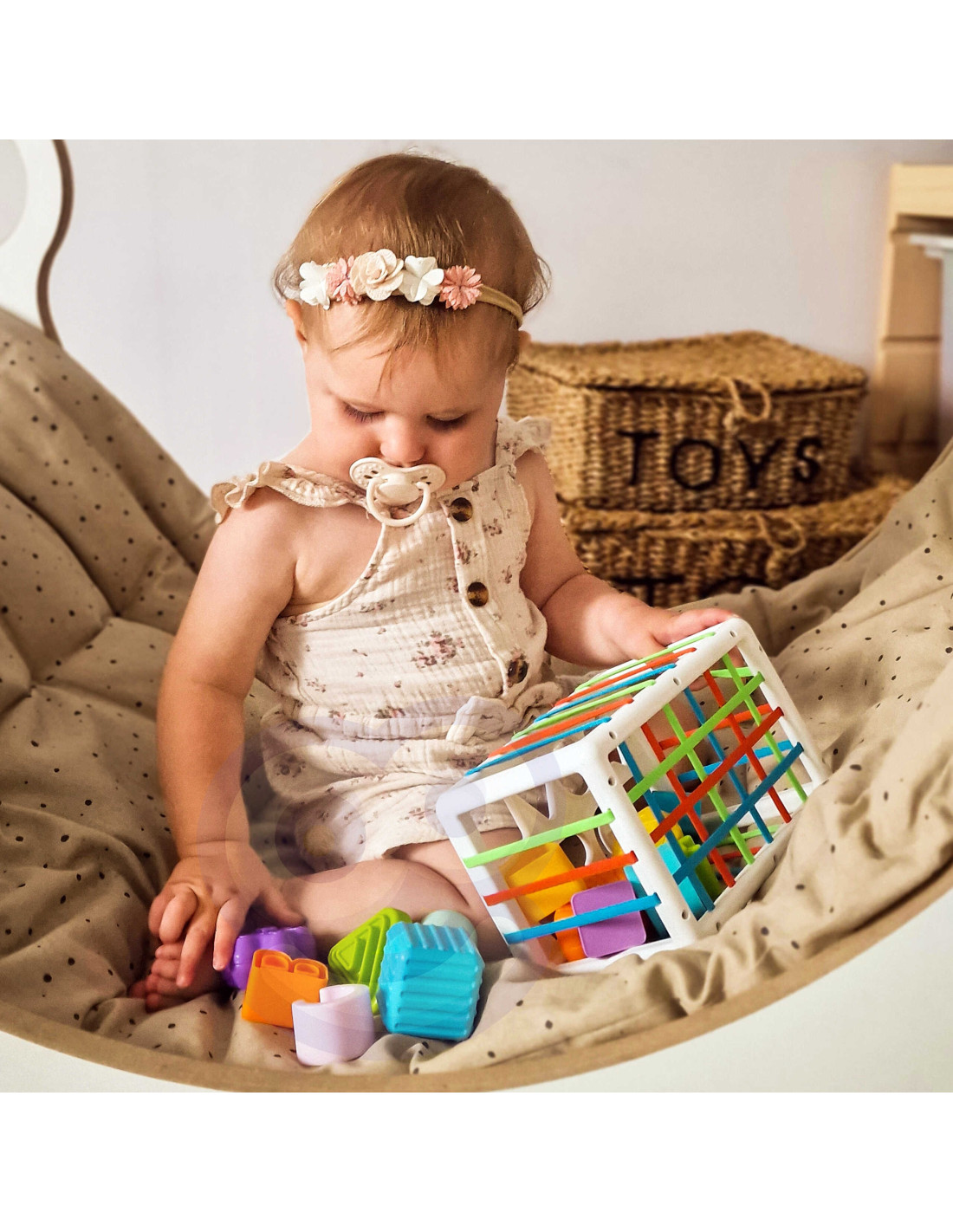 Elastyczna Kostka Sensoryczna od marki WOOPIE pobudzi rozwój Twojego dziecka! Zabawa dziecka polega na wkładaniu i wyjmowaniu elementów z edukacyjnej kostki, dodatkowo jedna ściana to klasyczny sorter z dopasowaniem konkretnych figur geometrycznych i liter. Dziecko podczas zabawy rozwija zmysły oraz poprawia zdolności manualne. Każdy z klocków wyróżnia się, co budzi ciekawość dziecka na tyle, by chciało je wyciągnąć i włożyć z powrotem do sortera. Zabawka rozwija sensorykę i umysł, a także zachęca do eksperymentowania. Dodatkowo, gdy dziecko podrośnie klocki można wykorzystać do nauki kolorów, kształtów oraz liter. Niezbędna zabawka dla dziecka we wczesnym etapie życia!