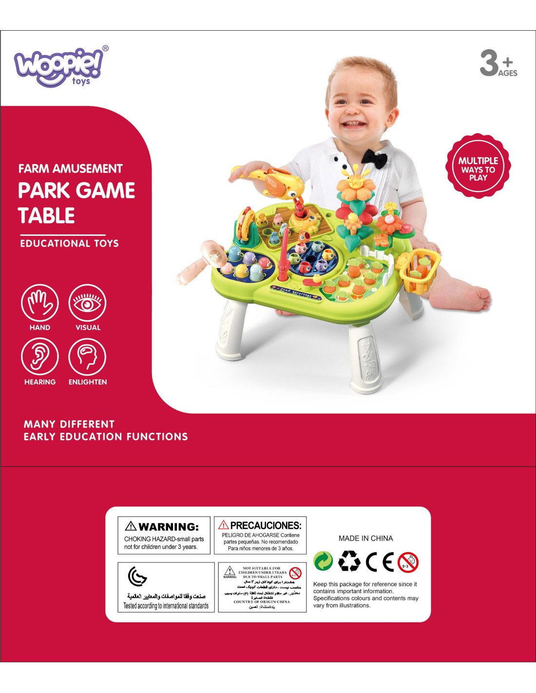 Interaktywny multistolik edukacyjny od marki WOOPIE to wyjątkowy zestaw gier i zabawek, który zapewnia nie tylko rozrywkę, ale także rozwój umiejętności Twojego dziecka. Stolik dzięki swojej wielofunkcyjności pozwala dziecku na różnorodną zabawę i gwarantuje, że zabawka nie będzie się nudzić, ponieważ ma do zaoferowania wiele aktywności: łowienie rybek, wbijania robaczków młoteczkiem, zabawy w ogród czy zabawy z dzięciołem w wyciąganie robaczka. Te wszystkie zabawy pozwalają dziecku na spokoje oswajanie się z powierzonymi mu zadaniami, uczą cierpliwości oraz usprawniają rączki. Dziecko podczas zabawy wycisza się oraz pracuje nad swoją małą motoryką. Zabawka zapewnia interaktywną i angażującą zabawę, która rozwija wyobraźnię, spostrzegawczość i umiejętności interpersonalne dziecka, umożliwiając mu eksplorowanie świata wokół siebie.