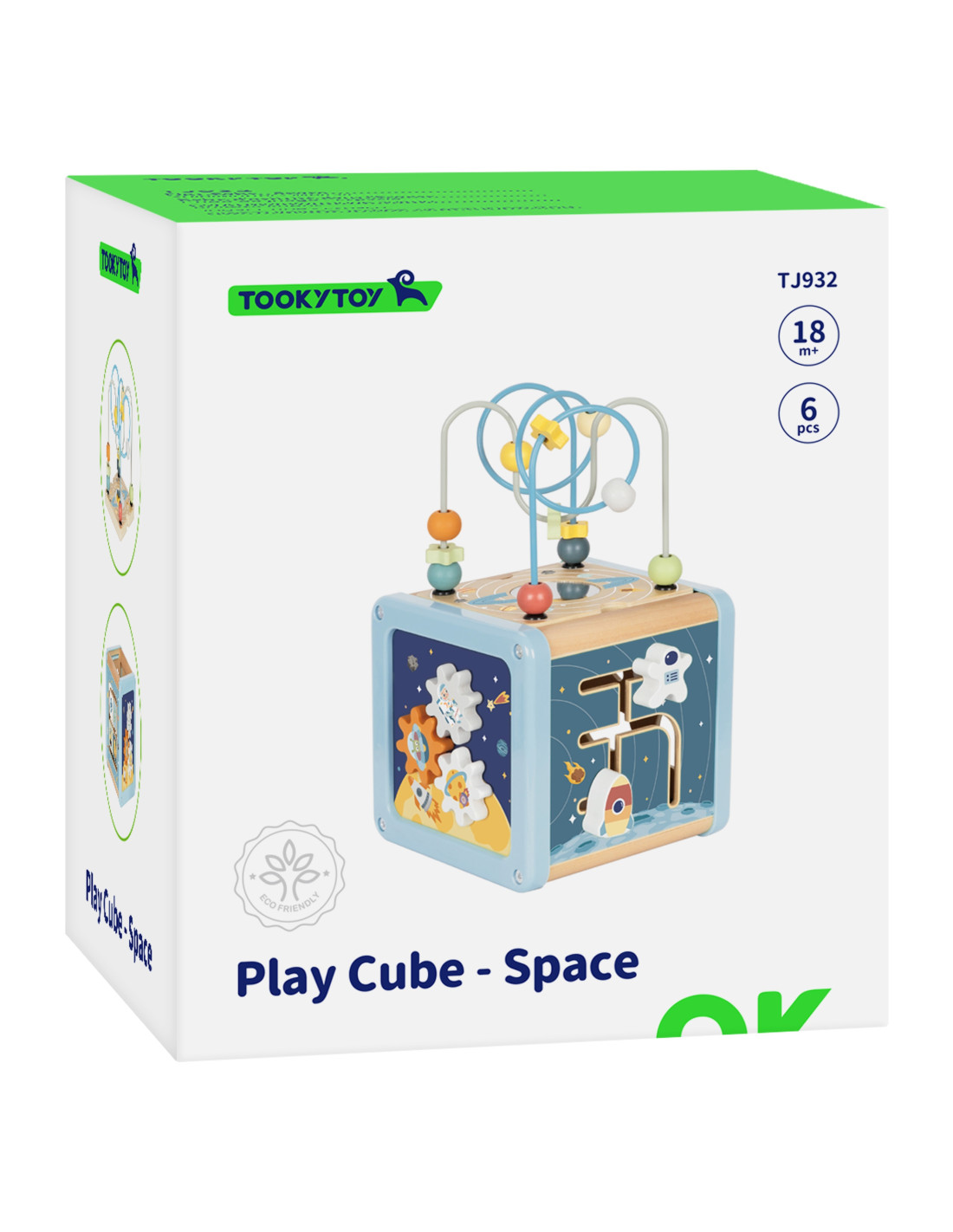 Drewniana Kostka Aktywności Kosmos od marki Tooky Toy to edukacyjny, kompleksowy zestaw w delikatnych pastelowych kolorach. Kostka aktywności jest wielostronna, oferując różnorodne interaktywne panele na każdej ze stron. Znajdują się na niej zębatki, klocki sortery i suwaki, które nie tylko pobudzają ciekawość dziecka, ale także rozwijają jego umiejętności motoryczne. Labirynt z koralikami to doskonałe narzędzie do poprawy koordynacji wzrokowo-ruchowej u dzieci. Część z labiryntem można schować wewnątrz kostki, co ułatwia przechowywanie.