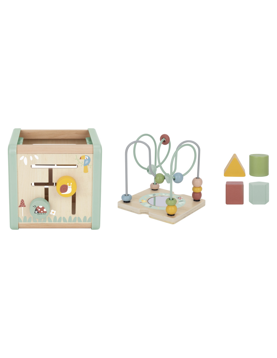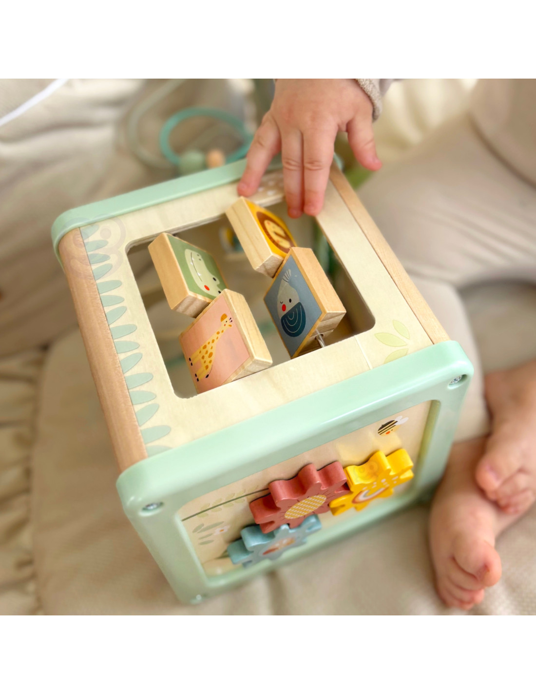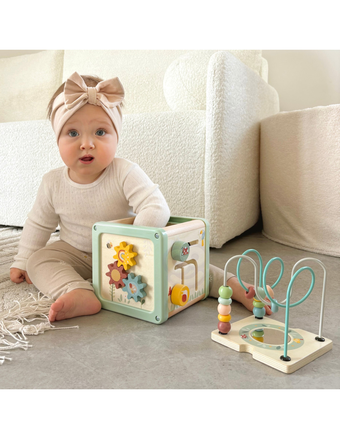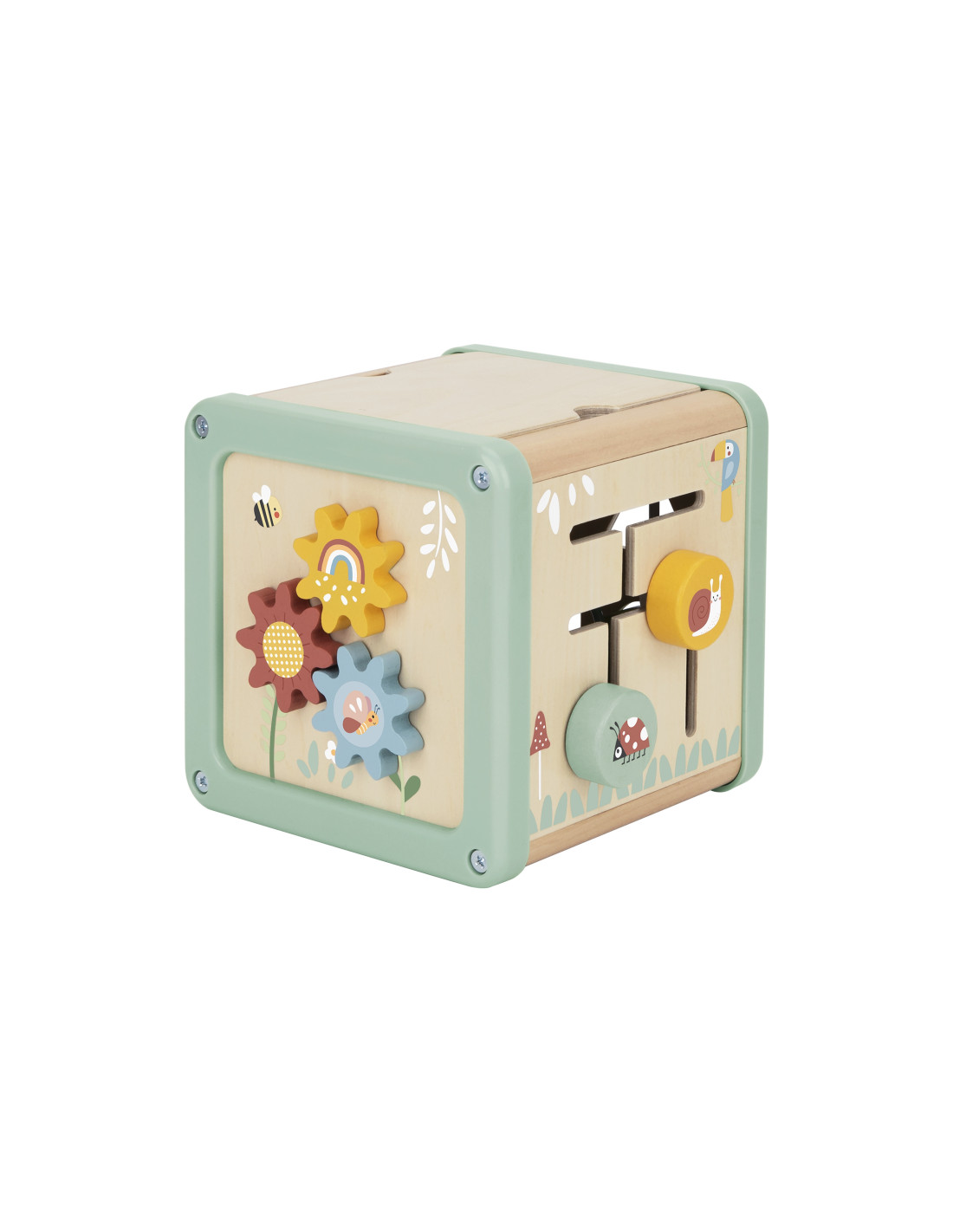 Drewniana Kostka Aktywności od marki WOOPIE GREEN to fantastyczny zestaw edukacyjny, który rozweseli malucha i pomoże w nauce podstawowych umiejętności. Dzięki wielostronnym panelom, które oferują różnorodne zabawy, dziecko będzie mogło odkrywać zębatki, klocki, sortery, suwaki, a także labirynt z koralikami. Wszystko to w delikatnych pastelowych kolorach, które przyciągają wzrok i zachęcają do zabawy.