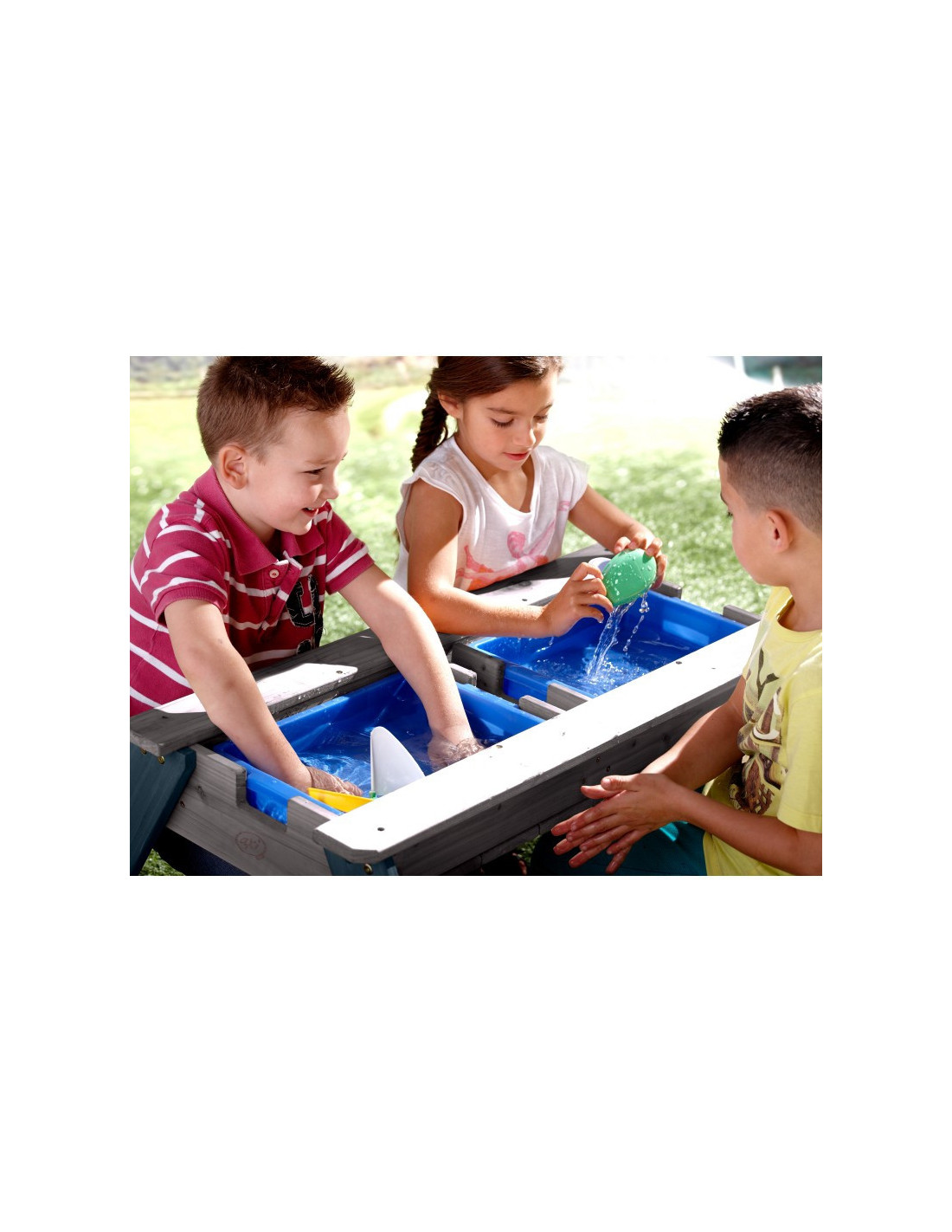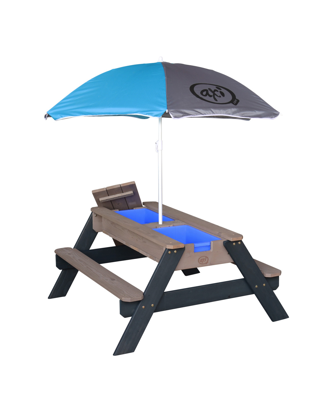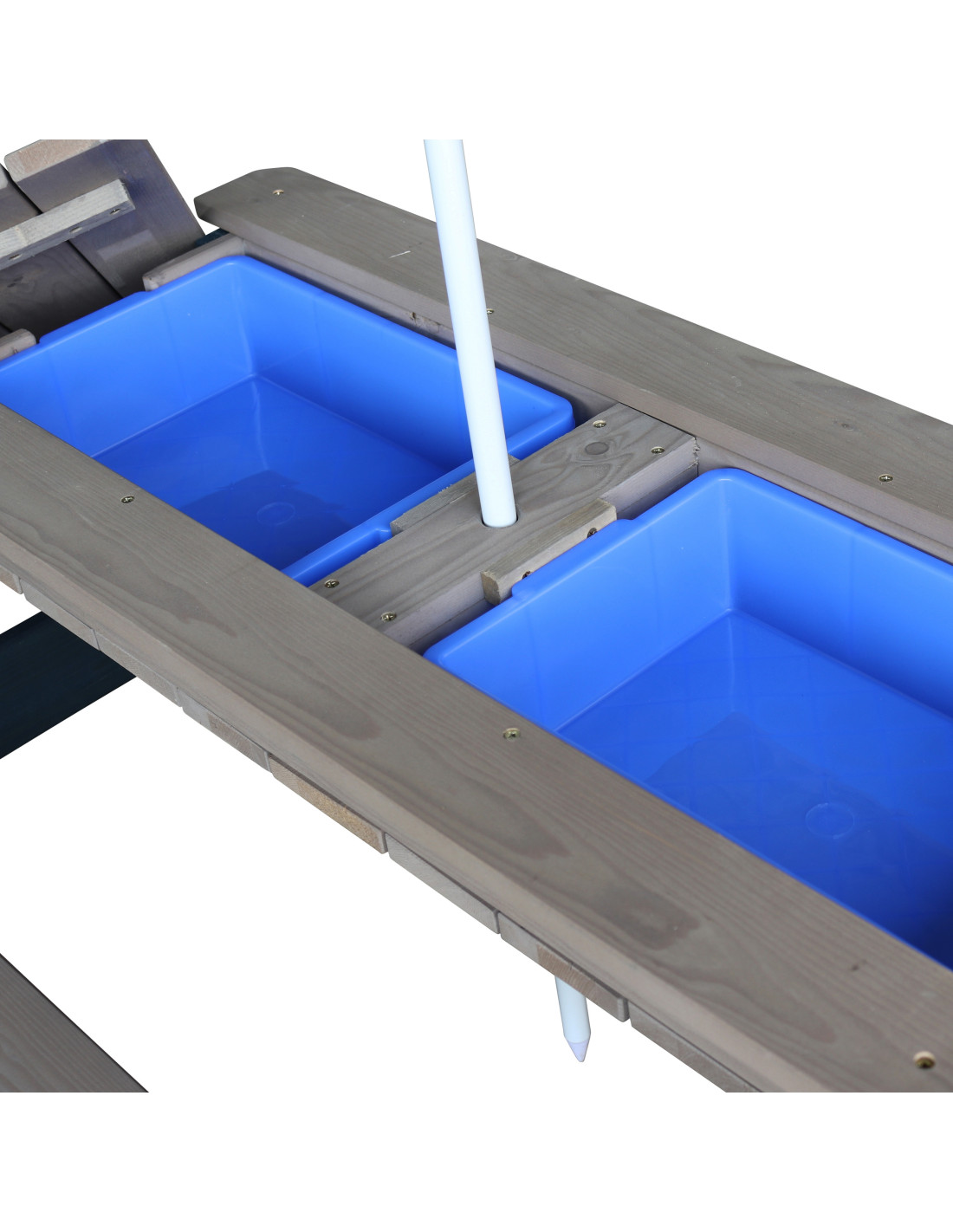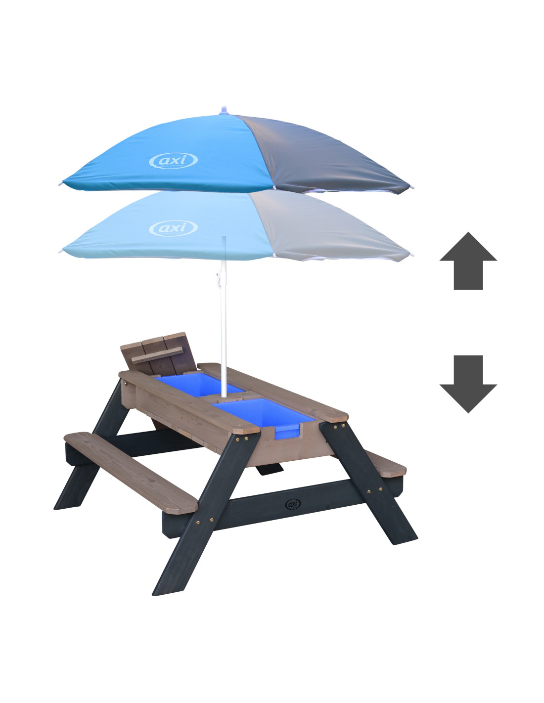 Stolik piknikowy Nick dla dzieci firmy Axi sprawi Twoim pociechom wielką radość. Dzieci mają miejsce, żeby wygodnie usiąść, bawić się i malować. Maluchy będą miały wygodny kącik tylko dla siebie. A jeśli znudzi im się spokojne siedzenie, po zdjęciu blatu stolika, zestaw przeistacza się w piaskownicę lub stolik wodny. Mamy dwie komory, które przystosowane są zarówno do piasku, jak i do wody. Dzięki temu z jednej strony dzieci mogą budować zamki z piasku, a z drugiej mogą bawić się zabawkowymi łodziami. Stolik świetnie sprawdzi się w ogrodzie, na tarasie oraz balkonie.