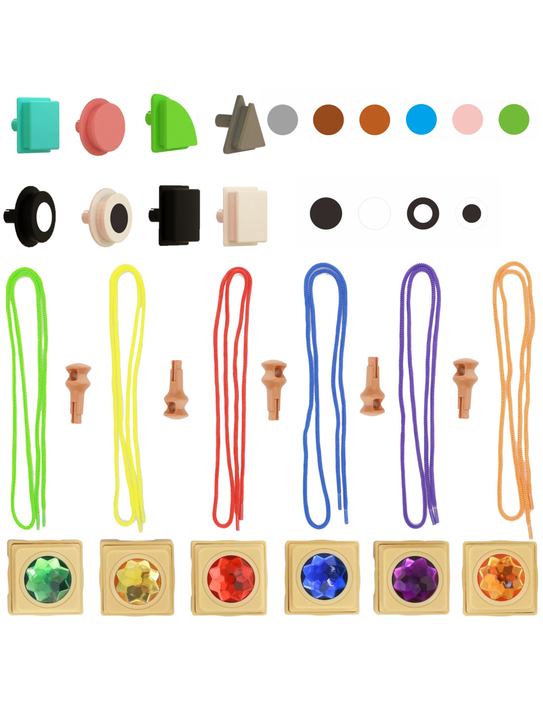 - - 64 kołeczki geometryczne (4 kształty, 6 kolorów)