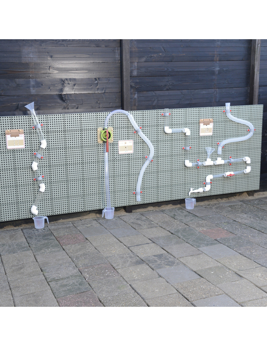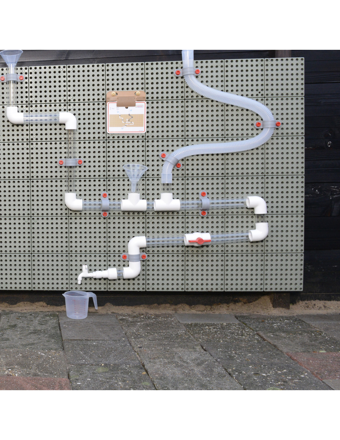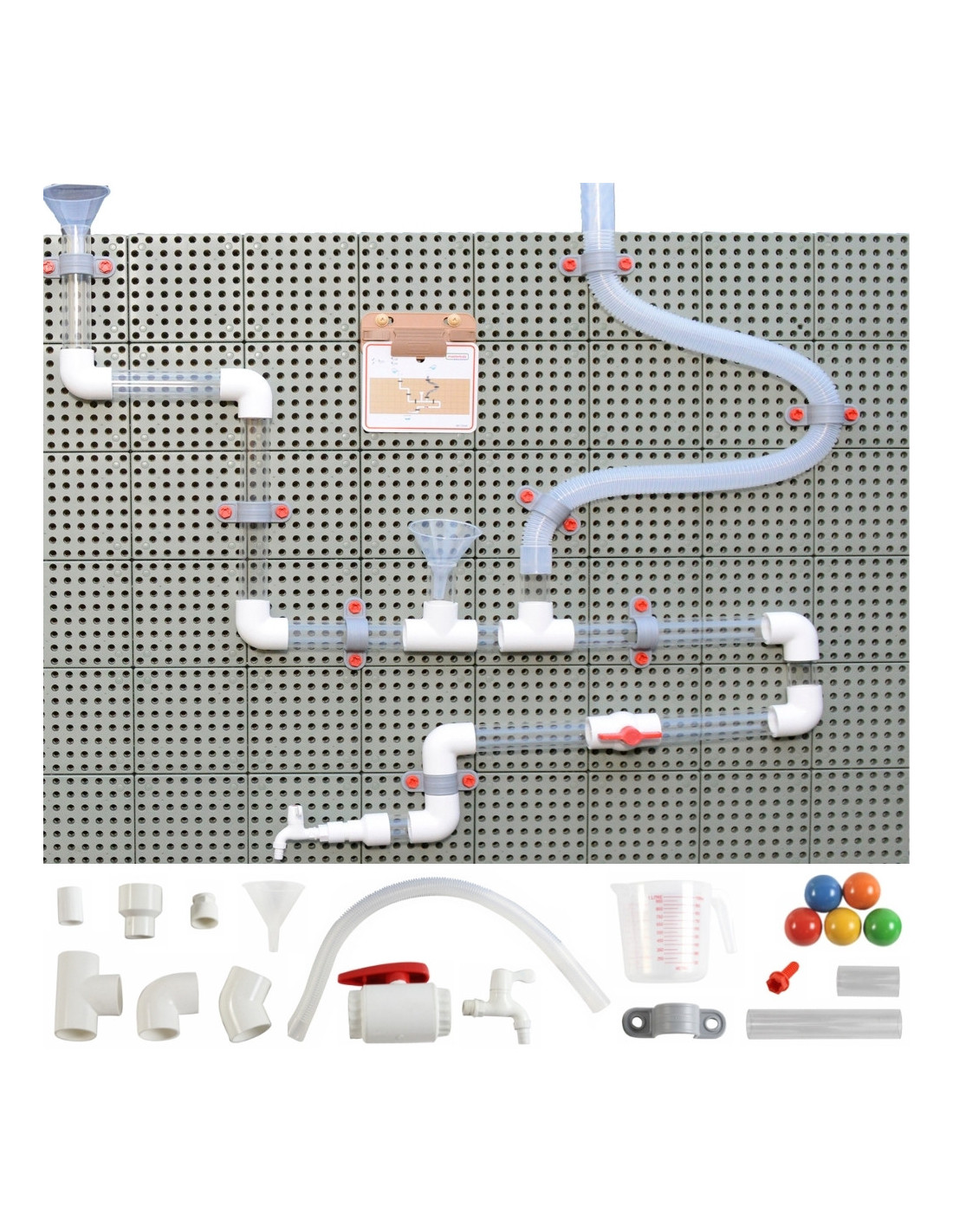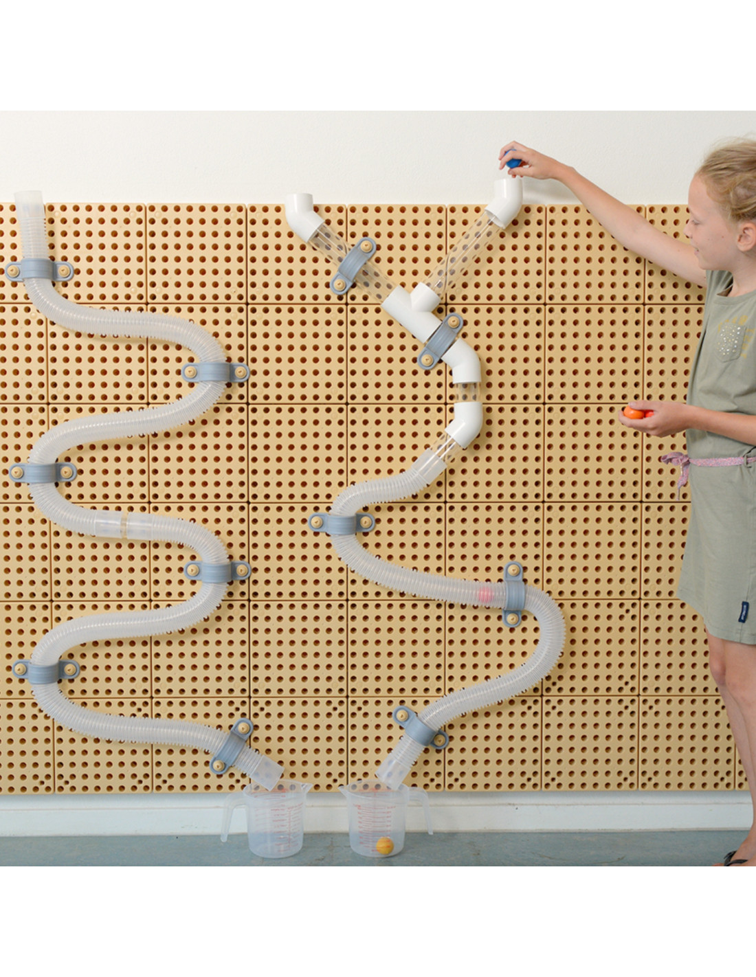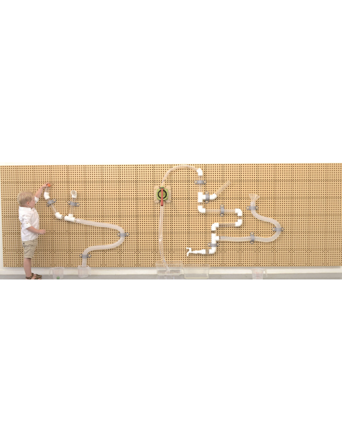 Do zestawu można dokupić pompę wodną, która sprawi, że zabawa stanie się jeszcze ciekawsza. Rurami można przepuszczać wodę, wlewając ją do lejków za pomocą dołączonych do zestawu dzbanków, ale można również zobaczyć jak spadają drewniane piłeczki, wrzucając do środka. Można zbudować jeden ogromny system rur, lub kilka mniejszych, by bawić mogło się kilkoro dzieci jednocześnie. Niesamowita zabawka marki Masterkidz, która służy do skonstruowania hydraulicznego systemu.