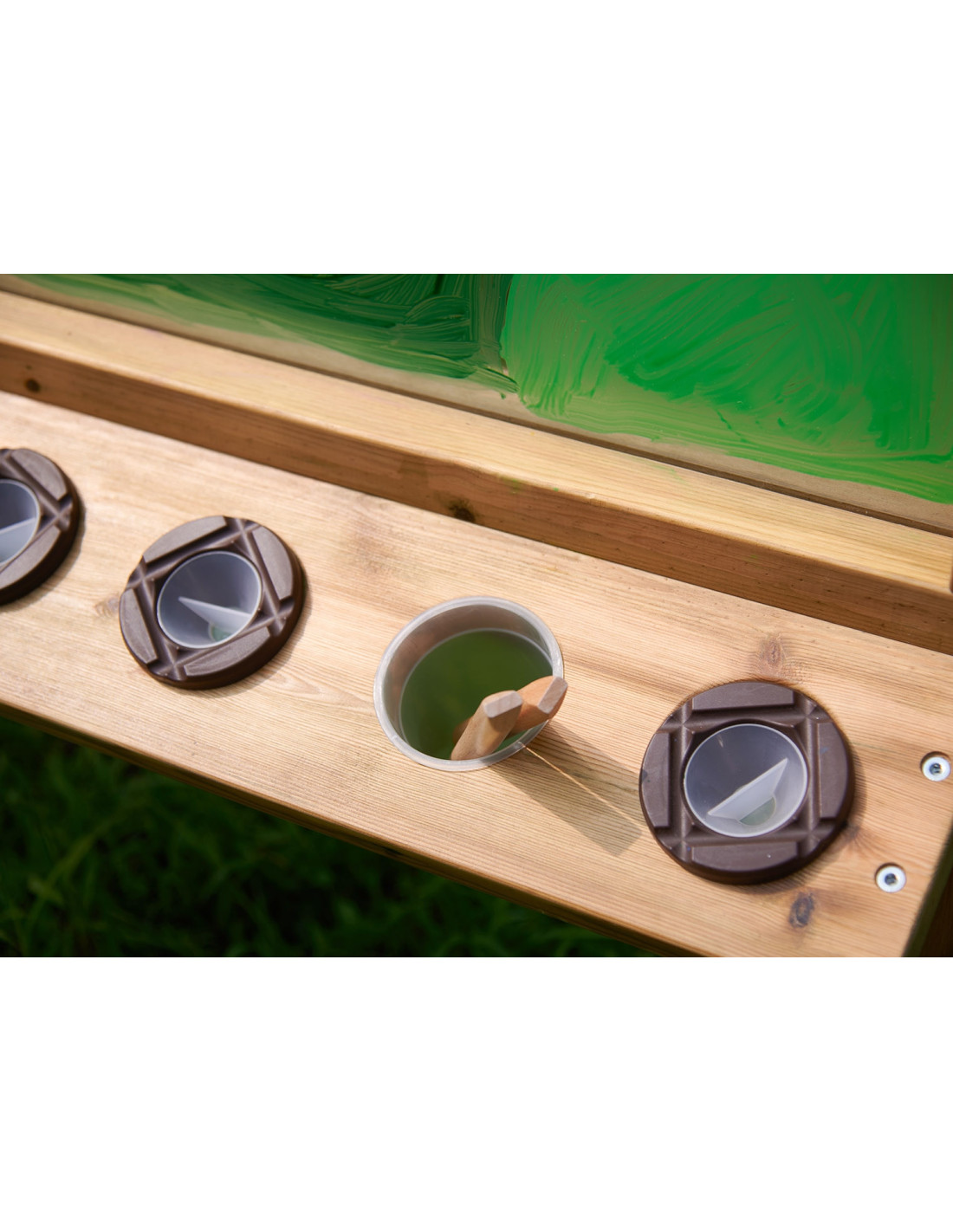 - Specjalne miejsca na farby, naczynia z wodą oraz pędzle .