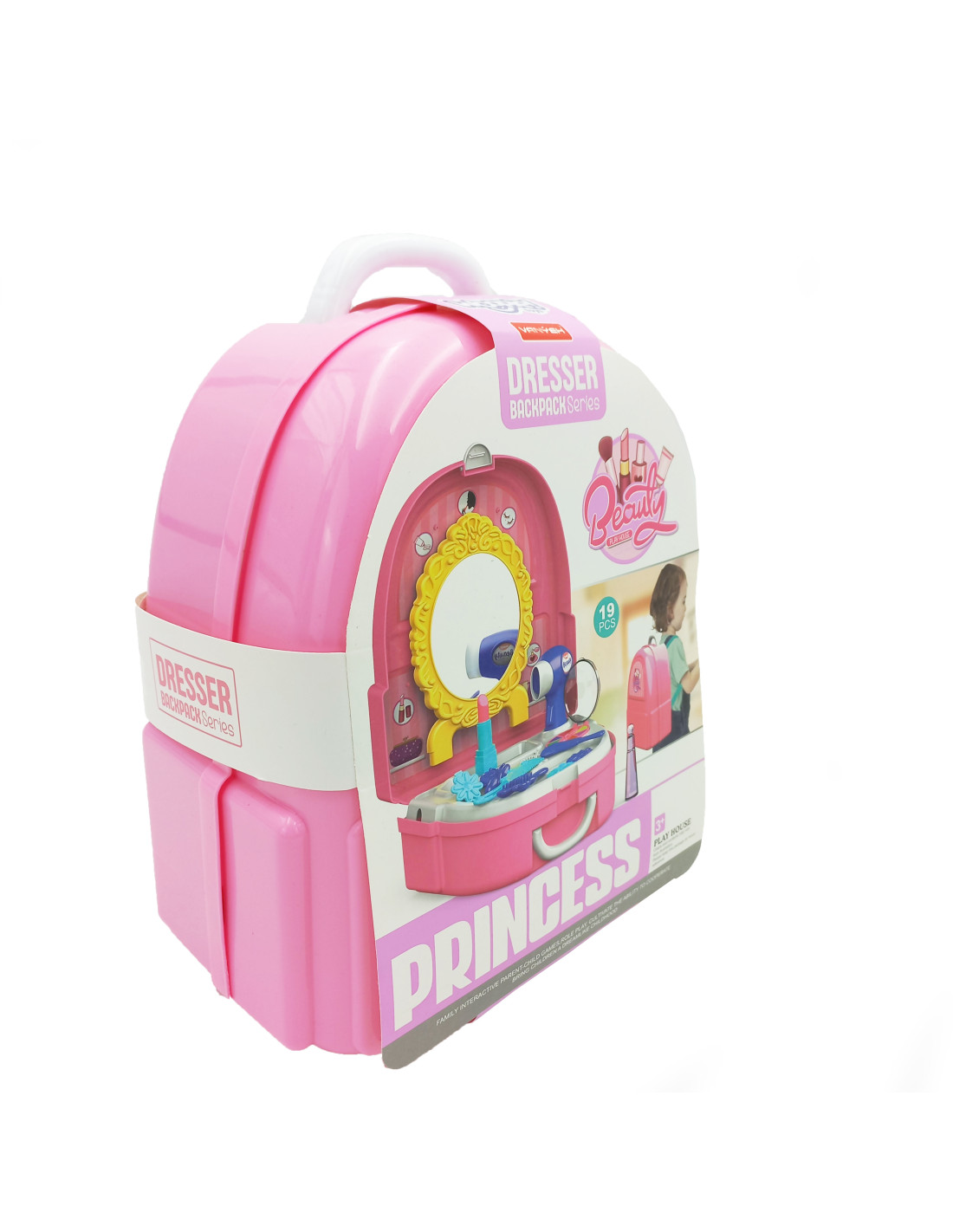 Zestaw Małej Księżniczki w Plecaku od marki WOOPIE pozwoli Twojemu dziecku poczuć się jak modelka wszędzie i kiedy tylko zechce. Dziecko marzy o zostaniu księżniczką oraz uwielbia eksperymentować ze stylem i modą. Zestaw zawiera 19 elementów: wszystkie potrzebne rzeczy, które posiada wspaniała toaletka. Zabawka pełni funkcję plecaka dzięki tasiemkom na ramiona, co pozwoli wszędzie zabrać zestaw. Odgrywanie ról pomoże dziecku rozwinąć wyobraźnie i kreatywność.