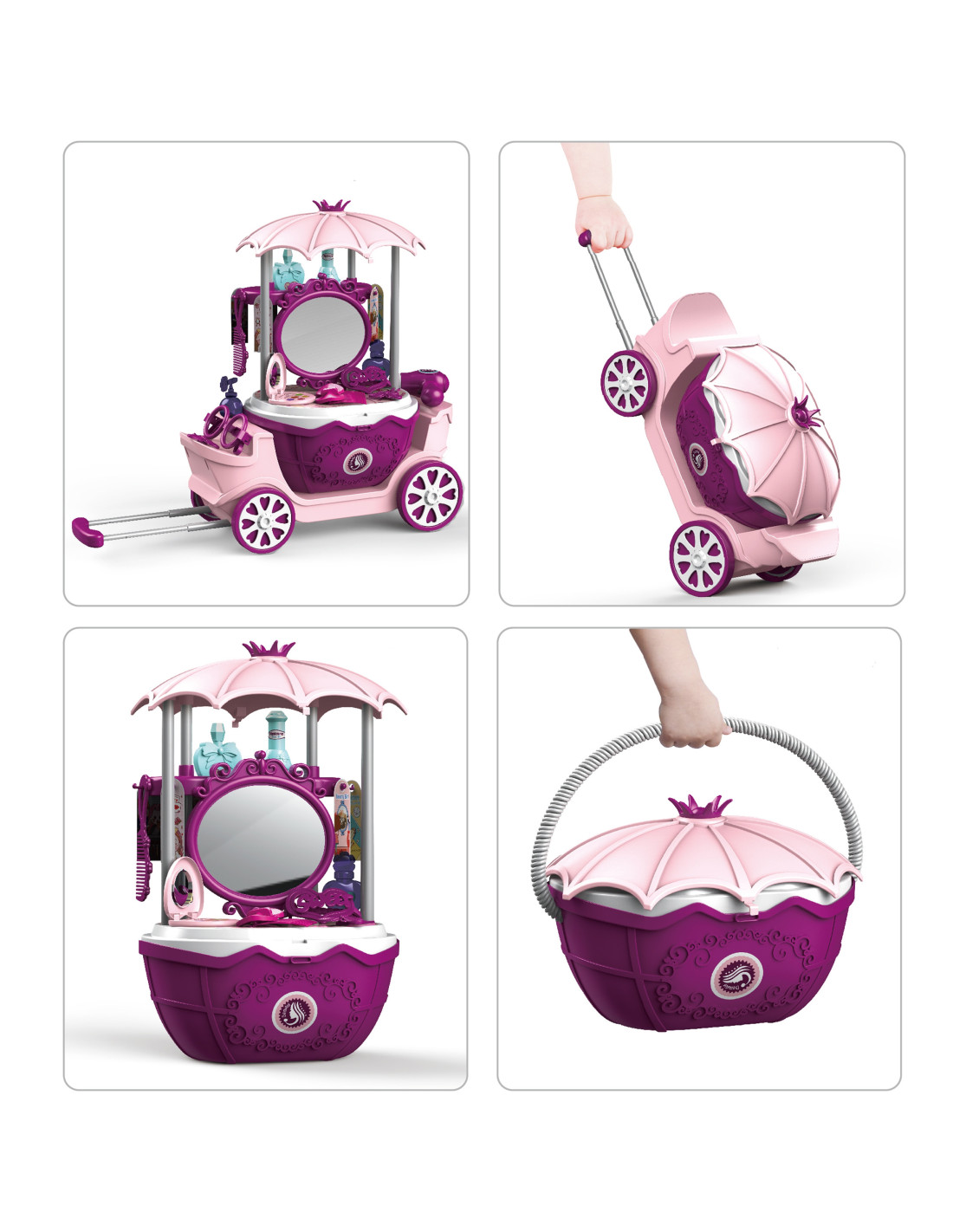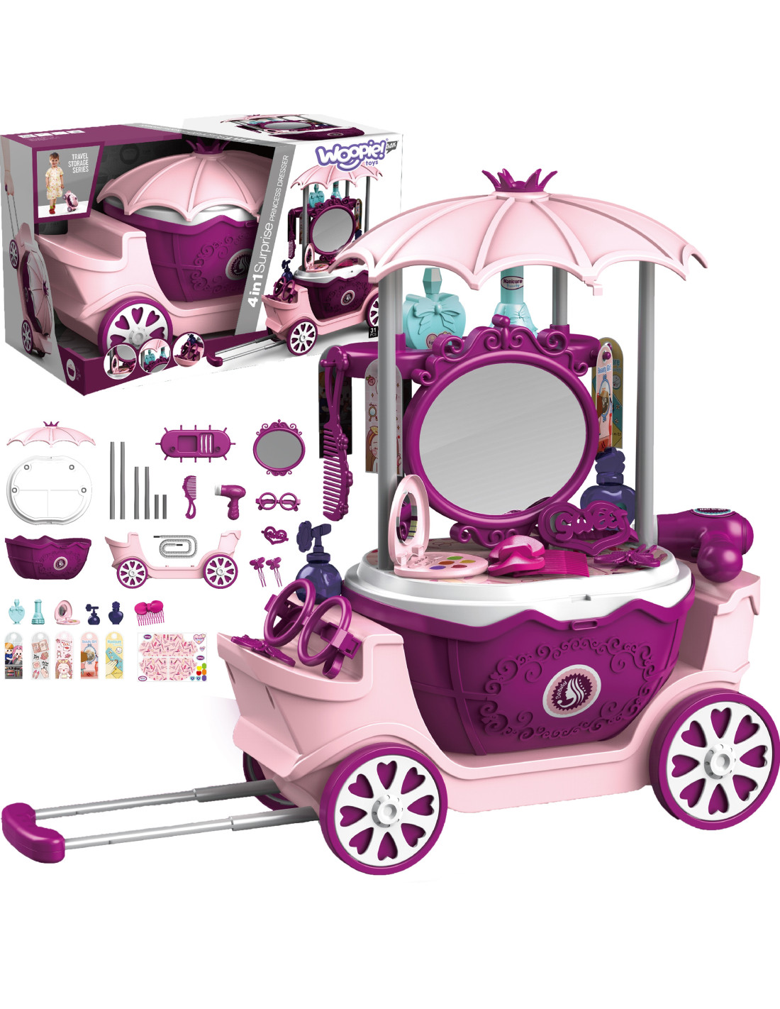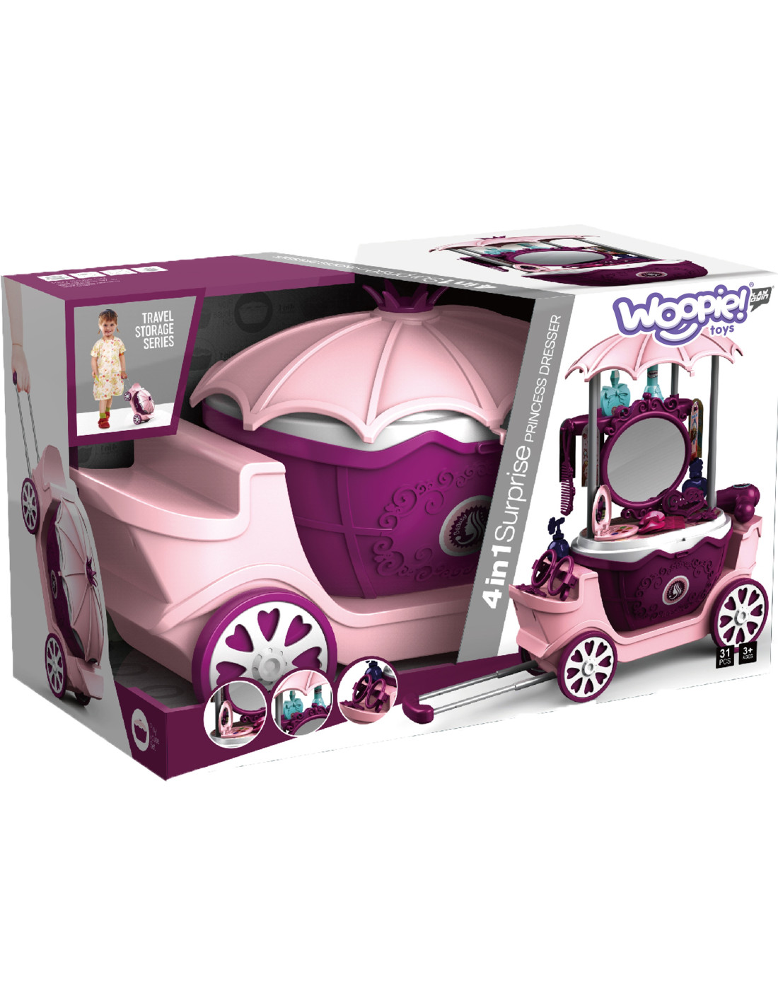 Salon piękności - toaletka w Walizce 4w1 od marki WOOPIE to nieograniczona okazja do zabawy w małą makijażystkę. Dziecko dzięki temu zestawowi może uruchomić swój własne przenośne studio makijażu i tworzyć w nim niesamowite fryzury oraz makijaże. W tej zabawce główną rolę odgrywa wyobraźnia i kreatywność - dziecko może dowolnie aranżować swój salon i obsługiwać klientów. Elementy składające się na zestaw są solidne i wykonane z dobrej jakości materiałów, co gwarantuje długotrwałą i bezpieczną zabawę. Studio może być inspiracją dla dzieci, by naśladować dorosłych i zdobywać umiejętności interpersonalne. Zabawka pomaga w rozwijaniu małej motoryki oraz wyobraźni i kreatywności dziecka.