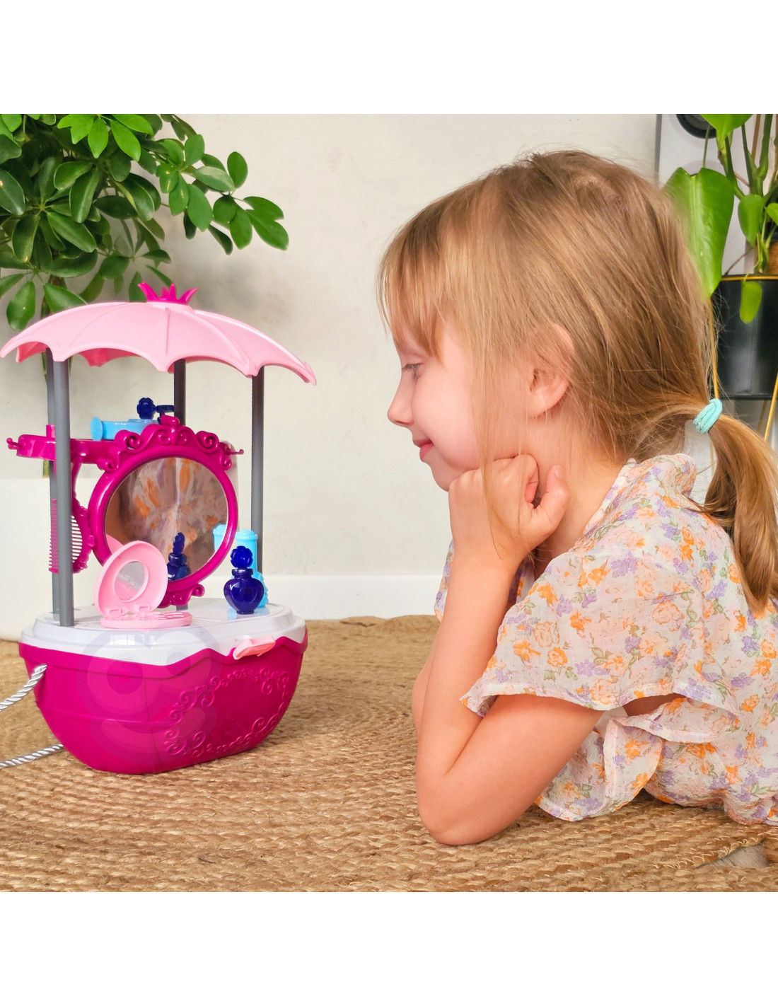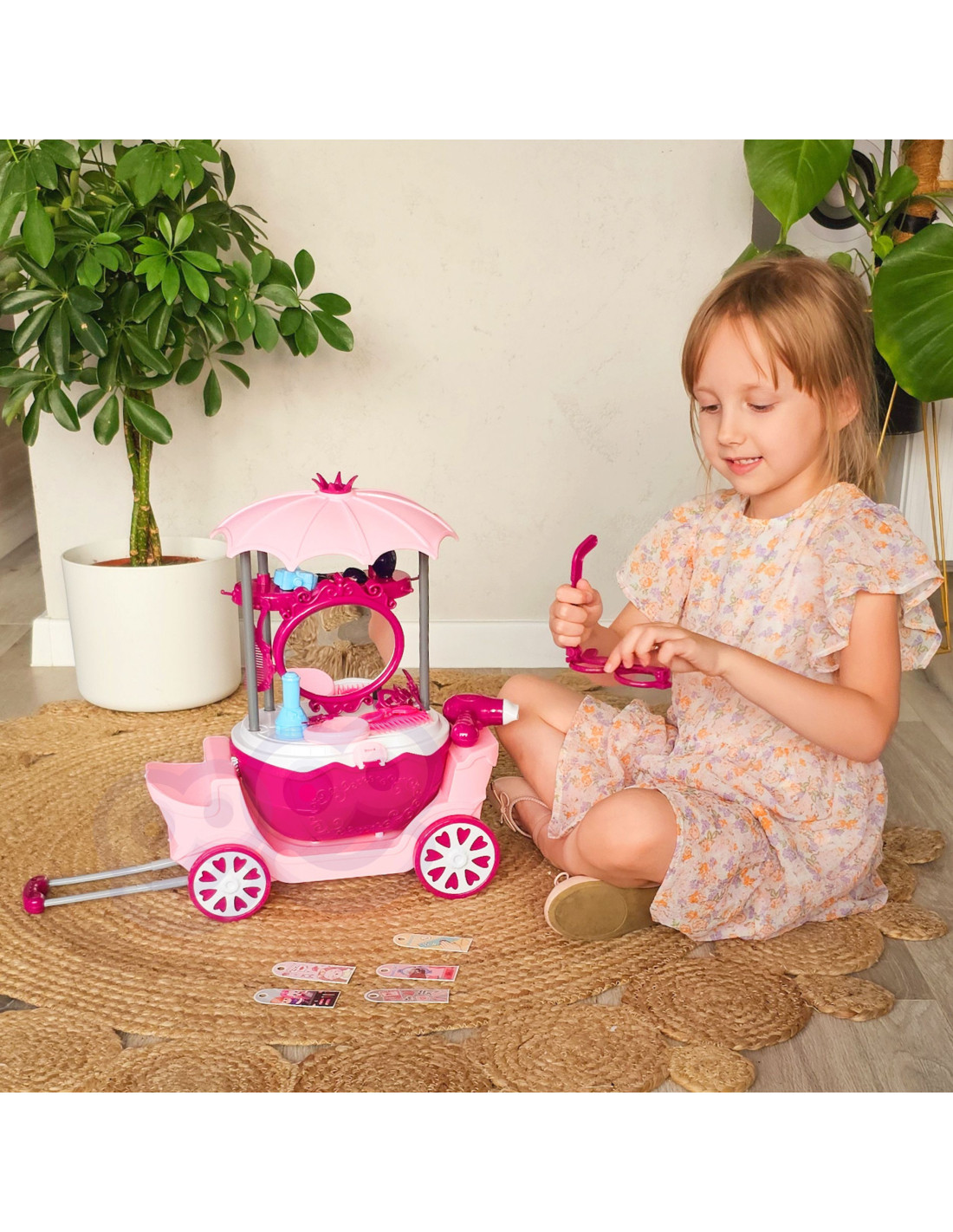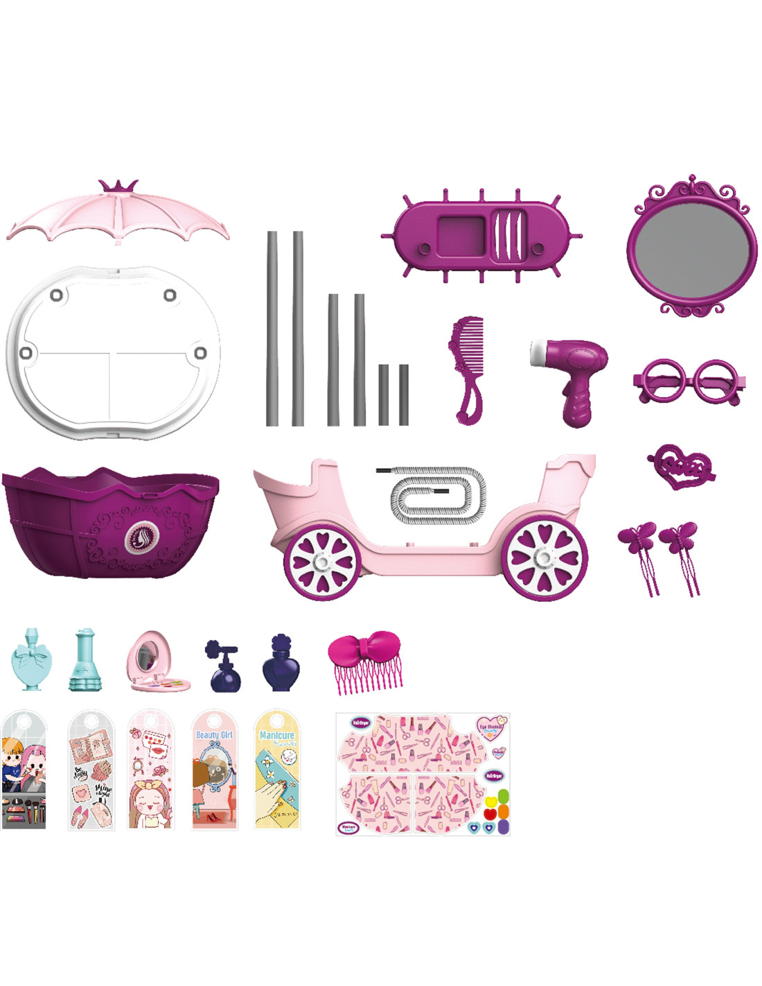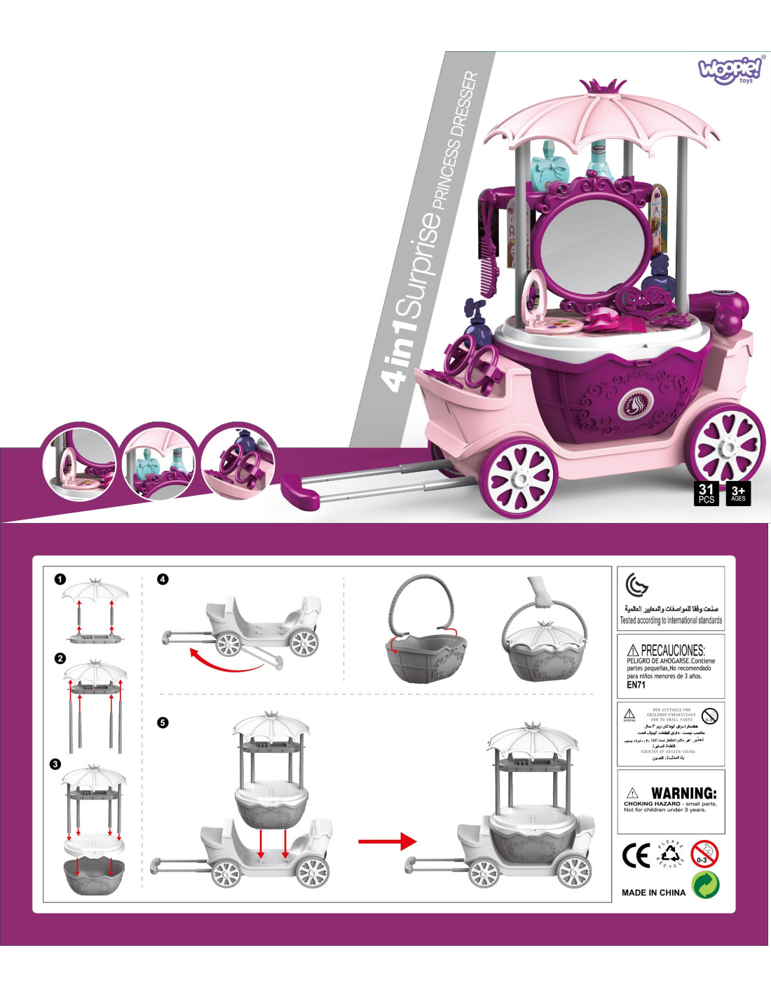 Salon piękności - toaletka w Walizce 4w1 od marki WOOPIE to nieograniczona okazja do zabawy w małą makijażystkę. Dziecko dzięki temu zestawowi może uruchomić swój własne przenośne studio makijażu i tworzyć w nim niesamowite fryzury oraz makijaże. W tej zabawce główną rolę odgrywa wyobraźnia i kreatywność - dziecko może dowolnie aranżować swój salon i obsługiwać klientów. Elementy składające się na zestaw są solidne i wykonane z dobrej jakości materiałów, co gwarantuje długotrwałą i bezpieczną zabawę. Studio może być inspiracją dla dzieci, by naśladować dorosłych i zdobywać umiejętności interpersonalne. Zabawka pomaga w rozwijaniu małej motoryki oraz wyobraźni i kreatywności dziecka.