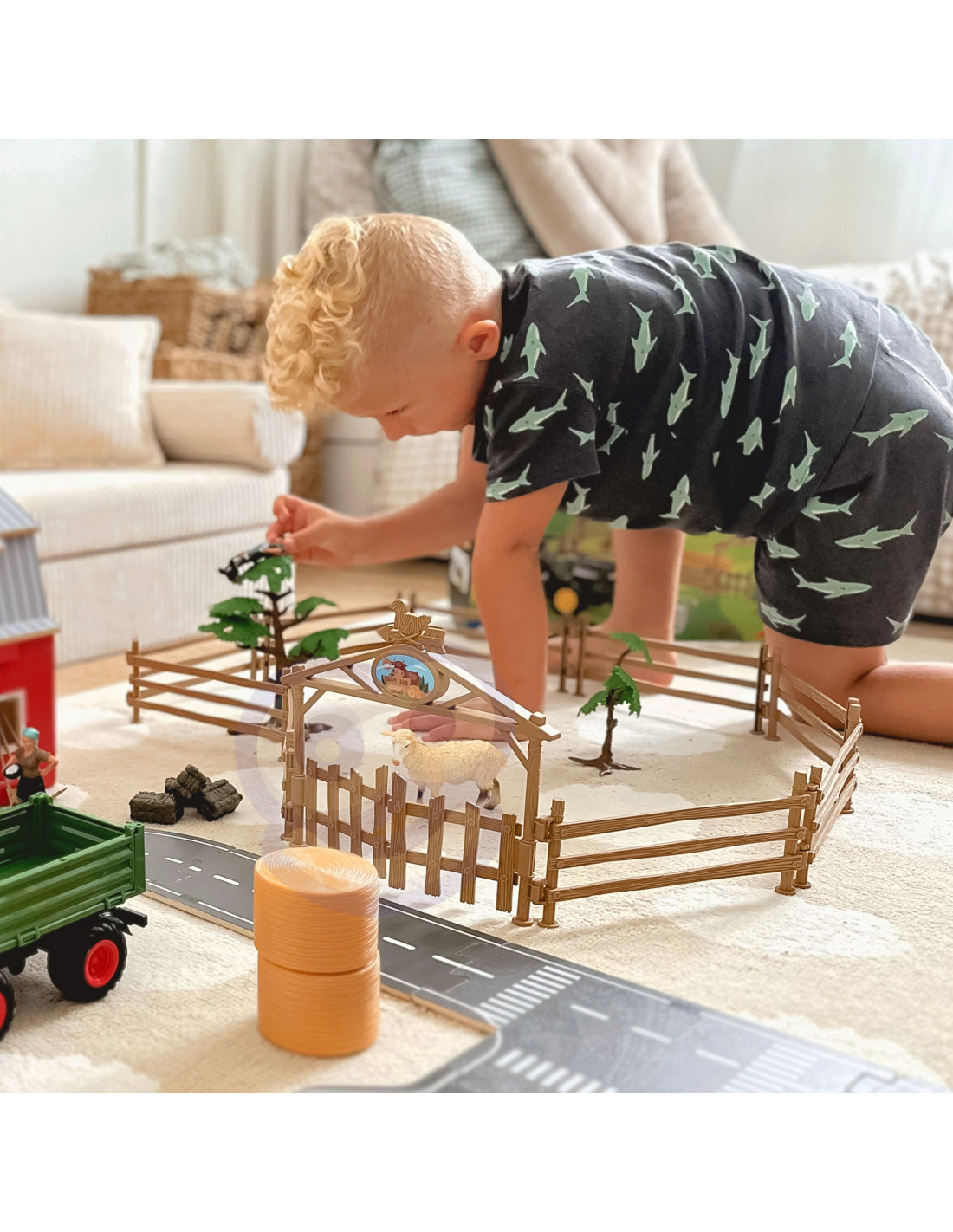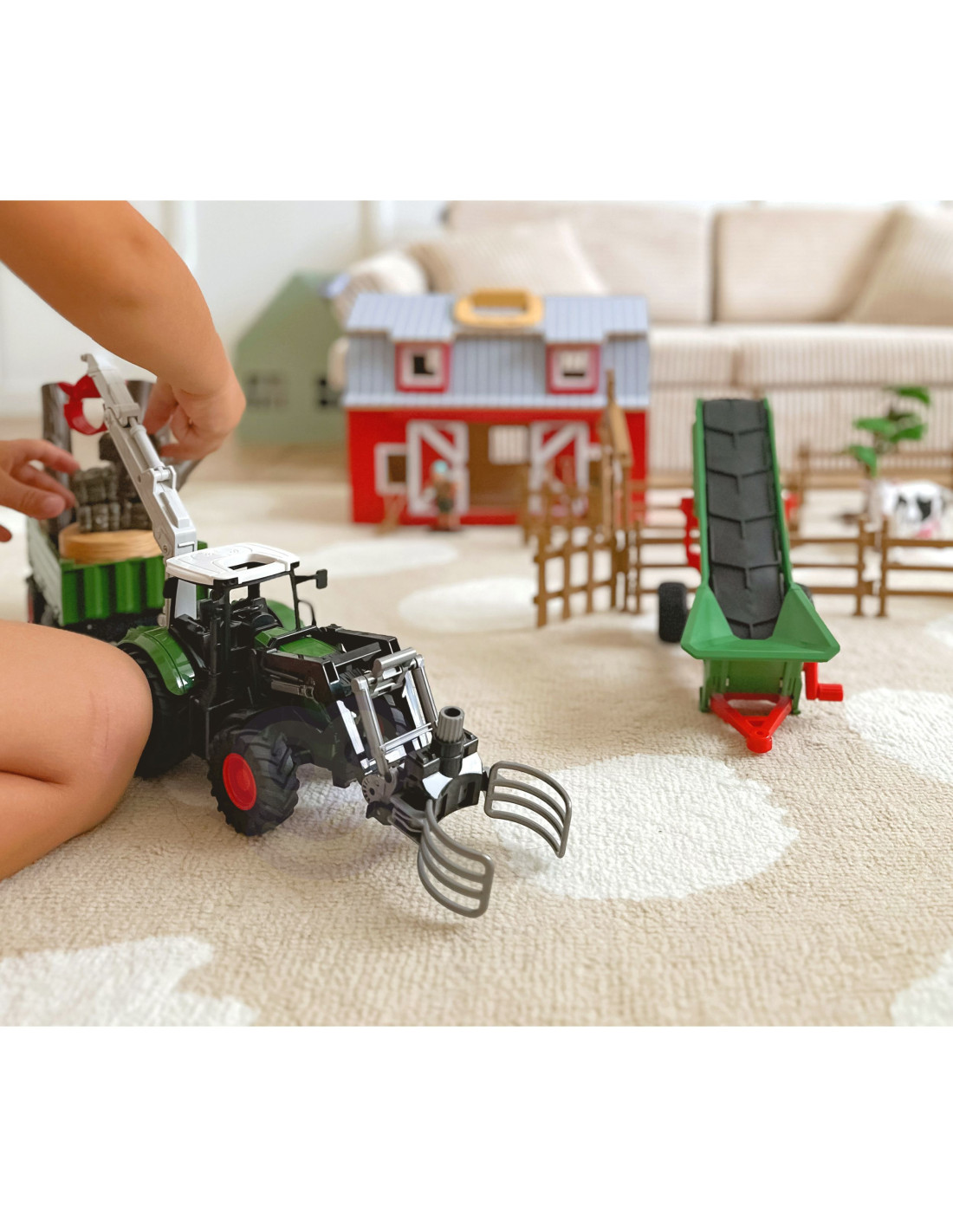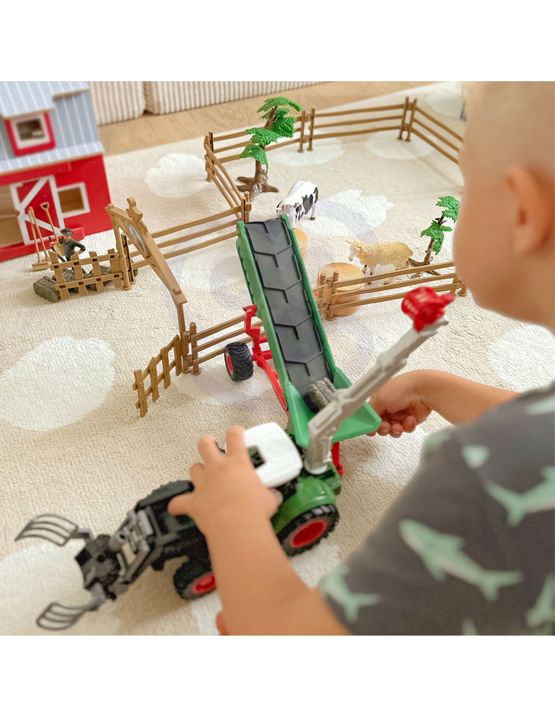 Zapraszamy do świata wiejskiej przygody z najlepszym zestawem do zabawy w gospodarstwo rolne od marki Woopie! Ten realistyczny, wykonany z dbałością o każdy szczegół produkt zachwyci nie tylko Twoje dziecko, ale całą rodzinę. Jeśli maluch fascynuje się życiem na wsi i potężnymi maszynami rolniczymi, ten zestaw pozwoli mu stworzyć własne, tętniące życiem gospodarstwo. Gdy tylko zagroda zostanie zbudowana, zaczyna się prawdziwa zabawa, ograniczona jedynie wyobraźnią Twojego dziecka! Centralnym punktem zestawu jest traktor z przyczepą – absolutnie niezbędny w każdym gospodarstwie. Podczepiana na hak przyczepa podnosi się i ma otwierane boczne oraz tylną burtę, co ułatwia wysypanie załadunku. Transportowanie ciężarów będzie teraz łatwe i przyjemne! Zestaw wzbogacają dodatkowe maszyny rolnicze z ruchomymi elementami, dzięki którym dziecko poczuje się jak prawdziwy farmer, sprawnie zarządzający pracami polowymi. Realizmu zabawie dodają dołączone figurki gospodarzy, narzędzia oraz urocze zwierzęta gospodarskie. To doskonałe połączenie fantastycznej zabawy z nauką, a także świetna okazja do spędzenia czasu z rodzicami, rówieśnikami czy rodzeństwem.Traktor z przyczepą został doskonale odwzorowany, wiernie odzwierciedlając prawdziwą maszynę rolniczą. Cały zestaw został wykonany z dbałością o każdy szczegół, na wzór prawdziwych maszyn pracujących w gospodarstwach rolnych. Dzięki temu zabawa jest niezwykle realistyczna i pozwala zdobywać wiedzę o życiu na wsi.