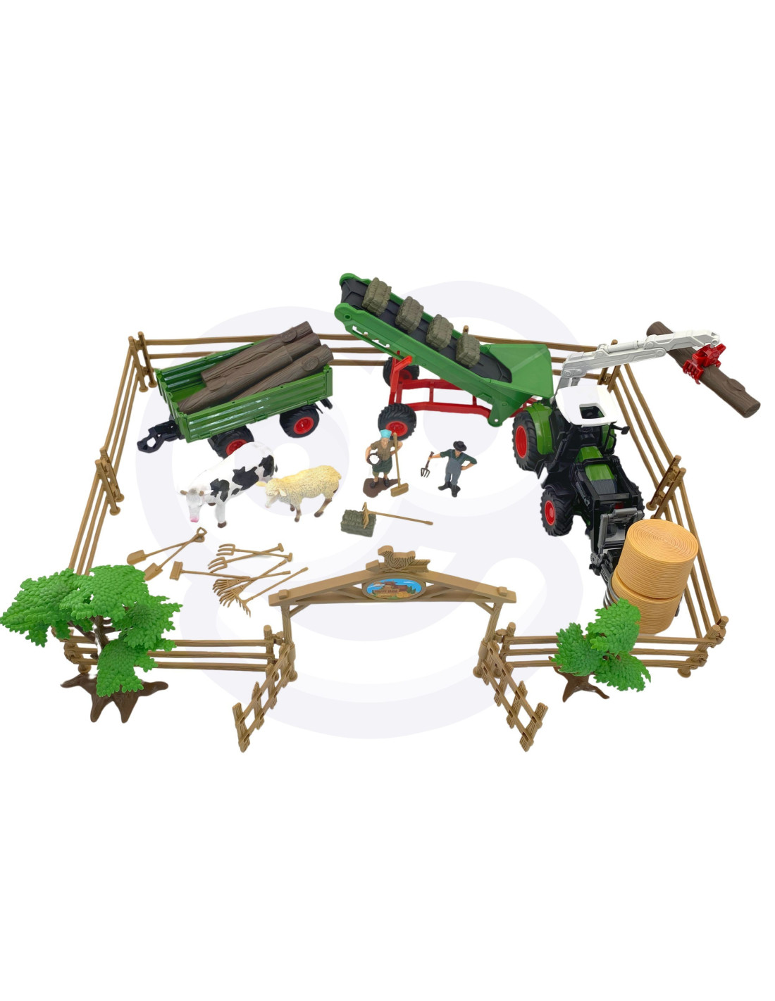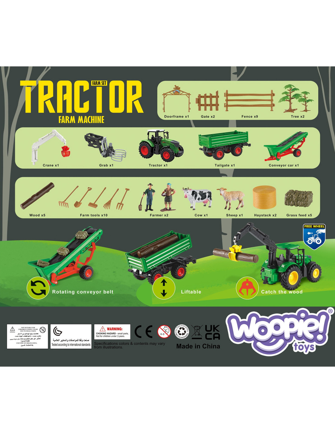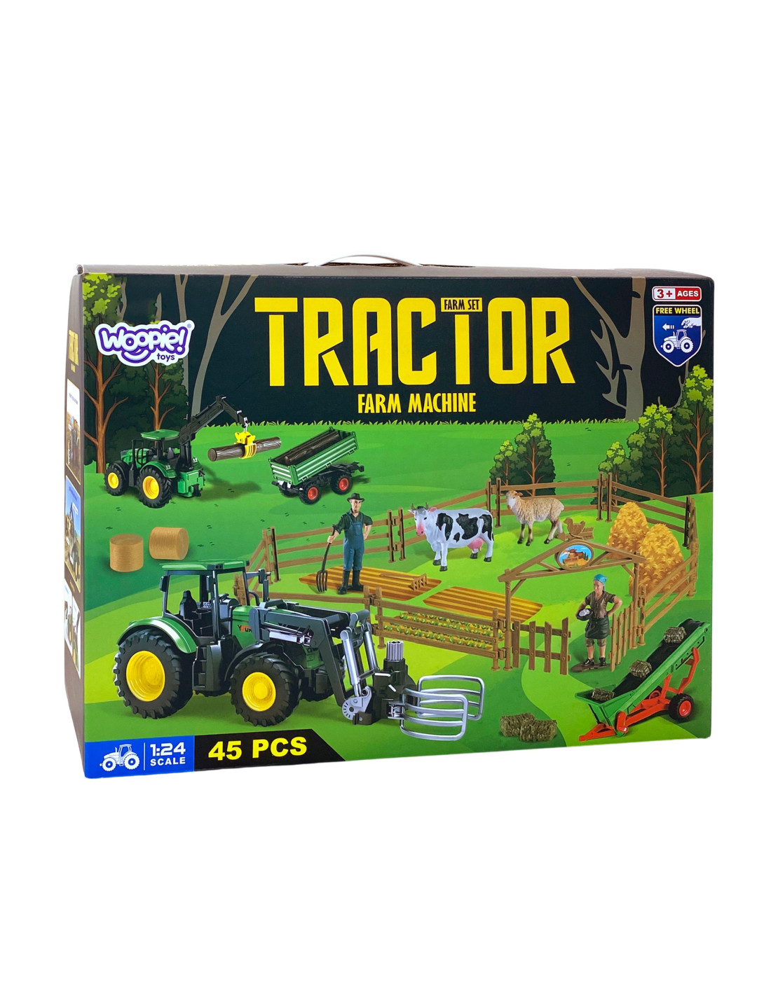 WOOPIE Zestaw Maszyn Rolniczych Traktor Ciągnik Zagroda Mini Farma Osada Rolnicy Skala: 1:24