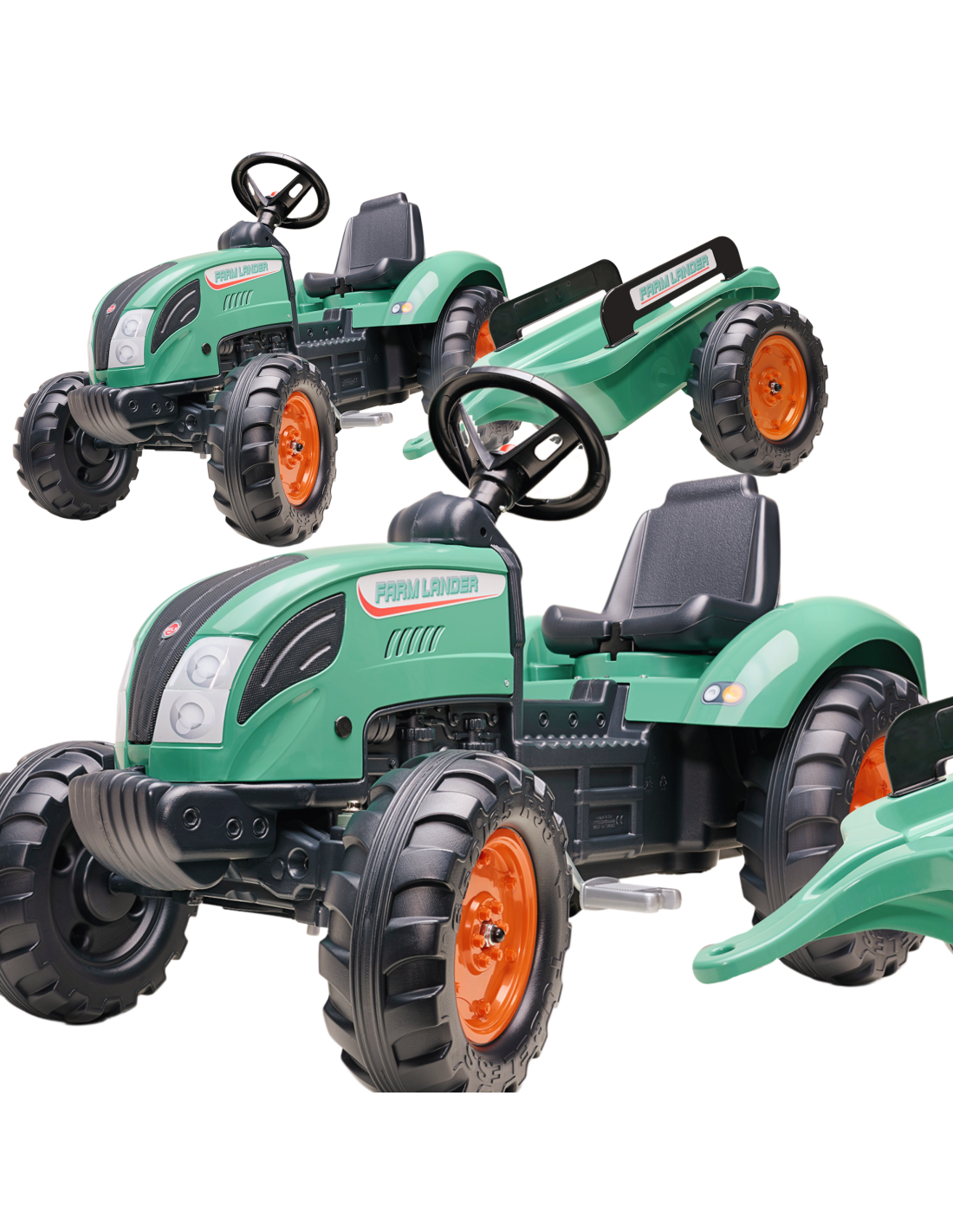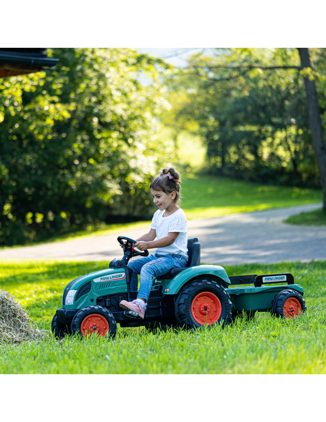 Traktor na pedały z przyczepą Landerto spełnienie marzeń niejednego małego traktorzysty. Starannie wykonany, z dbałością o najmniejszy szczegół! Żaden Farmer by takim nie pogardził. Pojazd wykonany z najwyższej jakości tworzywa. Przeznaczony dla dzieci w wieku od 3 lat. Pojazd jest wyposażony odpinaną przyczepę z panelami oraz kierownicę z klaksonem. Koła traktorka zostały wykonane z wysokiej jakości plastiku.