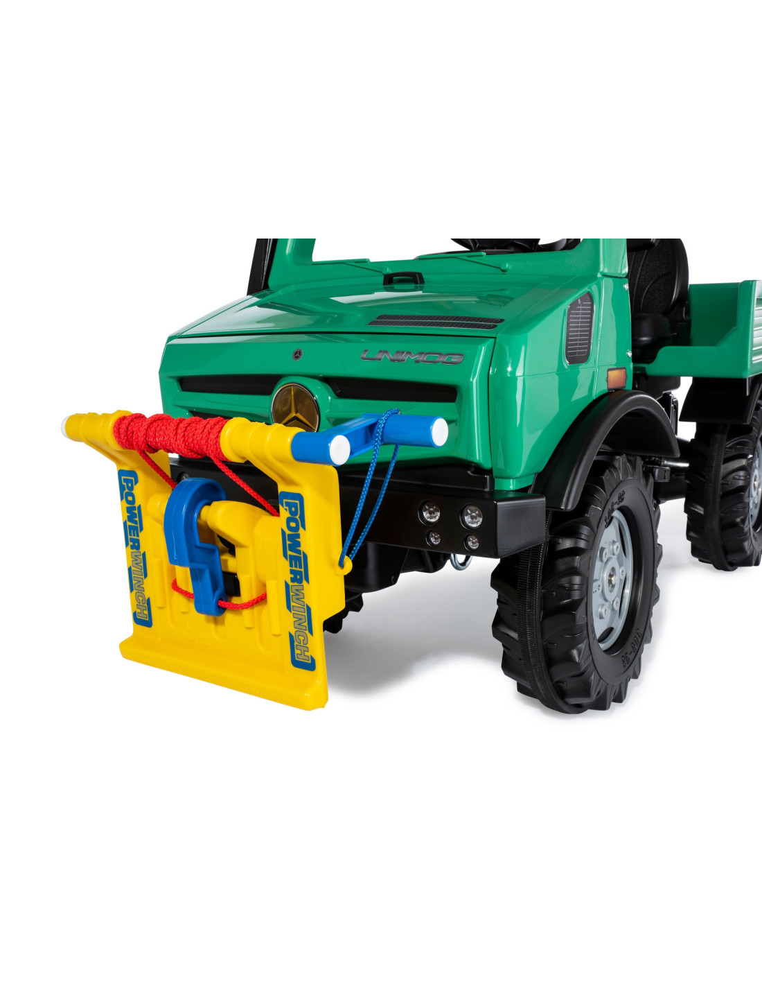 Samochód terenowy z linką holowniczą RollyUnimog Forst na licencji Mercedes-Benz to najwyższej jakości oryginalny, niemiecki produkt, który posłuży Twoim dzieciom przez wiele lat. Duży, zielony wóz z linką i hakiem holowniczym, to świetny prezent dla dzieci od 3 roku życia. Auto nada się idealnie dla młodych poszukiwaczy przygód, zapewniając im bezpieczną zabawę w z nieskończoną ilością scenariuszy! Zielony terenowy mercedes posiada wygodny, regulowany fotel dzięki któremu autko rośnie razem z maluchem. Dodatkowo Cały układ mechaniczny jest starannie zabudowany, co gwarantuje, że dziecko nie ma do niego dostępu, zapewniając pełne bezpieczeństwo podczas zabawy. Jedną z wyróżniających cech rollyUnimog Forest jest funkcjonalna wyciągarka z korbą. Dzięki temu mali odkrywcy mogą bawić się w symulacje prac leśnych lub ruszyć na pomoc potrzebującemu. Korba pozwala dzieciom ciągnąć linę i podnosić przedmioty – to świetny sposób na rozwój małej motoryki. Ciche opony sprawiają że zabawka nie generuje niepotrzebnego głośnego hałasu podczas używania.