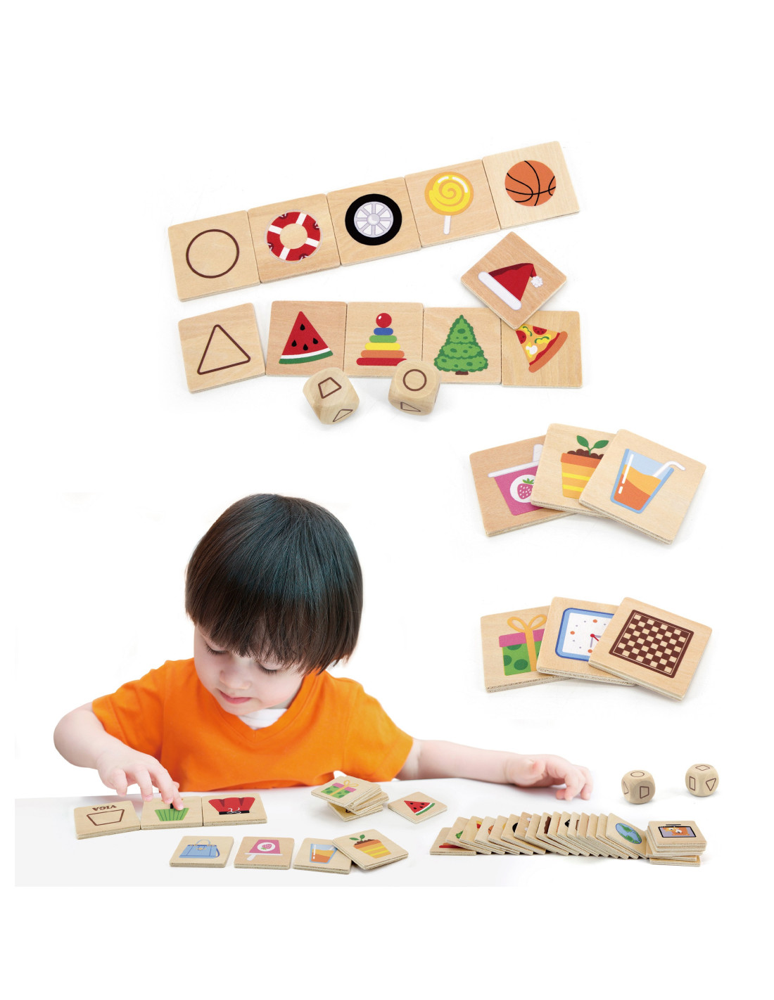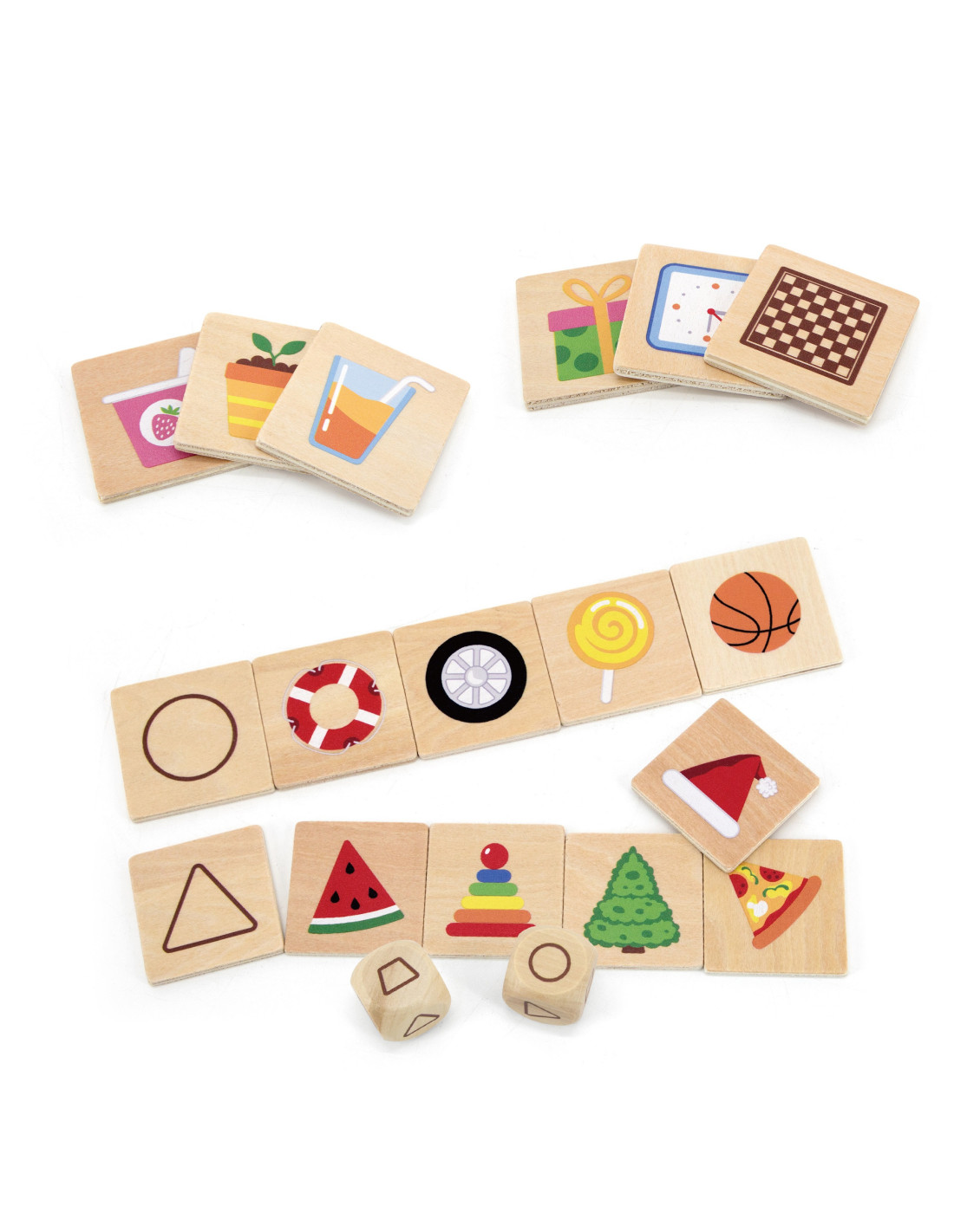 Drewniana układanka do nauki i sortowania kształtów. Zadaniem dziecka jest przyporządkować przedmioty do wybranych kształtów. Obrazki przedstawiają wiele przedmiotów codziennego użytku tj. doniczka, kawałek pizzy. Dziecko spoglądając na doniczkę ujrzy w niej kształt trapezu, natomiast kawałek pizzy będzie trójkątem. Całość wykonana jest z drewna i pomalowana nietoksycznymi farbami. W dołączonej instrukcji propozycje wariantów dla jednej osoby jak i kilku osób oraz w zróżnicowanym poziomie trudności.