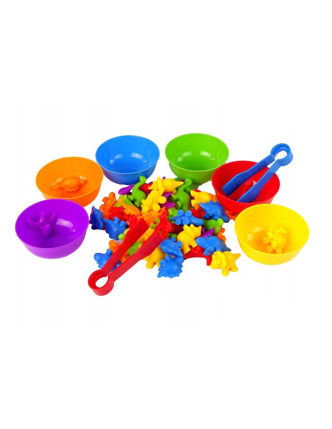Zabawka Edukacyjna Sorter Dinozaury od marki WOOPIE to prosta, ale skuteczna pomoc w nauce i zabawie. Gra polega na wysypaniu wszystkich figurek na środek, a następnie za pomocą szczypczyków przeniesienie każdego elementu do odpowiedniej miseczki. Dodatkowo zabawka ma wiele edukacyjnych możliwości wykorzystania. Poza nauką kolorów, figurki można użyć, również do nauki liczenia. Zestawem mogą bawić się jednocześnie dwoje dzieci i uczyć się dzielenia oraz współpracy lub rywalizacji na czas. Zestaw jest super alternatywą dla standardowego sposobu uczenia - nauka przez zabawę!
