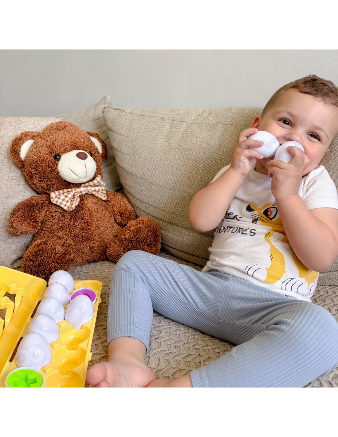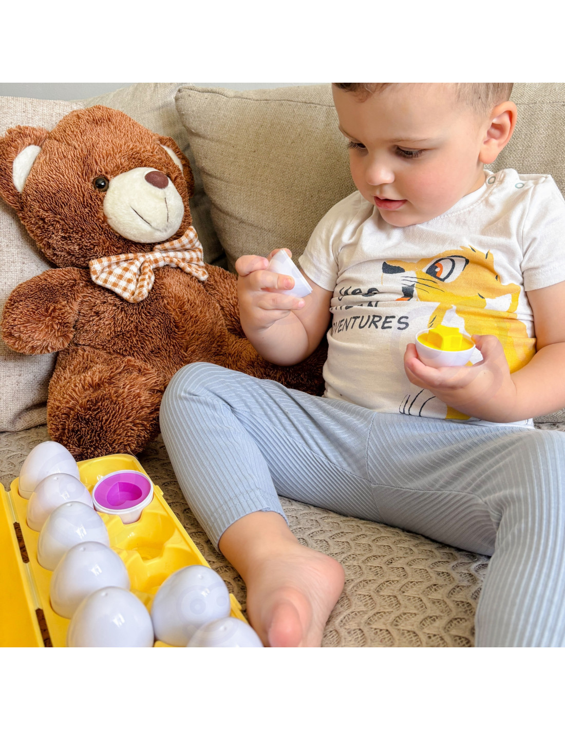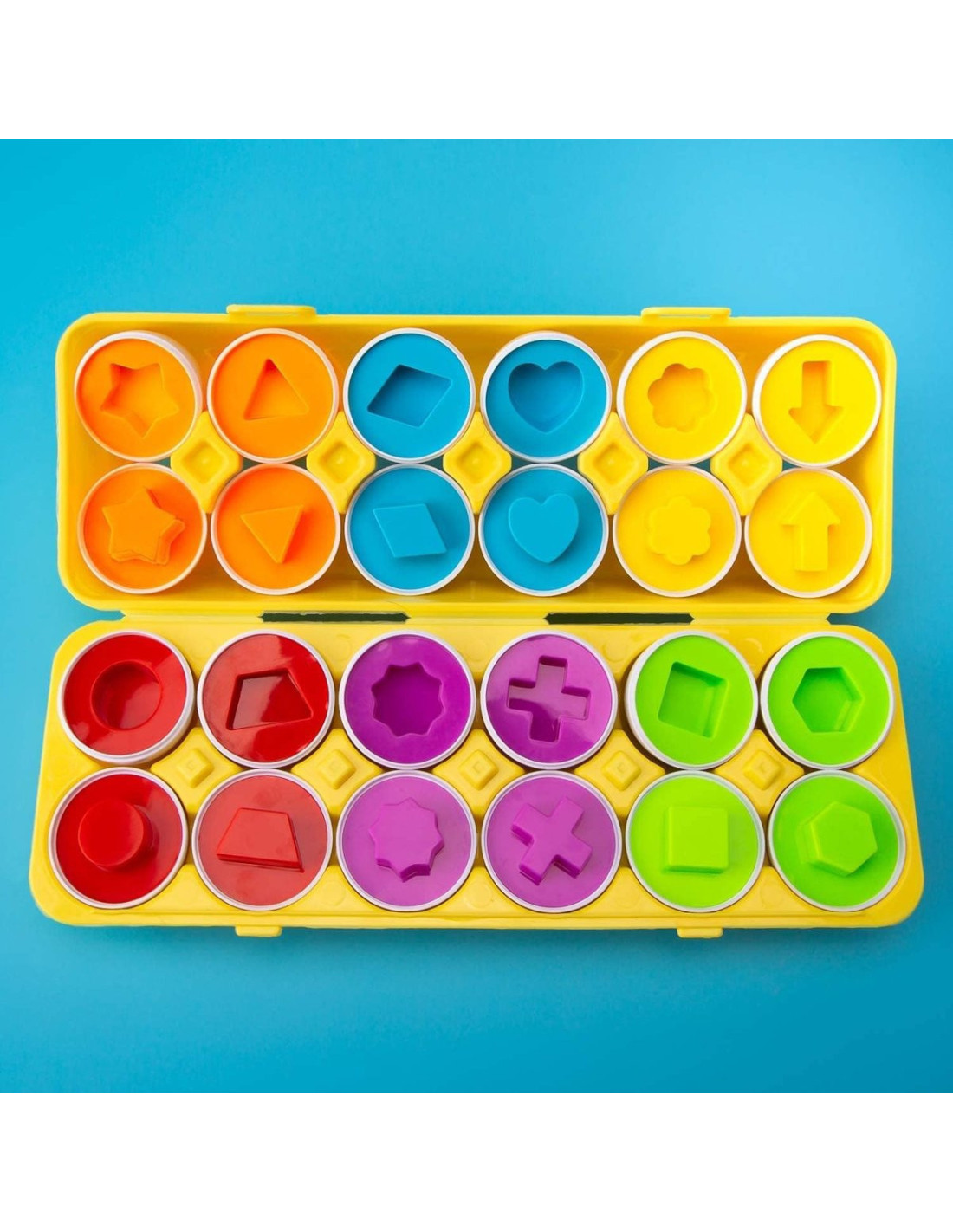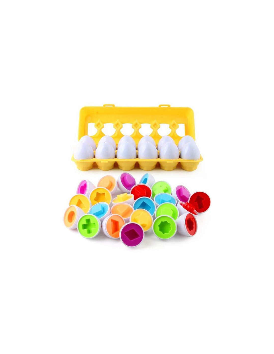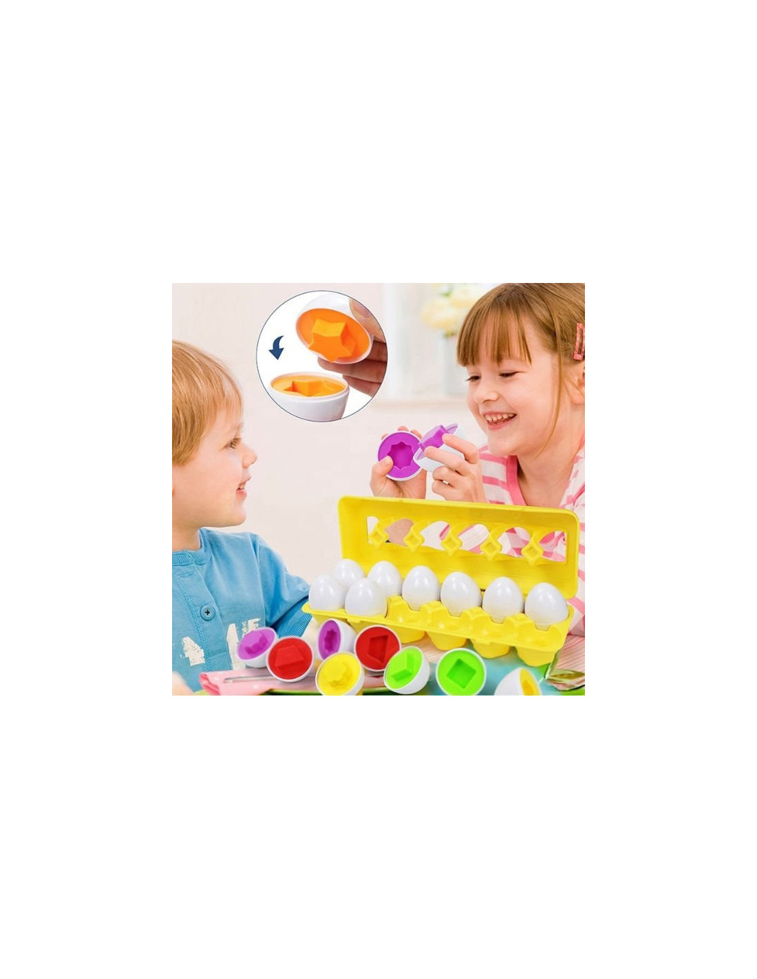 Jajka Montessori od marki WOOPIE to edukacyjna zabawka rozwijająca motorykę i koordynacje wzrokowo-ruchową dziecka. Zestaw zawiera 12 białych jajek w wytłoczce, które zachęcą do zabawy poprzez swoje kolorowe wnętrze w różnych kształtach. Zabawa polega na dopasowaniu ze sobą dwóch połówek jaj, tak aby utworzyły całość. Jajka należy dopasować zarówno kolorem jak i kształtem.