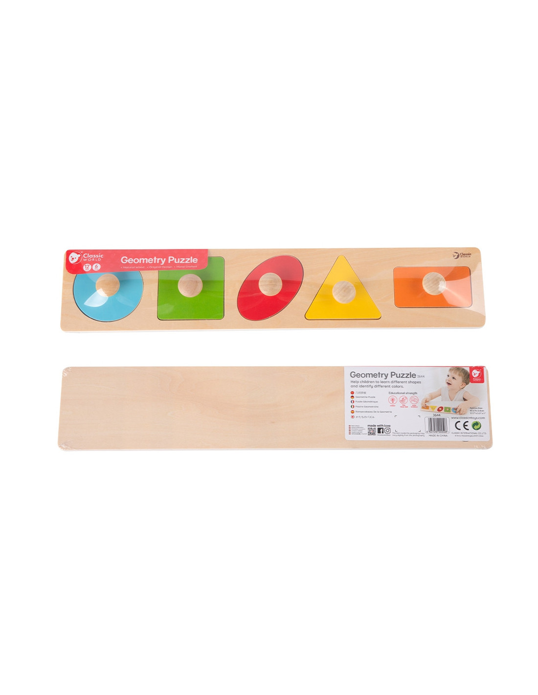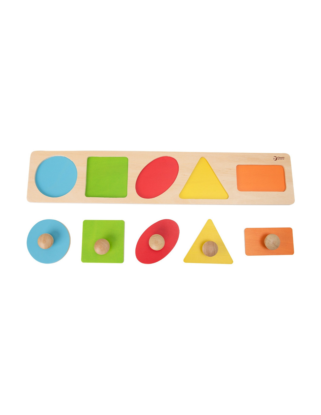 Drewniane Puzzle z pinezkami od Classic World dla dzieci od 12 miesiąca życia to idealne rozwiązanie do domu, jak i do przedszkola. Składa się z planszy oraz 6 elementów tematyczne, które należy do niej zamontować. Na drewnianej podstawce znajdują się wgłębienia, które swoim kształtem odpowiadają kolorowym puzzlom. Całość wykonana została z drewna, pomalowana bezpiecznymi dla dziecka farbami w żywe barwy, które zadowolą każdego użytkownika i dadzą mnóstwo radości z zabawy.