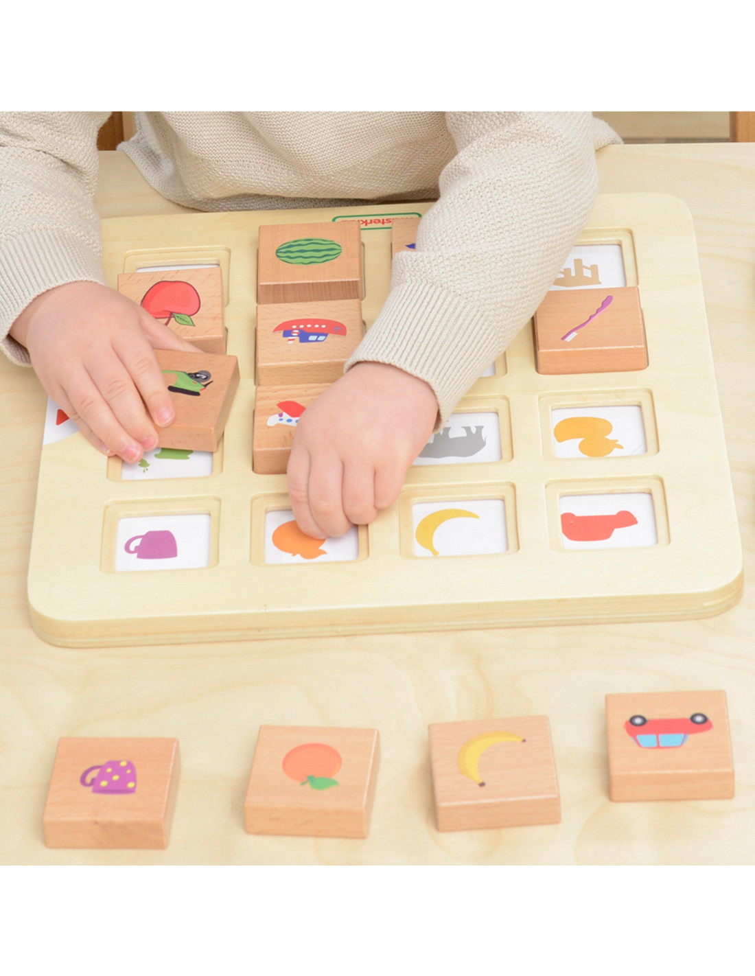 - - Trzy poziomy trudności dzięki wymiennym kartom: identyczne ilustracje, kolorowe sylwetki i czarne sylwetki.