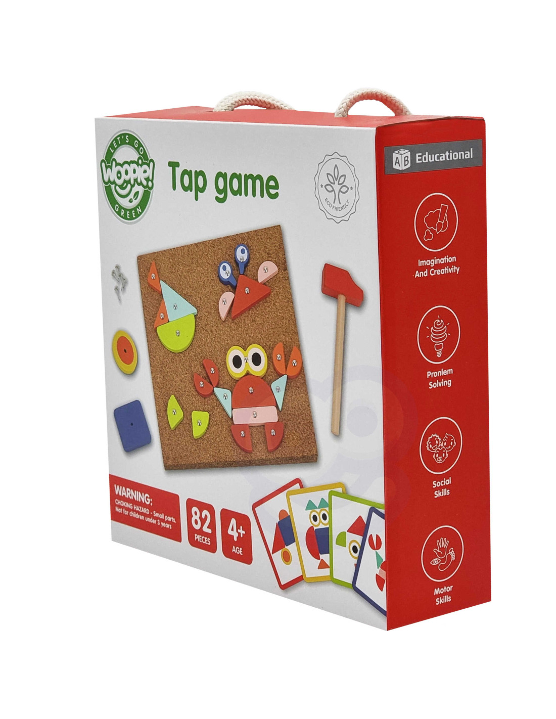 Przybijanka korkowa od marki WOOPIE z serii GREEN to idealna zabawka edukacyjna dla małego konstruktora. Dzieci mogą odtwarzać wzory z kart lub tworzyć własne układy z kolorowych, drewnianych elementów. Za pomocą młoteczka i pinezek przybijają klocki do korkowej tablicy, tworząc obrazki zwierząt, roślin czy pojazdów. Trzy poziomy trudności pozwalają dostosować zabawę do wieku i umiejętności dziecka. To wspaniała forma nauki przez zabawę – rozwija motorykę, kreatywność i logiczne myślenie!