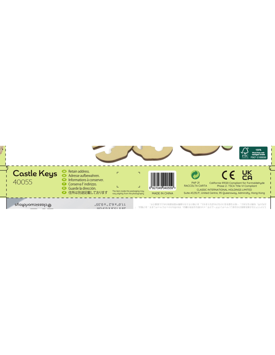 Drewniany Zamek z Kluczami od marki CLASSIC WORLD to sensoryczna układanka dla malucha. Gra polega na dopasowaniu pięciu unikalnych kluczy do pasujących zamków, klucze można również schować do tablicy która posiada miejsce na każdy z kluczy. Doskonały do koordynacji ręka-oko małych dzieci i poznania graficznego.