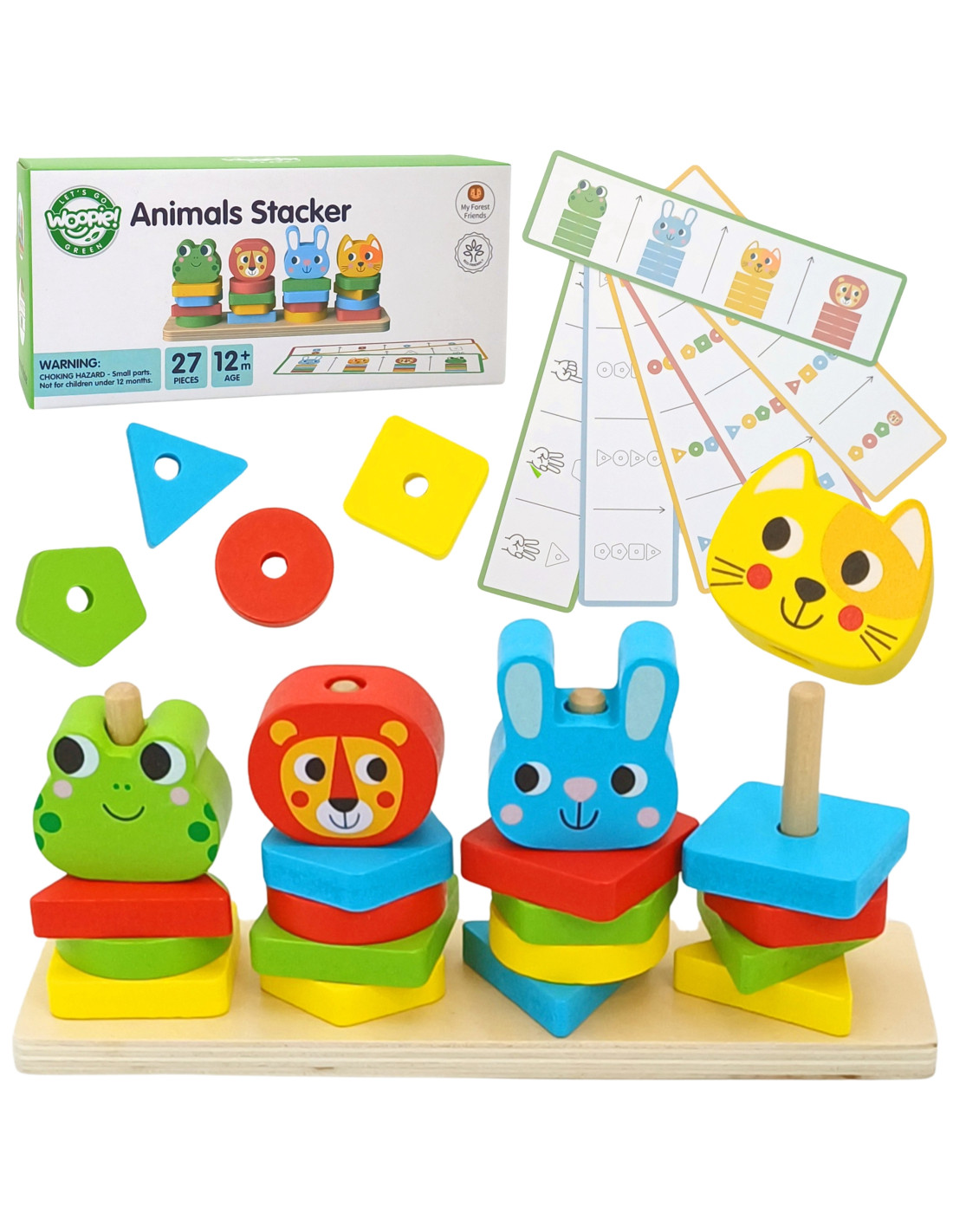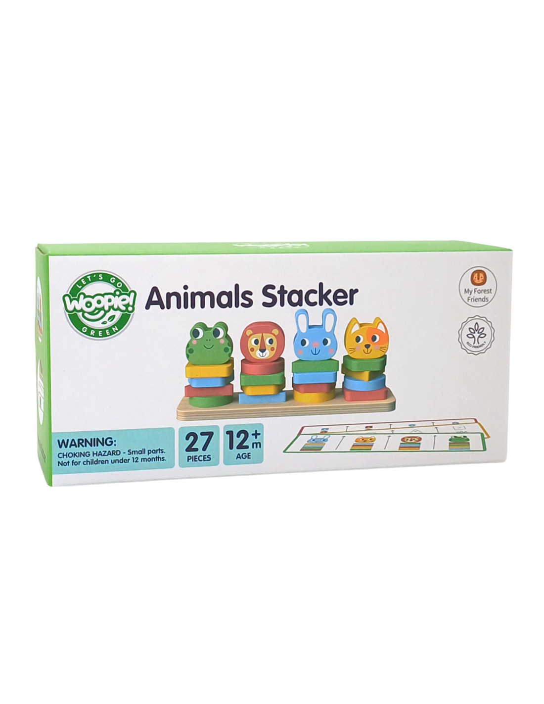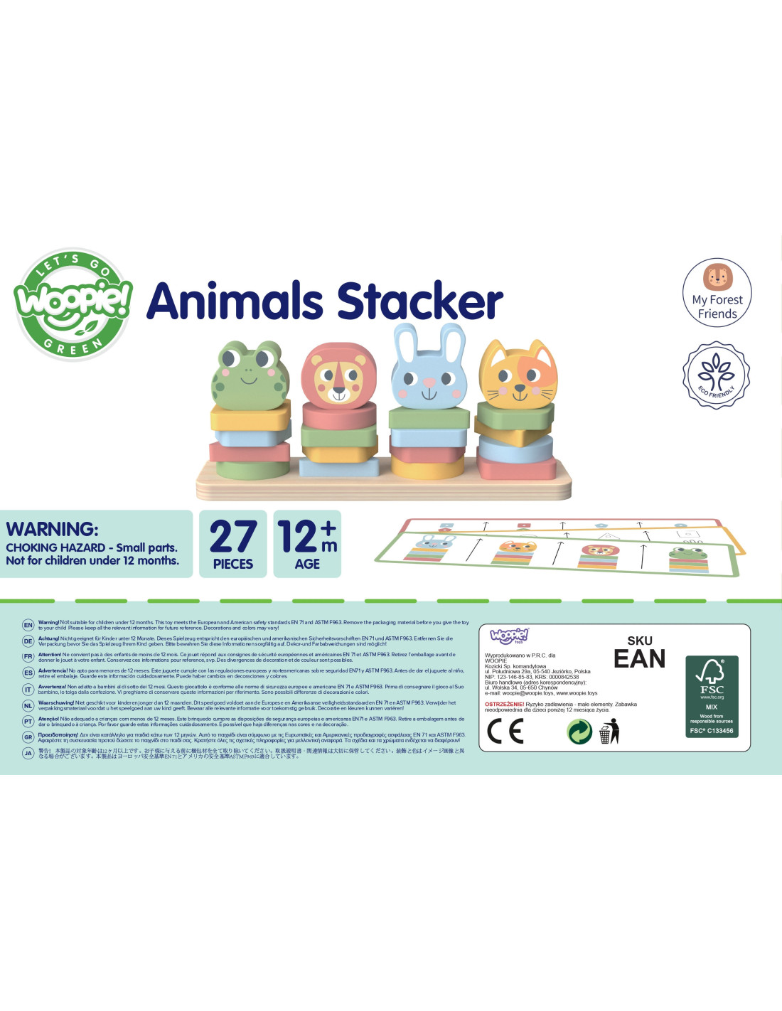 Układanka Montessori od marki WOOPIE z serii GREEN to wyjątkowa, edukacyjna zabawka, która stymuluje wszechstronny rozwój dziecka poprzez kreatywną i angażującą zabawę. W zestawie znajduje się 27 elementów, w tym kolorowe klocki o różnych kształtach oraz urocze figurki zwierzątek, które można układać na różne sposoby, kierując się wzorami z dołączonych kart lub własną wyobraźnią. Zabawę można urozmaicić o grę w zapamiętywanie i odtwarzanie z pamięci obrazka przez malucha. Dziecko może również wymyślić swój własny układ - ogranicza tylko kreatywność i wyobraźnia. Same klocki są doskonałą pomocą do przyszłej nauki kształtów i kolorów. Sorter rozwija zdolności manualne, logiczne myślenie, wyobraźnie i kreatywność, koncentracje oraz zapamiętywanie.