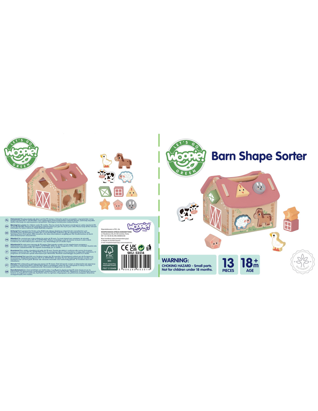 Pastelowy Sorter Farma od marki WOOPIE z serii GREEN to idealna zabawka edukacyjna dla maluchów od 18 miesiąca życia. W wiejskim klimacie zachęca do kreatywnej zabawy, ucząc rozpoznawania kształtów, kolorów i zwierząt. Łączy naukę z radością, rozwijając wyobraźnię, logiczne myślenie i zdolności manualne.