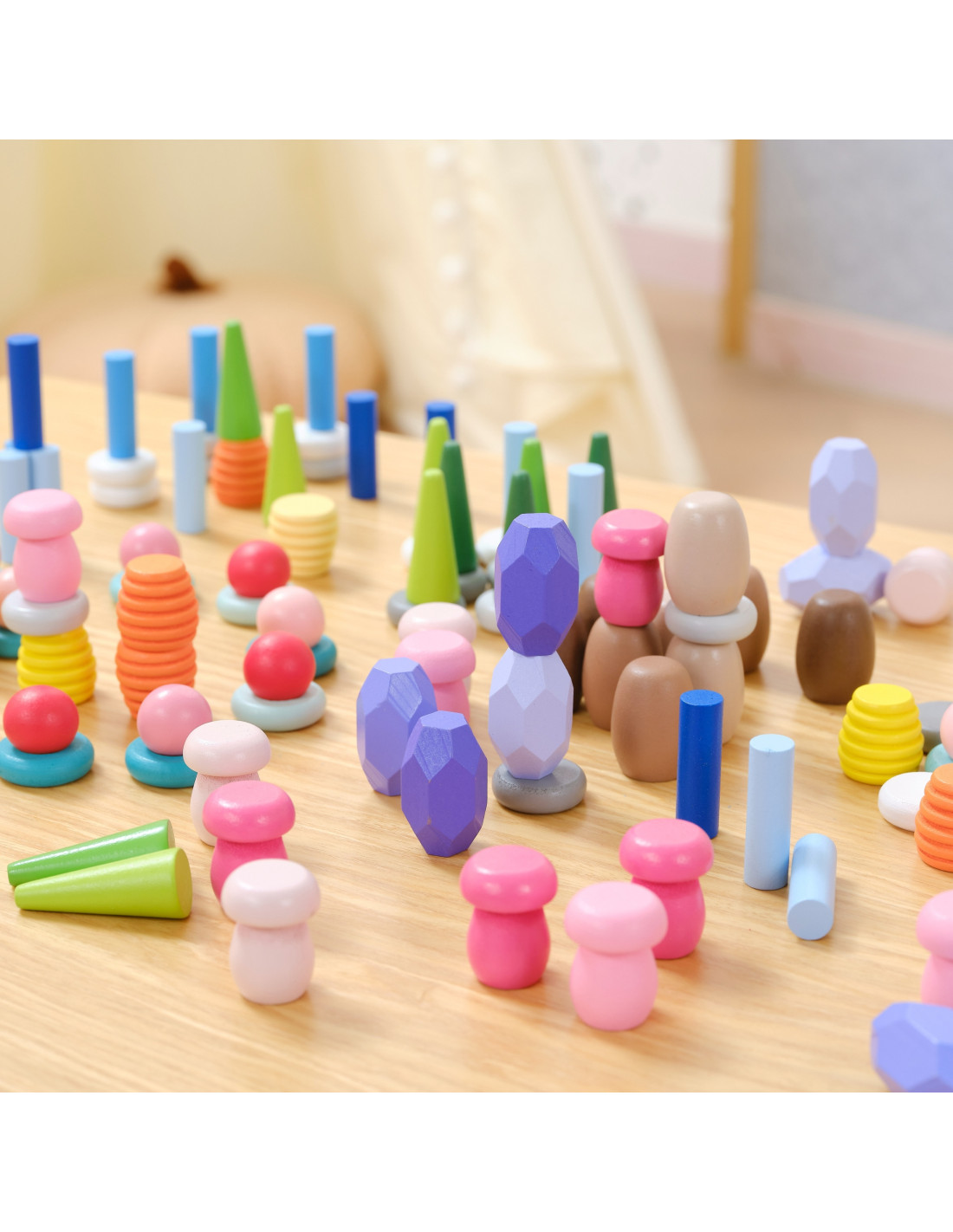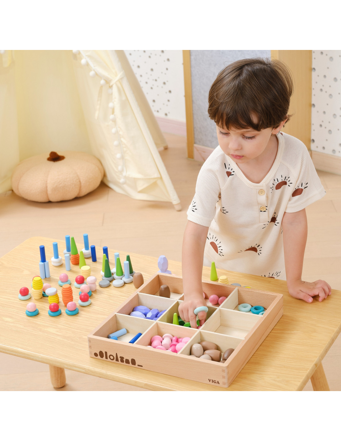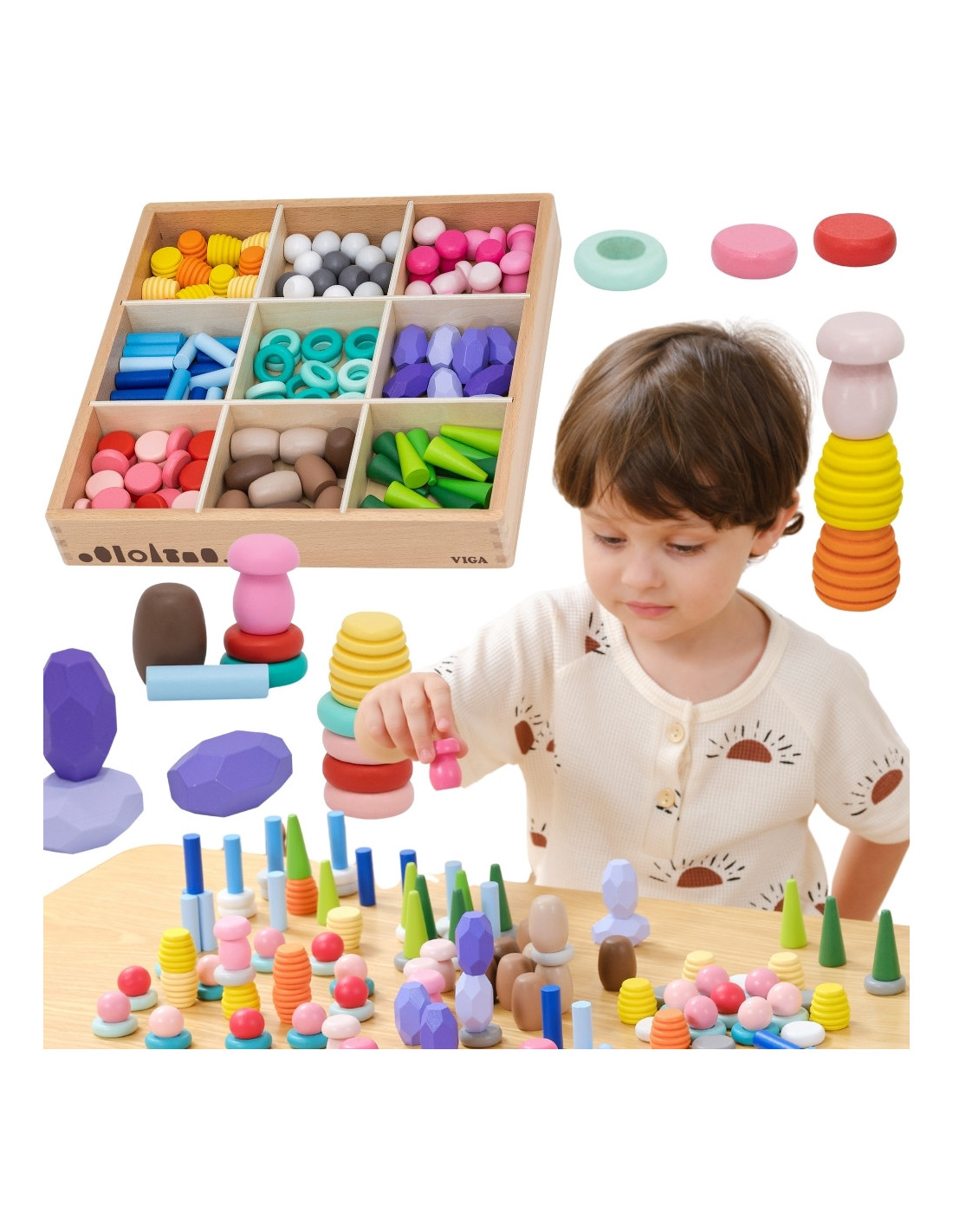 VIGA Klocki Drewniane Edukacyjne Układanka Montesori 141el.