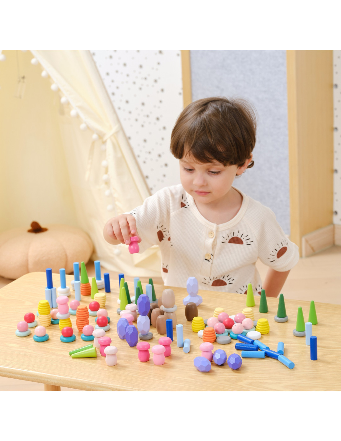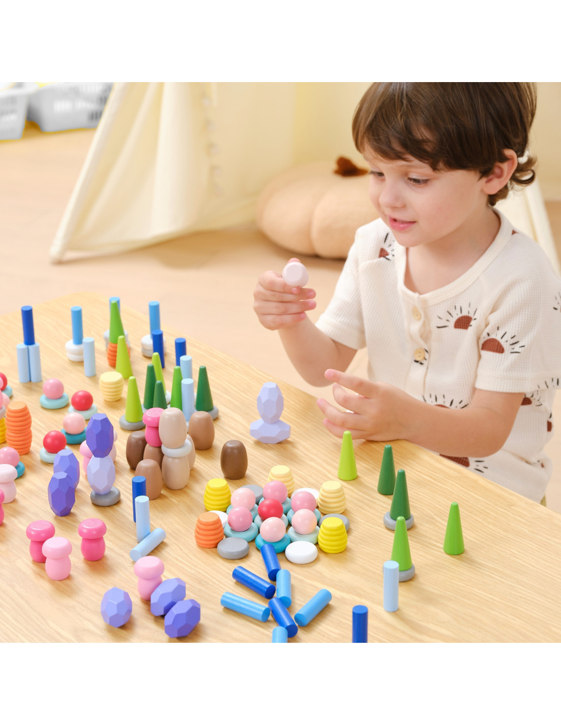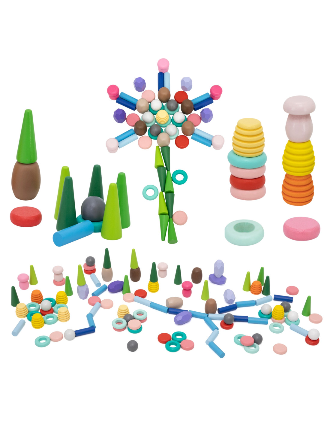 - - 141 elementów inspirowanych naturą – grzyby, plastry miodu, kamienie, stożki, pierścienie