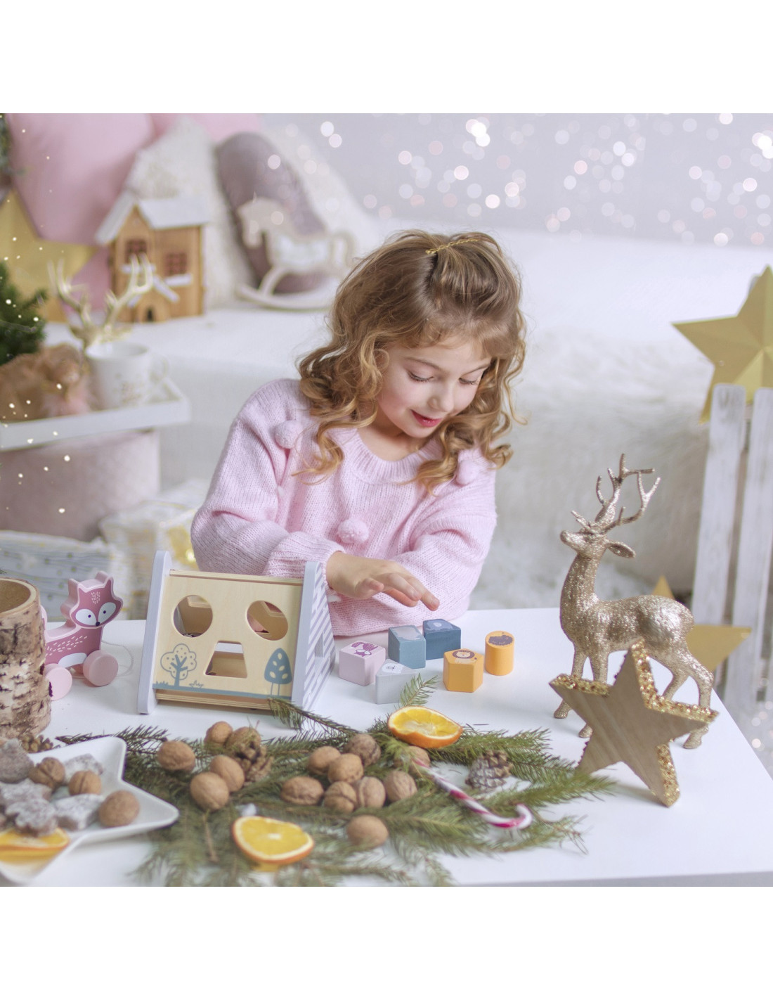 - - całość wykonana została z drewna lakierowanego i pomalowana nie toksycznymi farbami w „polarne” barwy, które zadowolą każdego użytkownika i dadzą mnóstwo radości z zabawy.