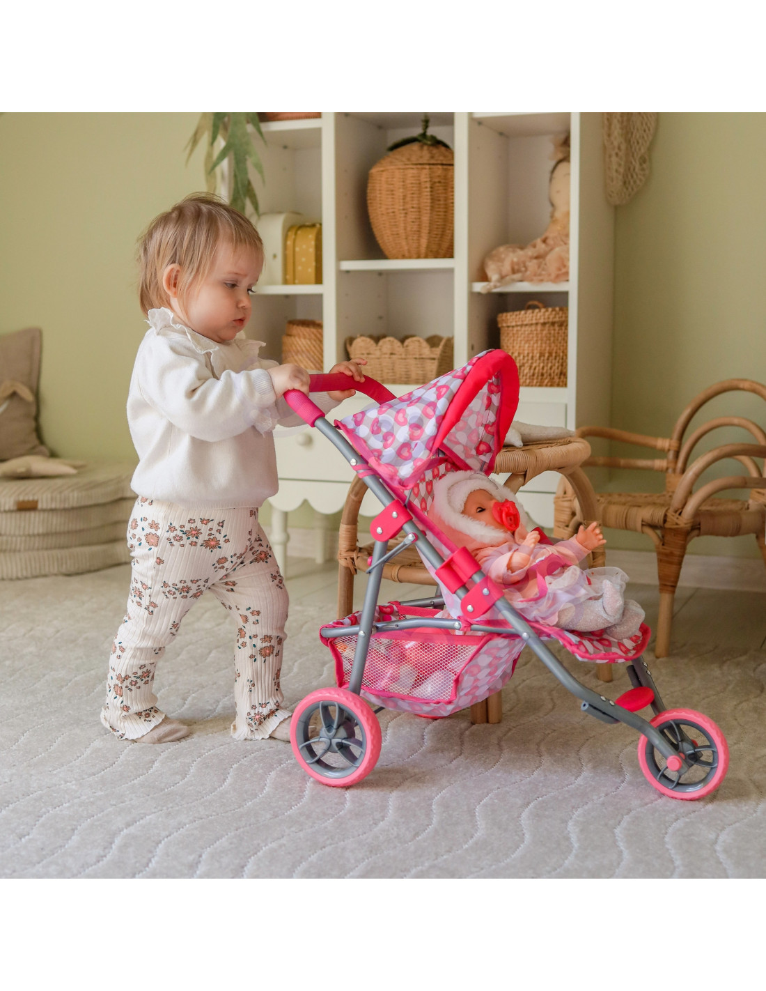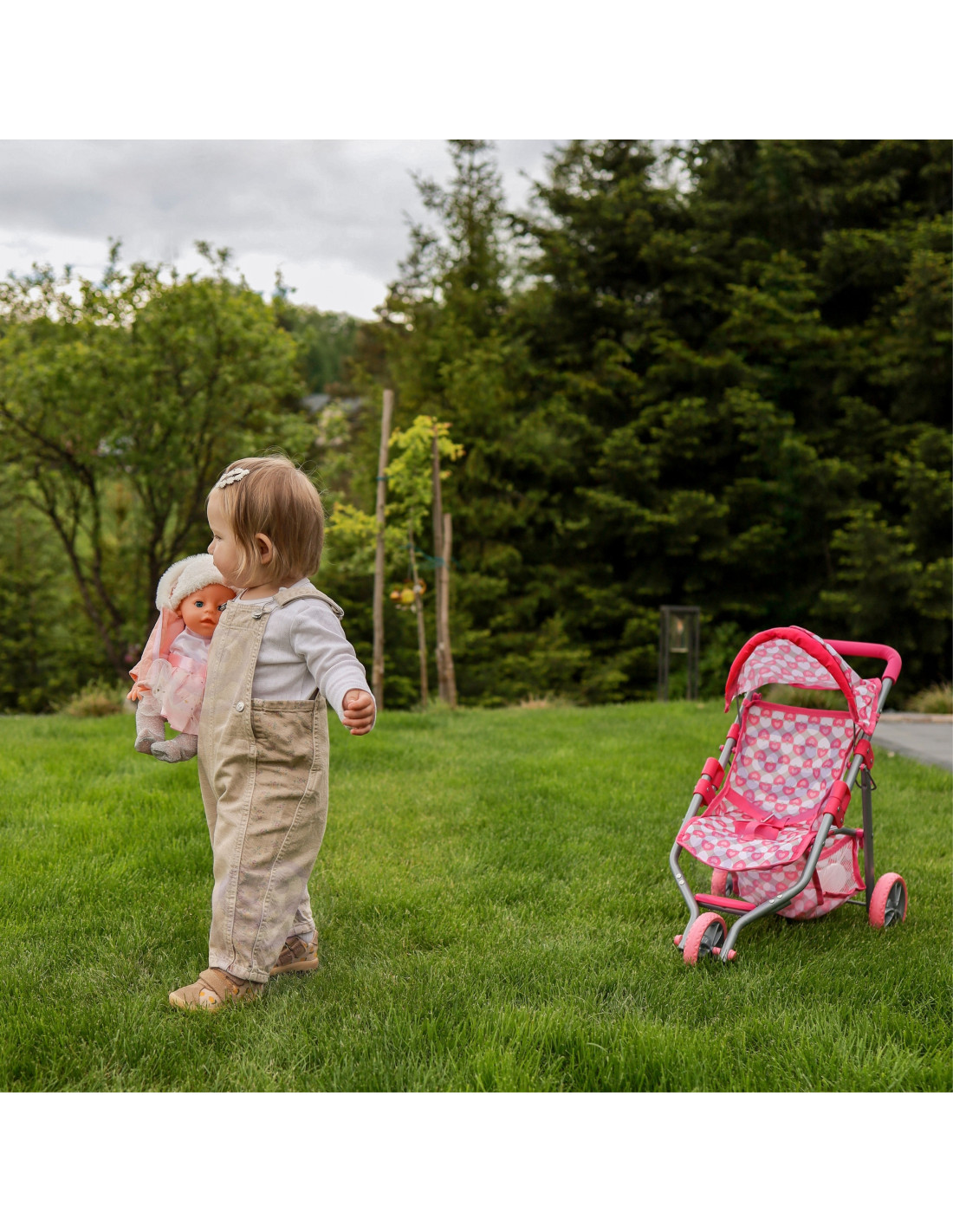 Wózek dla lalek marki Woopie to idealny wybór dla każdej małej miłośniczki zabawy w dom. Wyróżnia się lekką, ale bardzo stabilną ramą, co zapewnia wygodę i bezpieczeństwo podczas użytkowania. Wyposażony w podnóżek, budkę chroniącą przed słońcem, pasy bezpieczeństwa oraz praktyczny koszyk na drobiazgi, gwarantuje pełną funkcjonalność i komfort. Dodatkowo posiada miękką rączkę, która ułatwia prowadzenie, oraz ciche, przyczepne piankowe koła, idealne zarówno do domu, jak i na spacer. Po zakończonej zabawie wózek można łatwo złożyć, co pozwala zaoszczędzić miejsce podczas przechowywania. Stylowy design czyni go wyjątkowym dodatkiem do każdej lalki.