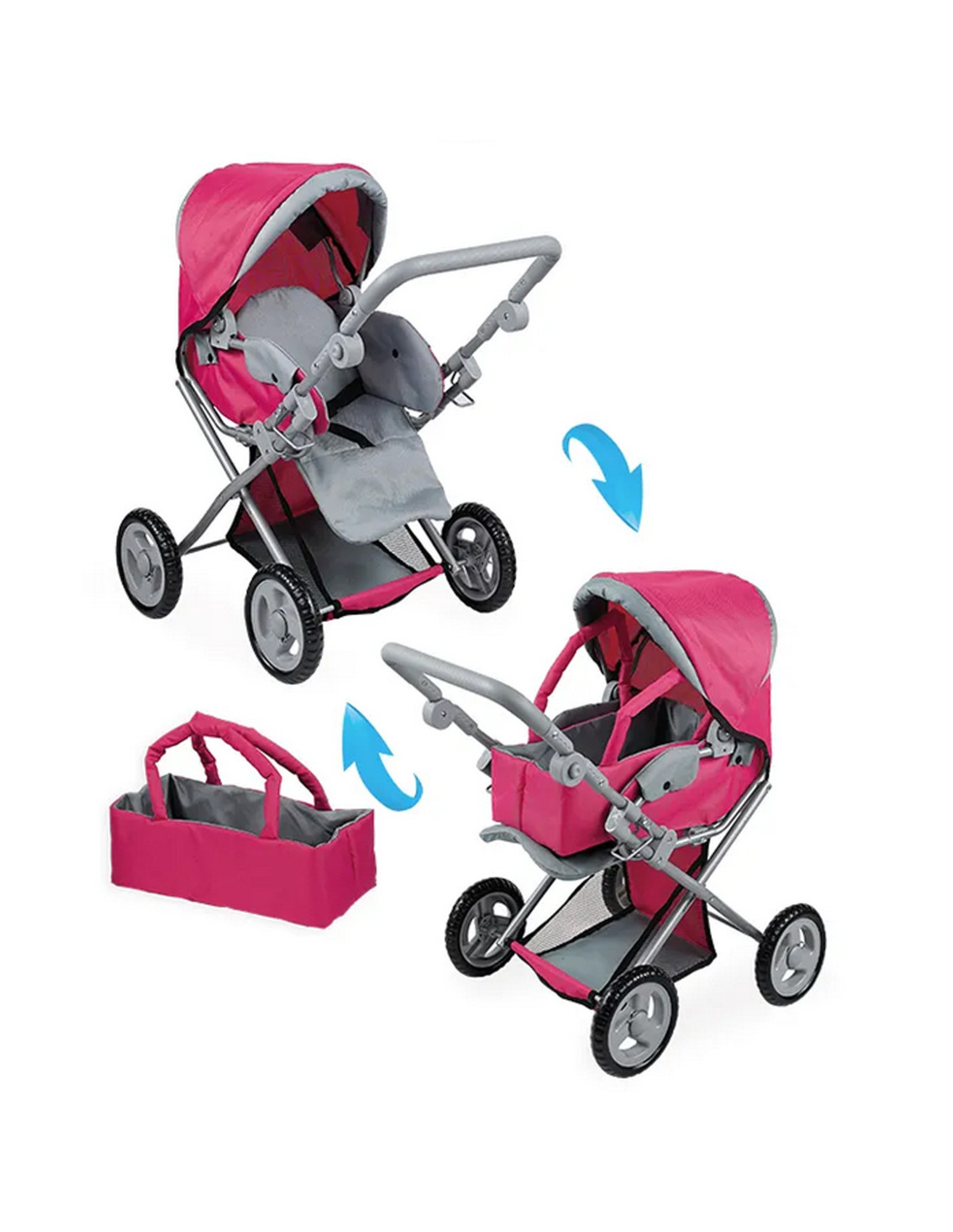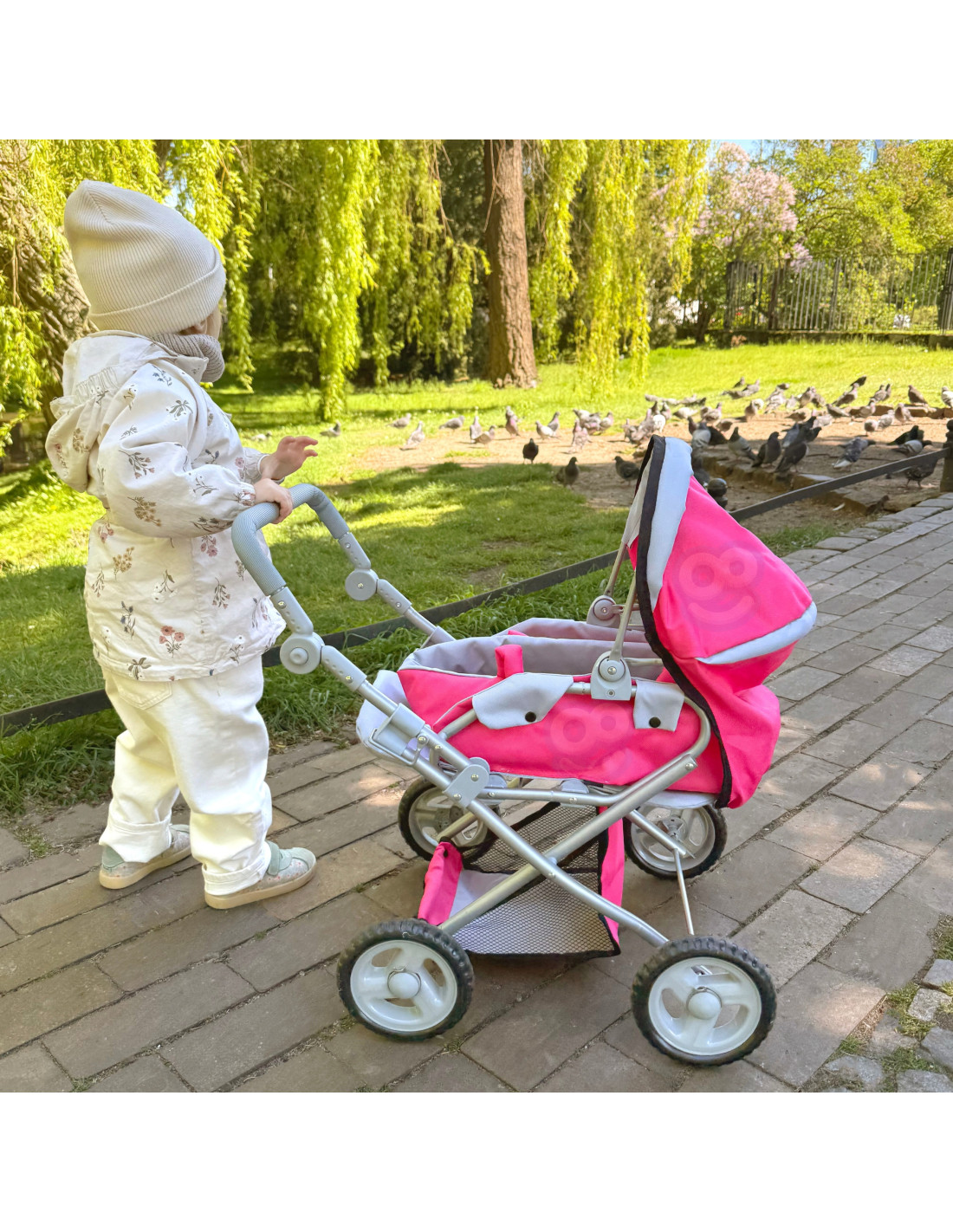 Stylowy i funkcjonalny wózek dla lalek od marki WOOPIE ROYAL w kolorze różowym to idealna propozycja dla każdej małej miłośniczki zabawy lalkami! Wózek posiada regulowaną rączkę, co pozwala na dostosowanie go do wzrostu dziecka. Jego ciche koła gwarantują płynność w prowadzeniu, a stabilna konstrukcja zapewnia bezpieczną zabawę. Dodatkowo wózek zamienia się w spacerówkę, a dzięki wyjmowanej części może być także nosidełkiem lub torbą. Wózek posiada daszek, który można wysuwać i zamykać oraz pojemny kosz na drobiazgi.